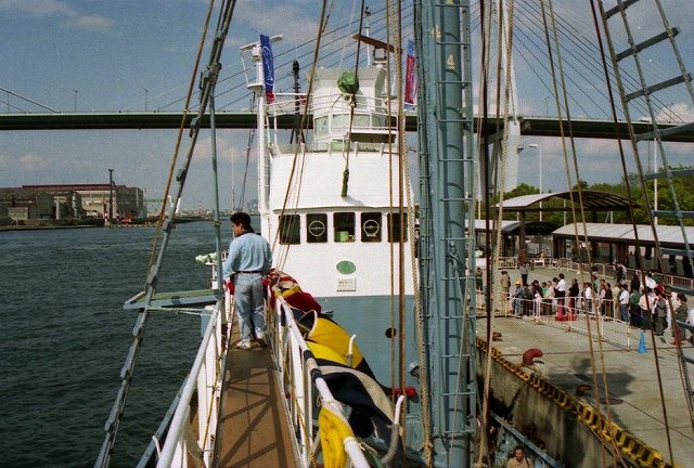 × [PR]上記の広告は3ヶ月以上新規記事投稿のないブログに表示されています。新しい記事を書く事で広告が消えます。 古いネガをスキャンしたものなので、色んな意味でお見苦しい点がありますがご勘弁ください 。![]() 左:この日は、キャッチャーボート(標本採集船)である第25利丸と、捕鯨母船(調査母船)である日新丸が入港/公開していた。 中:日新丸を前方から 右:まずは日新丸から見学 左/中:船橋はこんな感じ。 せっかくブリッジに上がってもマトモな写真が撮れないのは今も変わらないナー、ワシ。 右:船内に有った解体用の施設…(カナ?) 左:後部甲板は解剖甲板とされていた。 キャッチャーボートにて捕獲された鯨は、船尾のスリップよりここへと引き上げられるよう。 中:作業服と梱包用の箱 右:解剖用の機材 左:鯨のヒゲ 中:見学を終えて下船する。 埠頭に伸びた見学待ちの列が、関心の高さを物語っている。 右:日新丸を後部から。 船尾にクジラを引き上げるスリップが見える。 左/中:第25利丸を前方から。 船首に捕鯨砲、全甲板に見張り台を装備しているのがキャッチャーボートの特徴。 右:第25利丸を見学 左:船首に装備された捕鯨砲。 火薬により銛を発射する。 中:捕鯨砲が有る船首へと続くキャットウォーク。 右:第25利丸の後部 オマケ 左:天保山にて撮影した海保巡視艇CL104「みおかぜ」 右:生駒駅で撮影した大阪市交通局30系@ステンレスかつ非冷房車 PR