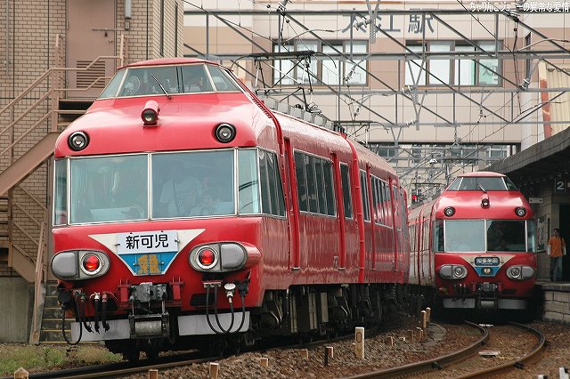 早めに現着したので、行き交う列車を撮影しつつ待つこと暫し… (左)先ず最初に知多半田行き普通として7000系4両編成が到着、後続の優等列車を先に行かせるため待避線に入る。この編成は「逆富士」に電動方向幕(略して「電幕」)を装備している。 (右)名古屋方面行き特急が通過してゆく 続いて新可児行き急行として7000系が到着。 (左)以前確認した時は7000系6連だったが、この日は7000系4連+5300系2連の混結編成だった…って編成の「コッチ側」が5300系だったらまたも「大惨事」やったなぁ~(^。^;) (右)この編成はブック式の行き先表示板を装備…しているのだが、「新可児」はは入っていないのか、該当する系統版を装着している この後の新可児行きの発車は対向列車(知多半田行きが退避していた特急)にカブられ撮影できず。 (左)知多半田行きが発車。 (右)大江駅構内に停車していた別の7000系と並ぶ。 大江駅構内に停車していた7000系6連。 6/29のダイヤ改正で、7000系6連の運用は消滅している模様。 貨物輸送を廃止して久しい名鉄だが、保線作業用などに電気機関車が残っている。 オマケ・その1 ・ダイヤ改正後の光景 以前は7000系4連×2の8連で運転されていた平日朝の771列車だが、6/29のダイヤ改正以降は「7000系4両+他車種4両」似て運転されているとのこと。ではその「他車種」とは何ぞや…と言うことで、昨日朝撮影してきました。 結果は、5300/5700系でした。まぁ、有る意味順当な所か? …詳しくはまたそのうち。 オマケ・その2 イベント情報 ・7/24-25 多用途支援艦「えんしゅう」尾鷲寄港 ※従来の「すおう」に替わり、今年新たに横須賀へ配備された新造艦。 ※一般公開は7/24(木) ※毎年恒例のヨットレース支援のためかな? ・8/9-10 海自横須賀地方総監部展示訓練@仙台 ※一般公開も有り ※情報提供:氷砂さん 有り難うございました。 ・8/30-31 掃海艇「つきしま」「くめじま」一般公開&体験航海@松坂 ※2隻とも第42掃海隊(阪神基地)所属。 ※体験航海への応募は8/8締め切り PR
