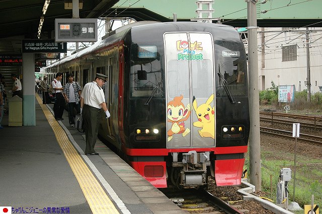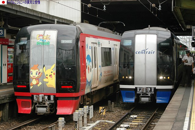 知立駅も名古屋本線と三河線とのジャンクション駅だったが、名鉄のジャンクション駅と言えば、名古屋本線系統と犬山-常滑線系統が合流/分岐する(のでたくさんの電車を撮影できる撮影できる)神宮前駅でしょう! …と言うことで、神宮前駅に移動して撮影した写真です。 ・神宮前駅 たくさんの電車がやってくると言う事は、7000系に遭遇する確率も高くなるということ。 早速常滑線方面より犬山経由名鉄岐阜行き準急として、7000系パノラマカーがやってきた。 1600系は特急施策の見直しにより、一般席(自由席)平結の編成へと組換えが予定されている。 同じく特急施策の見直しにより、写真のような全車特別車編成は順次2200系に置き換えられてゆく見通し。 (左)6500系による中部国際空港行き急行。 (右)ステンレス車体をもつ3300系。 時代の流れなのでしょうが、赤くない名鉄電車が増えてゆくというのも、正直なんだかな~という感じ。 岐阜方に2両一般席車を増結した8両編成。 (左)2200系@ポケモンのラッピング車が来た。こいつ撮るの初めてだなー、と思っていたら… (右)背後に7000系が来たりして全く油断ならない…というか撮れてないし(^。^;) (左)先ほどの2200系@ポケモンのラッピング車は、金山で折り返す豊橋発中部国際空港行き特急に充当されていたので、もうワンチャンス撮影できた。 (右)ミュースカイと並ぶ 常滑線との立体交差をくぐって5700系(or5300系)がやってきた。 上が常滑線、下が名古屋本線。 金山折り返しの普通としてやってきた7000系 丁度頃合と、この電車で帰ることにして本日の撮影終了。 名鉄名古屋駅まで暫しの間、最後部座席で展望を楽しみました。 本投稿及び添付した写真は私ちゃりんこジョニーの著作物であり、中国人が運営する悪質パクりブログ「中華人民共和国萬歳」改め「JMSDF rie」を始め、他のサイト及びブログ等への無断転載はお断りします。 また、そのような窃盗行為を行う中国人悪質パクりブログ「中華人民共和国萬歳」改め「JMSDF rie」と、削除依頼を相手にしないと言う形で知的所有権侵害行為を黙認・助長するヤフージャパンに対し抗議の意を表し。これを読まれている皆さんへは、このような不誠実かつ反社会的企業でるソフトバンク社のサービスへの不買を呼びかけるものです。 PR ![]() ![]() |