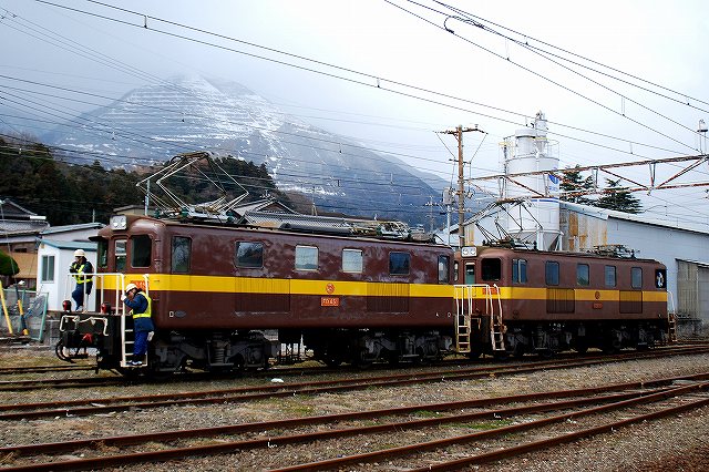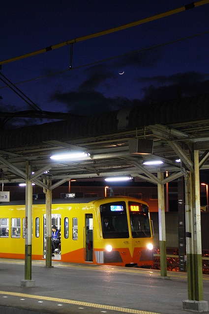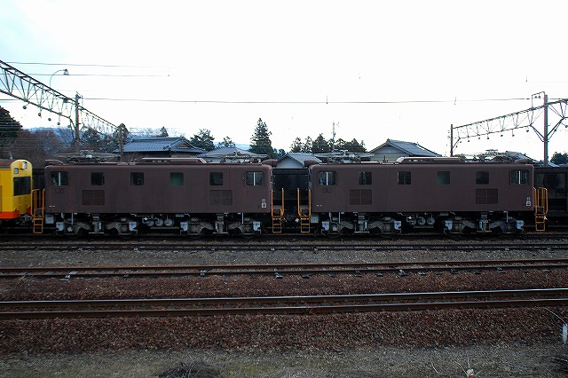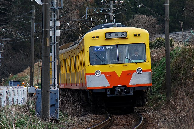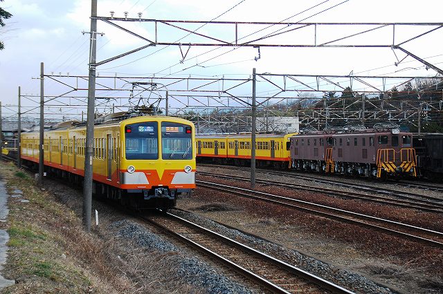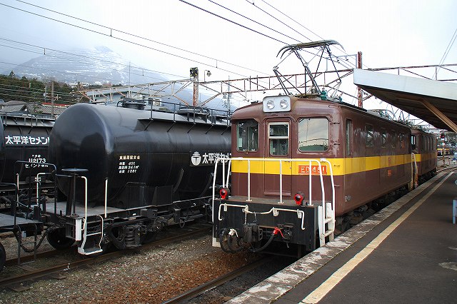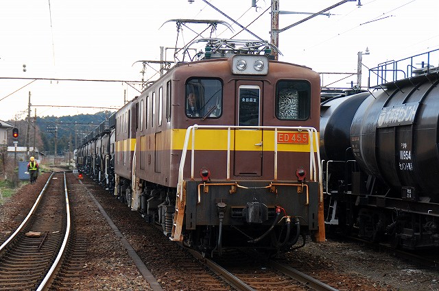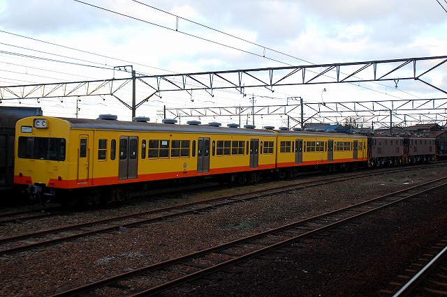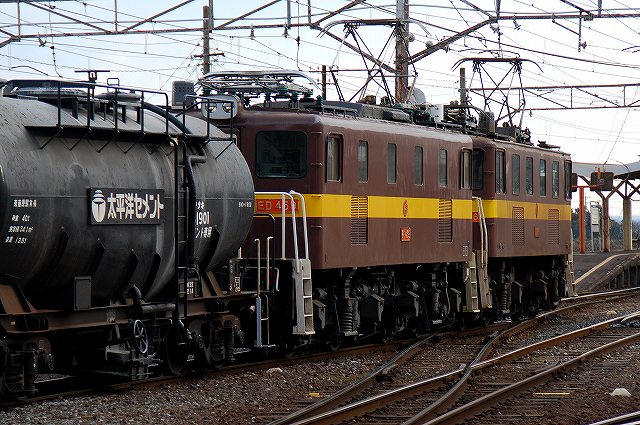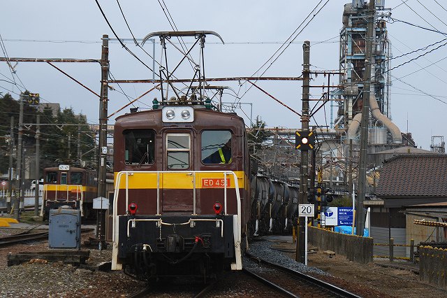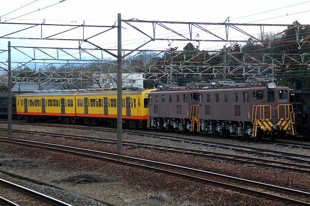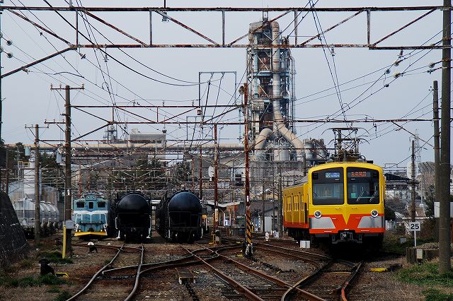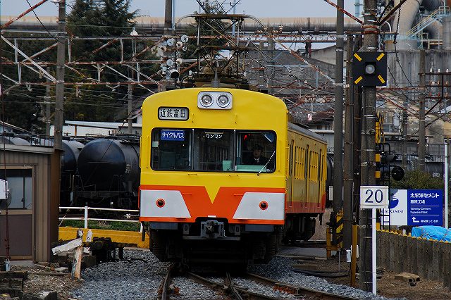 × [PR]上記の広告は3ヶ月以上新規記事投稿のないブログに表示されています。新しい記事を書く事で広告が消えます。 北勢線と三岐線は、その末端区間に於いて員弁川を挟んで概ね2~3km程の間隔で並行しており、阿下喜駅より最短距離なのは約2km弱の距離にある伊勢治田駅ですが、とりあえず入替の様子を撮影したかったので、敢えて3km程ある東藤原駅まで歩くことにしてみました。 (左)東藤原駅に到着すると、早速今回撮影したかった車両の一つ、昨年西武より移籍してきた751系(西武新101系)が撮影出来た。 ちなみにこの写真は、敷地(線路)外の道路から撮影したものなので念のため。(画面左手の線路は、手前で途切れている。) (中)入れ替わりに、元西武701系の801系がやってきた。 (右)東藤原駅構内で休んでいた、元秩父鉄道のデキ200。 スノープロウを装着している。 (左)お目当ての構内入替作業が始まった。 (右)引き上げ線に貨車を押し込んだED45形を、踏切が開いた際に踏み切り道より撮影。 この機関車の作業は一先ずこれで終わりだったらしく、この写真を撮影した直後にパンタグラフが下げられた。 (左)富田駅より貨物列車が到着。 ED45形は基本中連で運用されるが、重連装活制御が可能なので機関士さんは一人のみ。 運転台が多くの鉄道車両とは逆の右側についている。(その方が東藤原駅での構内入れ替えに便利だからだそう) (右)入替(というか機回し)の為構内を移動するED45。 背後の山は、三岐の貨物列車の積荷であるセメントの原材料(石灰石)を産出している藤原岳。 (左)西藤原駅より元西武401系の101系がやってきた。 電車が発着している間は、入替作業は一休み。 (中)推進運転にて積み込み線(画面右奥の塔が有る辺り)へ押し込む。 (右)積み込み線より機関車のみが戻ってきた。 (左)駅のホームで一休み。 全部で9両が在籍するED45形だが、その来歴は様々で微妙に窓の大きさや車体形状など形態が異なって居おり、画面手前(富田方)に連結されているED451を含む一次車(ED451~453)は、やや丸みを帯びた車体形状などが特徴。 (中)ナンバープレートと社紋 (右)ED451は1953(昭28)年製の自社発注機。翌年の三岐線全線電化のために東洋電機(車体は東洋工機)にて製造された。 (左)伊勢治田駅へ移動。 構内では元西武の電車(元西武451系=三岐601系)と元東武の電気機関車(ED5080形)が連結されて留置されていた。 (中・右)ED5080は2003年の東武鉄道貨物輸送廃止後に三岐鉄道が譲り受けたものの、以降目立った動きがなくずーっと保々工場に留置してあったのだが…。 751系導入と入れ替わりに601系が廃車になった。 (左)近鉄富田駅へ移動。 (中)元西武の電車と近鉄電車が並ぶ (右)すっかり日も暮れちゃいました 当日お世話になった皆様ありがとうございました。 PR |