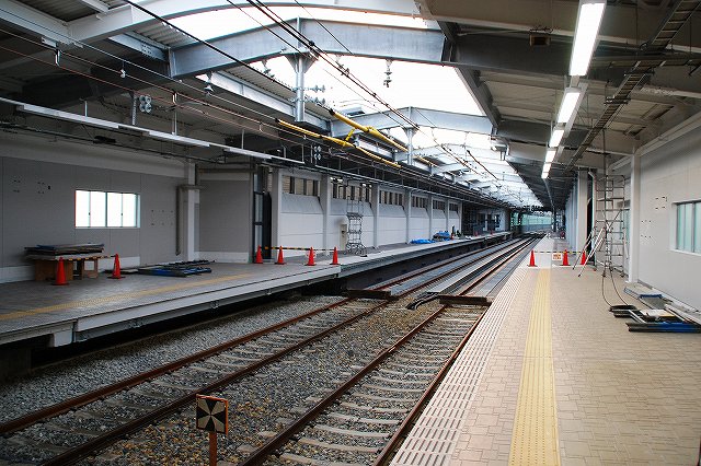 2日目の朝は、コネタ集的な撮影をして来ました。 ・早朝の大阪駅に到着する夜行列車を撮影 折角「お泊り」したのだから、そうしないと撮れない物を…と言う事で、まずは表題とは裏腹に「大都会の大ターミナル駅」であるJR大阪駅へ向かい、早朝に到着する夜行列車を撮影する。 いまや貴重な夜行列車にして客車列車で、年末年始やお盆時期などに運転される臨時列車。 …なのだけども、この列車の存在をすっかり失念していて、到着後にホームを移動して撮影したぞんざいな写真のみなのはご勘弁(^。^;) こちらか本命の急行「きたぐに」 寝台/座席両方に使える特急電車として本州及び九州の電化区間において昼夜を分かたず活躍していた581/583系の最後の定期運用列車がこの急行「きたぐに」。 つか、今や夜行列車や急行列車自体が数少ないんだよなー (中・右)大阪駅到着後、車両基地へと引き上げて行く。 ・阪神西大阪線 写真は西九条駅に停車中の阪神1000系。 現在は4両編成の電車がのんびりと(?)行き来する西大阪線だが、3/20の近鉄との直通運転開始後には6~10両編成の列車が行き来するようになり(※)、「都会のローカル線」から幹線ルートへと脱却する。 また、路線名も難波までの延伸区間と合わせて阪神なんば線と改称される。 ※種別は当面普通から快速急行まで。 伝法駅で下車し、淀川を渡る電車を撮影。 (左)伝法駅のホームより撮影。 (中・右)並行してかかる道路橋(伝法大橋)より撮影。 このときは1000系の増結用2両編成×2本を繋げた4両編成のみが運用されていた。 朝早い時間帯だったので、光線状態はイマイチだったカモ? 西九条駅へ戻る。 (左)ここまで運転してきた運転士さんが降りる。 (中)柵の向こうではホームの延長及び路線延伸工事が行われていた。 阪神なんば線内では最大10両編成が運転されるが、阪神本線内は最大6両編成までしか入線できないので、尼崎駅にて増解結を行う。 (右)駅の外へ出てみる。 左右方向の低い位置に有る高架はJR大阪環状線。 右手手前方向が難波までの延伸区間で、新たな駅舎及び改札口の建設工事が行われていた。 そのまま阪神なんば線の高架に沿って歩いてみると、間もなく安治川河底トンネルに突き当たる。 (左)トンネル内の状況。警備員さんが巡回している。 (中)安治川を渡った側の建物。トンネルまではエレベータ及び階段を使って行き来する。 この位置にはかつて渡し舟があったが、桜島地区への工員及び物資輸送の必要性から、河底トンネルの建設が計画され(※)、昭和10年に着工され、圧気潜函工法にて昭和19年に完成している。戦時下に有っても建設されたという辺りにこのルートの重要性が見て取れる。 かつては自動車用のトンネル及びエレベータも有ったが、自動車の増大及び大型化とともに、付近に道路用の橋が架けられた事もあり現在は歩行者用のトンネル及びエレベータのみが使用されている。建物右側には自動車用エレベータの跡。 ※安治川を行き来する船舶の航行を妨げないため、架橋する場合は有る程度背の高い物を作らなければならなかったが、当時の技術では不可能だったそう。 (右)安治川河底トンネルの横を阪神なんば線が通過している。 (左)大阪環状線及び航行する船舶をクリアするため高々架にて安治川を渡った阪神なんば線は、この先で別の川の川底をくぐる必要もあることから急勾配にて地下へと潜ってゆく。 「都会のローカル線」は、いわば「都会の山岳路線」へと変貌するわけである。 (中)画面奥の高架を行くのは、地下鉄中央線へ乗り入れてきた近鉄7000系。 つまりこの場所は他社線へと乗り入れた来た近鉄車同士が顔を合わせる場所なのだけれども、阪神なんば線建設に当たって長年にわたり反対運動が行われている同地に対する配慮からか、阪神なんば線のほうは高い防音壁に囲まれている。 写真は乗り入れてきた近鉄7000系。 近鉄東大阪線~地下鉄中央線のルートは、生駒山を越える山岳トンネル、大阪都心部の地下鉄、南港へと至る海底トンネル…等を通過するユニークな路線でもある。 ・南海汐見橋線 「大都会のローカル線」その2は、阪神西大阪線とは逆に幹線ルートから外れてしまった経緯を持つ南海汐見橋線。 高野山へと至る南海高野線の正式な起点は汐見橋駅だが、1929(昭4)年に高野山方面への全列車が難波駅を発着するようになって以降、幹線ルートから外れた汐見橋-岸ノ里間は盲腸線と化し、「汐見橋線」との通称で呼ばれている。 (左)地下鉄千日前線桜川駅から少し歩いて南海汐見橋駅へ。 隣では阪神桜川駅の建設工事が行われていた。 (中)自動改札こそ設置されているものの、駅舎の内部はレトロな感じ。 (右)極めつけは改札口上部に掲げられた昭和30年代当時の「南海沿線観光案内図」。 残念ながら一部が破損してしまってますが、いい味出してます。 現在汐見橋線で使用されているのは、南海本線系の各支線でも使用されている2200系(含2230系)。 汐見橋線はほぼ全線が複線だが、30分間隔