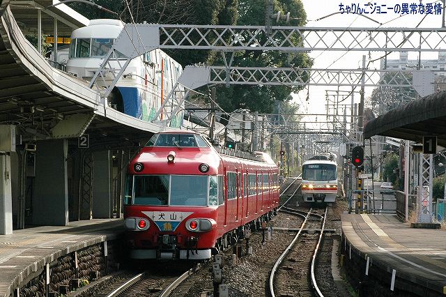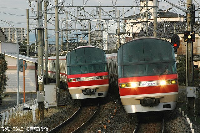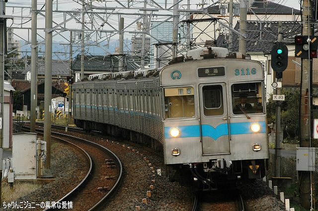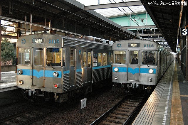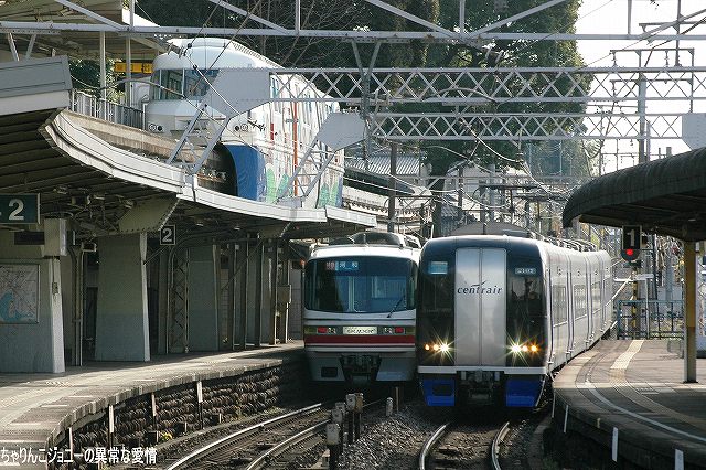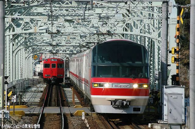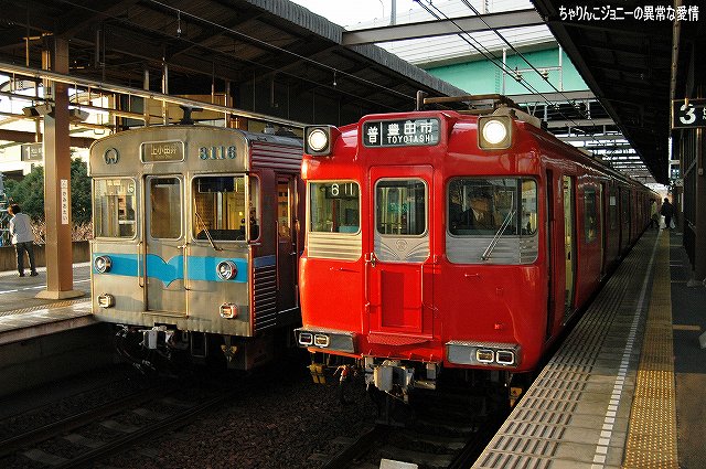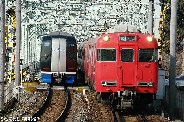 ・犬山遊園駅 かつては道路と併用(※1)で、複線の間隔が狭かった為橋梁上での行き違いは不可、速度も25km/h間寺制限されていたが、現在はすぐ横に道路専用橋ができた為鉄道専用橋として使用され、線路間の間隔の拡大等の改良工事の後、擦れ違いが可能となり通過速度も引き上げられた。 (左)降り返ると、架線柱がやや邪魔するもののモノレールと鉄道車両の組み合わせも撮影できる。 7000系パノラマカーとモノレール、という組み合わせを撮影したいところだが… (右)右側は6000系の初期型。やや小さい全面方向幕と、側面窓がニ連の固定窓なのが特徴。 (左)…って、パノラマカー キタ━(゚▽゚)━!! (右)でも、モノレール イナイ━(´д`;)━!! (左)続けてもう一本 キタ━(゚▽゚)━!! (右)今度はモノレール イタ━(>ヮ<)━!! …と言う事で、同時期に登場し(※2)同時期に消えて行こうとしている「スター」の並びが撮影できた。 ブック式行き先表示板装備車の場合、回送のときは行き先及び種別を何も表示しない。 ・大山寺駅 この駅もカーブ上にホームが有るので、カーブを通過する列車を撮影できる。 (左)やって来たのは地下鉄鶴舞線より乗り入れてきた、名古屋市交通局の3000系。 以前はパンタグラフ付きの車輌は1両につき2機のパンタを搭載していたが、最近はそのうち1機の撤去が進み赤池/豊田市側先頭車の「前パンタ」もなくなってしまった。 折角の正面気味アングルも些か迫力不足に? (右)こちらは新型の3050系。 ここでも7000系を2列車撮影できた。 ・上小田井駅 犬山線の上下線の間から鶴舞線電車が地下区間より高架区間へと駆け上がってくる。 写真は名鉄の地下鉄乗り入れ用車輌100系。 (左)名古屋市交通局3000系と名鉄100系の並び。 車輌の所属に関わらず地下鉄線内は名市公の名鉄線内は名鉄の乗員が乗務し。直通する列車の場合両者の境界である上小田井及び赤池駅で双方の乗務員が交代する。 (右)3000系同士の並び。 1977(昭52)年の鶴舞線開業以来使用されてきた3000系だが、そろそろ置き換えが始まる…との噂。 ※1判りやすく言うと路面電車状態。鉄道/道路双方とも鉄橋をかける予算が不足していたりする場合に双方併用にて橋を架けると言う手段がしばしばとられた。 ちなみに犬山橋の完成は1925(大14)年。道路専用橋の完成は2000年。 ※2 モノレール線の開業は1962(昭37)年。パノラマカーの登場は1961(昭和36)年。 ちなみに空母キティーホークの就役も1961年。 本投稿及び添付した写真は私ちゃりんこジョニーの著作物であり、他のサイト・掲示板及びブログ等への無断転載を禁じる。 特に、悪質パクりブログ「中華人民共和国萬歳」改め「JMSDF rie」を運営していた、支那人窃盗常習犯sunbinsiftに対しては強く抗議する。 PR