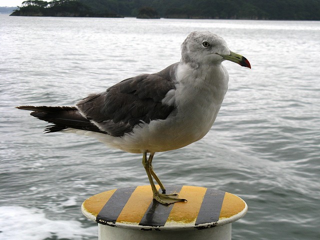 × [PR]上記の広告は3ヶ月以上新規記事投稿のないブログに表示されています。新しい記事を書く事で広告が消えます。 先ずは日本三景のひとつ松島へ。 天候は相変わらず雨だったものの若干小雨気味…と言う事で、今次遠征中では一番の好天でした。(^_^;) 仙石線松島海岸駅で下車し、少し歩くと観光船乗り場へと到達する。 (左)桟橋のこちら側には塩釜-松島間を航行する観光船が停泊していた。 何故このルートかと言うと、松尾芭蕉が船により松島へとやって来た事に因むのだそう。 それはともかく、船名が「やまびこ」「あおば」と東北新幹線の列車の愛称やねー。 (右)で、桟橋のこっち側が松島湾周遊の観光船乗り場。 奥の第三仁王丸に乗船しました。 (左)第三仁王丸の船内。ちなみに追加料金を払うと2階の「グリーン席」へ移る事も出来る。…が我々は船尾のオープンデッキにて撮影。 乗船開始直後なのでガラガラですが、出港間際には平日の朝イチの便なのに結構な乗船率でした。 (右)エンジンの音 轟々と はやぶさが行く(^。^) その後には乗船客からエサを貰おうとかもめが続く。 松島の遊覧船は複数の会社が様々なコースにて運航しているようなので、ご利用の際は各自研究の上都合の良い便を利用するのが吉。 (左)さて、松島遊覧のマストアイテムと言えば、やめられないとまらない…なこれ。(^。^) 出港後船内の売店にて販売されます。(停泊中のエサやりは禁止の模様) (右)状況開始!(^。^) とにかく、たくさん集ってきます(^。^) (^。^;) ぱっと見はかわいいのですが、この瞬間は本気(マジ)な目付きで少し怖いです(^。^;) たいがいは上手についばんでゆくのですが、たまに少し指を噛まれたり、羽の先でアタマをシバかれたりします(^_^;) 中には要領のよい奴もいて、船尾等にあるもやい綱を縛る所(何て言うんだ?)にとまってエサを貰ったりします。 …が、そんなよい場所は当然奪い合いになる訳で…(^_^;) Σ( ̄□ ̄;)ハッ! 遊覧船に乗ってるのに、かもめに夢中で全然風景の写真撮ってねー! …という訳で岩の写真等も撮ろうとするのですが… 鳥、邪魔!! (^。^)ォィォィ (左)開き直って、鳥を入れて撮影(^。^;) (右)この船の船名の由来、仁王岩。 …という事で遊覧終了。怒涛の50分でした。(^_^;) (左)我が第三仁王丸に続いて入港してきた、塩釜よりの第二芭蕉丸。 (右)我々が乗った便より更に多くの乗船客を乗せて出港してゆく第三仁王丸。 五大堂付近より撮影。 …つづく。 おそらくモラルも想像力も欠如した釣り人が捨てた釣り糸が絡まって切断されてしまったのでしょう…なんとも悲しく、そして腹立たしい事です。 …と言う事で、この写真は敢えてスタンプマークは入れず、必要であれば転載可とします。 PR