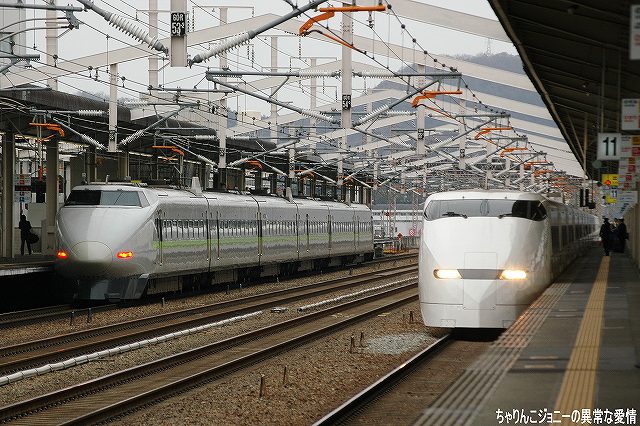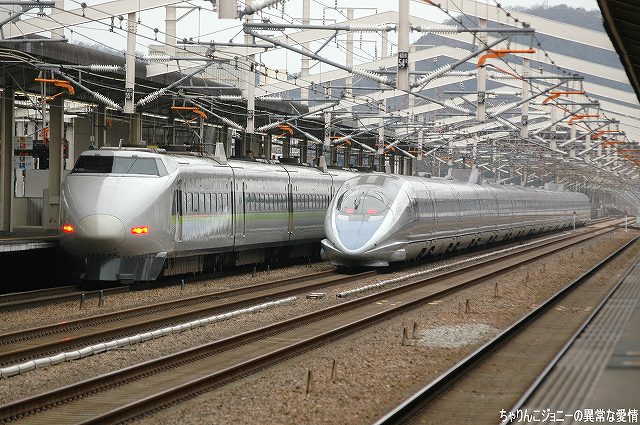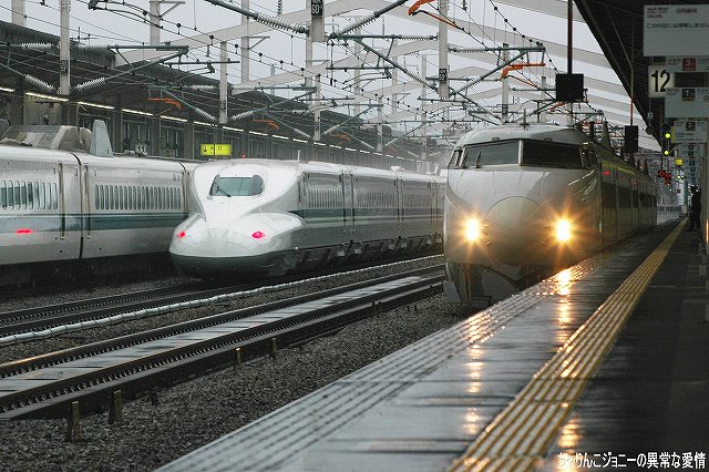 × [PR]上記の広告は3ヶ月以上新規記事投稿のないブログに表示されています。新しい記事を書く事で広告が消えます。 第一目標はJR西日本(山陽新幹線)に6編成だけ残る0系新幹線電車です。 在来線で(下手な特急より早い新快速を使っても)4時間かけて新幹線を撮りに行くパラドックスはさておくとして (^。^;)。姫路まで進出した理由は、0系は山陽新幹線でしか運用されていないのだが、新大阪駅は場所によっては線路間の障害物が邪魔になって意外と撮り辛いのと、どうせ18切符を使うならできるだけ遠くへ行こう…と言うことで、以前利用した事があり多少様子がわかっていた姫路を今回の撮影ポイントとしました。 今回も「ムーンライトながら」よりの流れにて西へ向かう、もうすっかり慣れてしまった自分がイヤ… (左)大垣にてJR西日本の221系による加古川行き普通に乗り換える。 大垣発車直後、「ムーンライトながら」として此処まで走ってきて大垣電車区へ入庫する371系と並走した。 (右)もう少し進むと、朝日に照らされた伊吹山が見えた。 米原より新快速に乗り換え、途中はるなさんと合流しつつ一気に(と言っても2時間以上かかってますが)姫路へ到着。18きっぷでそのまま新幹線ホームに上がれるかどうか自身が無かったので、一旦改札外に出で入場券を買って入りなおす。 当日は、雪が降るかも?という予報だったが、かなり寒かった物の雪ではなく小雨が降っていた。 0系のモデルチェンジ型として登場するも、300系登場以降の新幹線が(より)高速運転を実施するようになると、基本性能が0系と大差ない100系ではダイヤ構成上支障となってしまうので早期に淘汰が始まってしまい、現在はこだま用に短編成化されたものがJR西日本に残るのみ。トレードマークだった2階建て車両も外されている。 写真の編成は6両編成だが、岡山以西ではさらに短い4両編成の列車もある。 車内は廃車されたグリーン車のシートを再利用してグレードアップされている。 500系新幹線電車。JR西日本が16両編成を9本保有している。 世界初の300km/h営業運転と何よりその流麗なスタイルで一般にも人気の高い車両だが、「のぞみ」を700系又はN700系に統一すると言うJR東海の方針により、この秋までに東海道新幹線より撤退の予定。 その後は8両編成に短縮の上、山陽新幹線内の「こだま」用に残った0系を置き換える。 (右)先ほどの100系を追い抜いていった。つーか、今更だけど 新幹線速っ!!(^。^) 早い割りに妙に静寂性は高かったりするので、ホームの無い線路を通過するため通過を知らせる構内放送がないせいも有って、気がついたらすぐそこに居たりすることもしばしば。(^。^;) 余談だかJTBの時刻表は大型のものも小型のものも新幹線時刻表には使用車両も明記されてあるので、乗車にも撮影にも便利。今回は小形のものを持参して撮影に役立てました。(回し者ぢゃないよ(^。^;)) 山陽新幹線内の「ひかり」に用いられる車両で、東海道新幹線直通用の700系とは異なるカラーリングが施され、編成は8両と短い。 グリーン車の連結は無いものの、指定席車は2×2シートを採用しており東海道新幹線直通用の700系より居住性が向上している。 東海道新幹線はほっといても乗客が乗るので、粛々と大量輸送をする事に主眼を置くJR東海(←偏見に基づく極論?)と比べ、航空機などとの厳しいシェア争いさらされているの山陽新幹線を運行するJR西日本は、魅力的な車両を運転し付加価値を高めようとしている。 JR西日本に残っている0系6本は、客用窓が小さい後期タイプ車両でかつて運転されていた「ウェストひかり」用に2×2シート化される等更新工事を受けた車両が中心。 100系同様グレー基調の塗装に変更され、6両編成に短縮されている。 (左下)700系が追い抜いていった。 入場券の有効期限が2時間なのと、折角姫路まで来たので姫路城も見てこよう(この模様は次回に)…と一旦新幹線の撮影は中断し、午後再び新幹線ホームへと舞い戻る。 (左)身をくねらせて姫路駅下りホームへ入線する0系。 (右)停車中の0系。その横を700系が駆け抜けてゆく。 (左)上りの「のぞみ」が通過してゆく。N700系と0系の並びが撮れた! 関係ないけど、ワタシは勝手にN700系の事を、N700系の「N」とソ連の原潜にNATOが付けたコードネームの一つとひっかけて、「ノヴェンバー型」と呼んで居たりします。(^。^;) (右)上りホームに停車していた300系。 0系のモデルチェンジ型にとどまった100系の後、技術的に一気にジャンプアップした車両だったため登場時は初期トラブルが散見され、国鉄分割民営化に反対した手前、なんとかしてJRのアラを探そうと躍起なマスゴミに格好のネタを提供してしまったりしたが、程なく安定して運行されるようになり、その後登場した新世代の新幹線電車への基礎を気付いた功績は大きい。 そんな300系も、今は臨時を除き「のぞみ」運用からは撤退している。 この編成の後から3両目は窓が少ないけど、元ビュッフェ車かな? (左)再びN700系が通過してゆ
