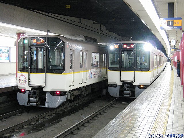 × [PR]上記の広告は3ヶ月以上新規記事投稿のないブログに表示されています。新しい記事を書く事で広告が消えます。 撮影目的ではなく所用にて出かけたので、コンパクト機しか持参せず写真もあまり撮って無いのですが(時間が有れば先日開業した所のおおさか東線へ行きたかったのですが、諸般の事情にて果せず(^。^;))、例によって帰りの特急を待つ …と言う事でまずは近鉄鶴橋駅にて撮影した写真。 布施-上本町間の近鉄線は、奈良線(※)と大阪線とで複々線を形成している。 鶴橋駅東側には大阪線-奈良線間の渡り線が設けられている。 (左)大阪線から奈良線へと渡る難波行きの回送列車。 (右)奈良線から大阪線へと渡る難波発名古屋行きの特急アーバンライナー。 6両編成が基本のアーバンライナーだか、朝夕のラッシュ時には8連にて運転される。 近鉄電車の前面下部にはテールライトと一体化した種別表示灯が設けられていて、普通列車は消灯・準急は向って左側・急行は向って右側・快速急行/特急/回送等は両側をそれぞれ点灯する。 ちなみに、テールライトは種別に関係なく両側を点灯する。 上本町駅へ移動。 大阪線列車が発着する地上ホームは、関西私鉄のターミナル駅らしく頭端式の櫛型ホームが並ぶ。 上本町駅地上ホームへは、大阪線伊勢方面行き特急の一部も発着している。 今度は上本町駅地下ホームへと移動。こちらは難波駅を発着する奈良線電車と名阪特急及び伊勢方面行き一部特急が使用している。 (左)近鉄が導入を進めている新世代の通勤型電車「シリーズ21」のうち、京都市営地下鉄乗り入れ対応型である3320系がやって来た。 近鉄の通勤型電車の多くが他車と連結時に通路とすべく、正面中央部に貫通扉などを設けているのに対し、地下鉄乗り入れ対応車はその特異な存在から他車との連結を考慮していないのか、貫通扉は全面向かって左側にシフトされている(その分運転士のスペースが広く取れる)。 (右)こちらも京都市営地下鉄乗り入れ対応の3200系。 難波より京都市営地下鉄へ直通する系統は無いが、奈良線の普通/準急電車として難波まで顔を出す運用もあるよう。 奈良線に配備されている「シリーズ21」は、来年春に開始が予定されている阪神なんば線を介しての阪神三宮方面への直通運転に対応する機器の搭載工事を終えているそう。 阪神との直通は当面通勤型車両のみで行われ、アーバンライナーなど近鉄の(特急料金が別途必要な)特急の阪神線への乗り入れは予定されていないと言う。(個人的には名古屋発阪神三宮…つか山陽姫路行きのアーバンライナーとか乗ってみたいんですけどね(^。^;)) (左)8000系電車。 配備が進む「シリーズ21」にかわって淘汰が始まっているが、マイナーチェンジをしつつ比較的長期に渡って大量に配備された車両なので、まだまだその姿は健在。 (右)1020系などの列車。(「シリーズ21もそうだが」)アルミ車体にもかかわらず、車体を銀色の無塗装とせずに塗装している。 (左)奈良線沿線の大学がスポンサーとなったラッピング広告電車。 (右)30000系ビスタカーの特急が到着した。 ※正式には近鉄奈良線は布施-奈良間で、布施-上本町間は近鉄大阪線、上本町-難波間は近鉄難波線へそれぞれ乗り入れているのだが、実際の運転系統に従い此処では難波-奈良間を近鉄奈良線として扱った。 当日現地でお世話になった皆さん、有り難うごさいました。 PR