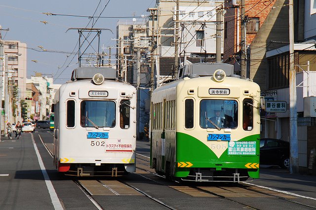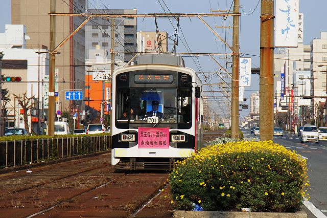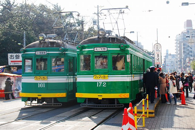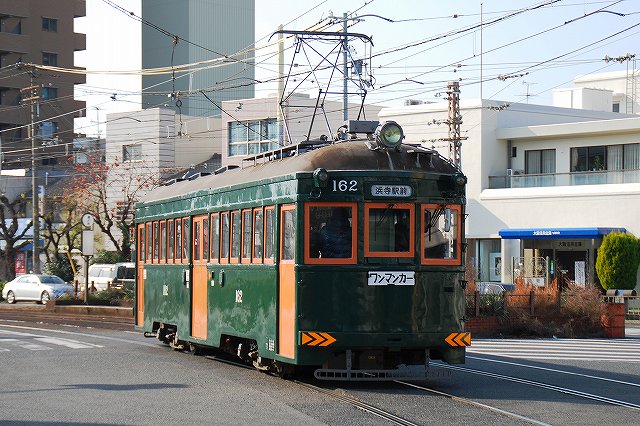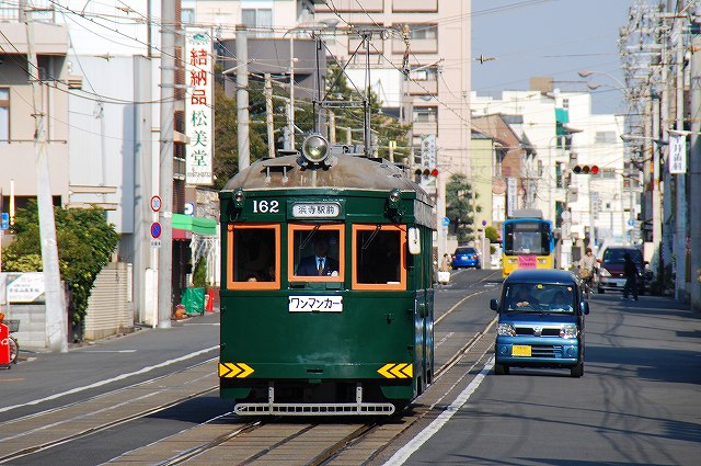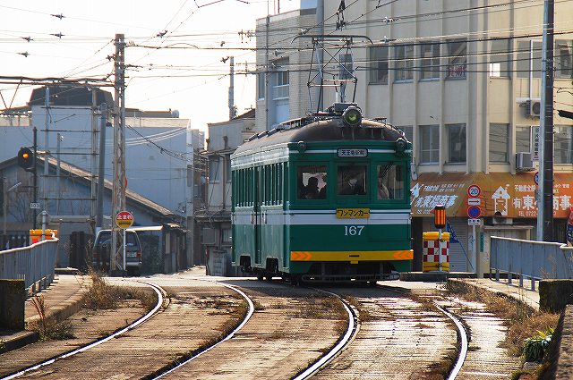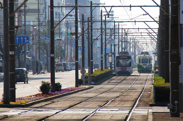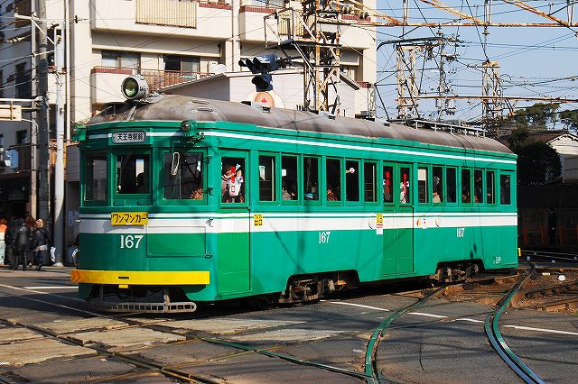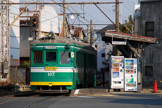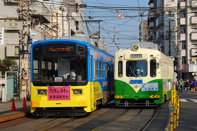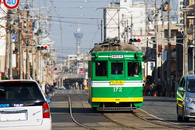 × [PR]上記の広告は3ヶ月以上新規記事投稿のないブログに表示されています。新しい記事を書く事で広告が消えます。 南海電車の今宮戎駅より少し歩いき、通ったついでに(爆)「えべっさん」で商売繁盛を祈願しつつ、通天閣のすぐそばに有る恵美須町駅から阪堺状況開始。 ・東粉浜 (左)車が突っ込んできたりしたのか、電停を修理中だった。正月早々ご苦労様です。 (左・中)通天閣をバックに走る電車を撮影。 車両は1928(昭3)年制と、日本では現役最古の電車である161形。 通常は予備車的扱いであまり動かないらしいのだか、お正月は住吉大社への初詣輸送のため車両が総動員されるため、161形撮影のチャンス。 ・住吉 阪堺線と上町線が交差するので、次々電車がやってくる。 また、お正月は至近にある住吉大社の初詣客のため歩行者天国状態になっており、路面電車撮影の天敵、車に邪魔されずに撮影できる。 (左)阪堺は昨夏に運転系統が変更され、恵美須町-浜寺駅前間で直通運転が開始された。 それを受けて、写真左側の701型(及び601形)には前面に横断幕が掲出され、画面右側の1957(昭34)年の竣工当時の塗装画再現されたモ504(とモ505)の側面にはその旨が大描きされていた。 (中)「雲電車」塗装の501が平面交差を渡る (右)沿線の鉄道喫茶の広告電車として南海電車の旧塗装を再現した165。 南海電車路一部路線だった時代が長い阪堺電軌だが、「当時」この塗装の電車はなかったそう。 (左)緑色塗装の161形2両が並ぶ。161形は10両が在籍している。 (中)南海大阪軌道線時代の塗装を再現した162が平面クロス上で705とすれ違う。 (右)平面クロスを渡る167。 古いけども収容力の大きい161形は、初詣輸送では貴重な戦力…カモ? ・帝塚山四丁目 専用軌道区間の入り口にある電停より撮影。 (左)全面広告(正面から見ると真っ白だけど)の502とリバイバル塗装の505がすれ違う。 (右)南海大阪軌道線塗装の162に乗って次のポイントへ移動。 ・綾野町 堺市内の併用軌道区間の北端にある電停。 (左)ココまで乗ってきた162をお見送り (右)全面広告の352 (左)堺市内の併用軌道区間は、花壇等で自動車の通行部分と仕切られたグリーンベルト式併用軌道で、専用軌道に近い感じ(ただし、信号は道路のそれに従う)。 (中・右)リバイバル塗装の505がやってきた (左)天王寺駅前方面に向けて出発する162 (右)レトロな雰囲気の浜寺駅前方面行き電停と167 ・御陵前 こちらは堺市内の併用軌道区間の南端にある電停。 ちなみに駅名の「御陵」とは有名な仁徳天皇陵を指すが、ここからは西に約2km程離れている。 (左)併用軌道の出入り口付近は、昔ながらの石畳にて舗装されていた。 (右)名物の花壇。 つづく。 PR