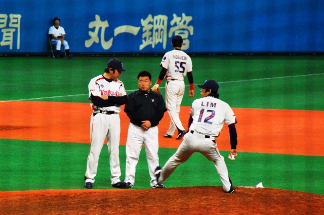 阪神なんば線開通で便利になった大阪ドーム(※)。 これまでは難波にて地下鉄に乗り換えるなどする必要があったが… (左)今は特急を降りたホームで、そのまま尼崎/三宮方面の電車を待てばよい。 (中)シリーズ21系列に押され気味だが、8000系列の車両もまだまだ頑張っている。 (右)ビスタEX。奥の1番ホームには伊勢志摩ライナーが居る この列車は回送だが、阪神なんば線の開通に伴うダイヤ改正により、それまでの難波駅の… 1番ホーム→特急(奈良/伊勢/名古屋方面) 2番ホーム→奈良線電車(普通~快速急行) …と言うホームの使い分けが崩れ、2番ホームからも特急が発着する事があるので注意が必要。 (左)程なく三宮行き快速急行@阪神1000系が到着。 (中)2区間の乗車であっという間にドーム前駅に到着。 河川や既存の地下鉄等を避けるため、地下5層と言うなんば線一深い駅になっているが、ホームから地上までエスカレーター等が完備されている。 (右)地上に出ればドームは目の前。 (左)つか、大阪ドーム来るの久しぶりやなー(^_^;) (中)この日のカードはオリックス×ヤクルト。 日曜日の交流戦と言う事で、意外と(失礼!)盛況。 (右)オリックスのマスコットネッピー君。 ネット越しでオートフォーカスが使えないためマニュアル撮影だけど、試合中の写真もチョット撮ってみる。 (左)帰塁する青木選手 (右)投手交代の合間に談笑する一塁手のフェルナンデス選手と走者ガイエル選手。 この日のオリックスは、ヤクルトスワローズに日本新記録の11打数連続安打等を含む猛爆を受け一時は12点差を付けられてしまう (~ヘ~;)。 投球が写りこんでるシリーズ インパクトの瞬間はなかなか撮れませんね~(^_^;)ゞ (左)2001近鉄リーグ優勝時の代打逆転点満塁サヨナラ優勝ホームラン男、北川選手が代打で登場。 (中)終盤オリックスは追い上げを見せ、メジャー帰りの大ベテラン木田投手が登場するも勢いは止まらず… (右)4点差で9回裏2アウト満塁…と言う、1発出れば同点の場面でヤクルトの押さえのエース林昌勇(イム チャンヨン)投手をマウンドに引きずり出すに至った物の、結局14対10で敗戦。 ※大阪ドームは、ネーミングライツ制導入により現在は「京セラドーム大阪」と呼ばれているのは承知していますが、 PR