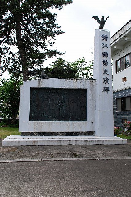 (^。^) ・福井城 福井駅の直ぐ側に位置しており、内堀及び本丸は残っているものの、天守閣等当時の建築物はは存在せず(天守閣は1669年に焼失)、代わりに本丸には県庁&県警本部が建っている (左)県庁前に立つ結城秀康の像。 徳川家康の次男である秀康は、関ヶ原の戦い後1600年に越前藩主となり城及び城下町の大改造に着手したそう。 (右)本丸内には幾つかの記念碑が建っていたが、中でも気になったのはこの「大本営行在所記念碑」。 調べてみると、1933(昭8)年に福井県にて陸軍特別大演習が行われているそうで、その際ここに大本営が置かれていたのカモ? (左)城の天守及び小天守の基礎(石垣)は現存しており、小天守の基礎の一部は1948年の福井地震で崩壊した状況のまま保存されている。 (右)「福井」の地名の元となったという「福の井」。 以前は「北ノ庄」と言われていたが、江戸時代に当時の城主が「北」の字が不吉だとして「福居」と改名、後に「福井」となったそう。 ・ヨーロッパ軒のソースカツ丼 福井名物と言えばコレ…と言うことで、当日の昼食に戴きました。 ソースをたっぷりつけたトンカツが乗っており中々美味。 暖簾分けした店舗が福井県内に多数あるので、是非お試しあれ。 ・三六史跡公園 …というか、福井鉄道の路線は完全に国鉄北陸本線と並行しており、通常このような並行路線の建設の認可が国から下りる事は無かったが、兵営が国鉄線からやや離れていた(約2km)為建設が許可されたという。 1924(大13)年の開業当初は兵営前駅が置かれ、後に神明駅と改称されている。 写真は煉瓦造りの営門。現在立っている場所よりやや北よりに有ったものを移築したよう。 敷地内には各種記念碑や「陸軍省」の文字が入った敷地の境界を示す杭が建っている。 この記念碑の裏には、歩兵第三十六聯隊の主な戦歴が記されてあった。 歩兵第三十六聯隊は1895(明29)年に名古屋で創立され、翌1896年に鯖江へと移駐している。 戦後兵営は廃止され、16haと言う広大な跡地は戦前より兵営の回りに形成されていた町と共に市街地を形成しているが、現在も「三六町」と言う地名が残っているそう。 前述のように神明付近は国鉄(元JR)線からは離れた位置にあるので、福井鉄道にとっては重要な「策源地」である。 ちなみに、現在の陸上自衛隊鯖江駐屯地は別の場所に有る。 最後になりましたが、当日お世話になった皆様有難う御座いました。