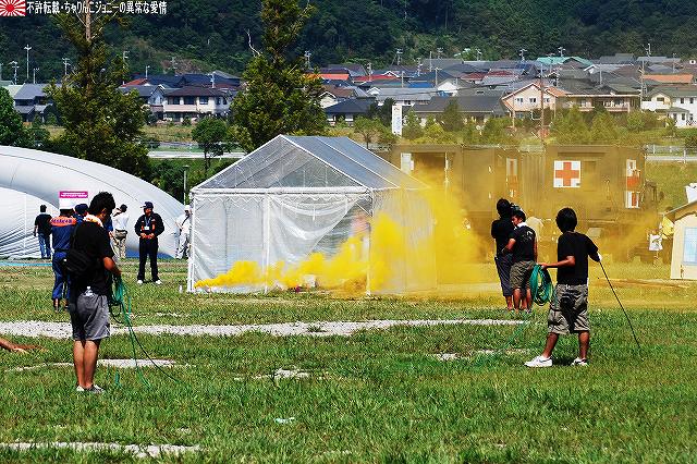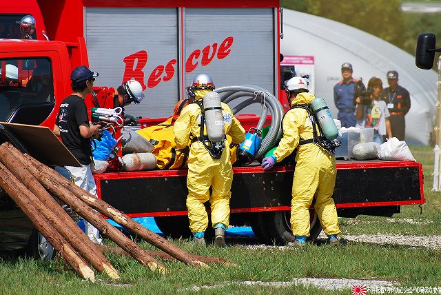 (左)陸自のUH-60JAと連携 (右)空自のUH-60Jが着陸する 地震の混乱に乗じて生物・化学兵器を用いたテロ(BCテロ)が発生 (左)こちらがその「現場」。 毒ガス(実際には虫も死なないほぼ完璧に無害な着色ガス…色も黄色だし)が発生中。 (右)警察と消防の車両が急行 (左)鈴鹿市の救助工作車 (右)その車体には鈴鹿市のマスコットキャラ、ベルディ君のイラストが描かれていた。 (左)防護服を着た消防隊員が輸送車(トラック)より器材を降ろしている。 (右)警察のマイクロバスも到着。車内には既に防護服を着た機動隊員の姿が見える。 (左)除染用の器材を装着中。 (右)積み込まれようとしているのは、使用された薬剤のサンプルかも? (左)消防が救出/除染した要救助者を救急車似て搬送。 (右)ホットゾーン内への進入は、与圧式防護服を着た隊員が行った。 写真はホットゾーンより撤収し、除染後測定器(ガイガーカウンタ?)による測定を受ける機動隊員。 撮影ポイントの都合で警察の写真ばかりだが、消防の同様の装備の隊員も救助活動を実施していた。 ちなみに今回は陸自の科学隊は登場せず。 写真は日赤のエアーテント。ここで負傷者の手当てなどを行う。 陸自や一部消防等にも同様の装備がある。 陸自の野外手術システムもやってきていた。 第10後方支援連隊(春日井)の所属車両だった。 (左)陸自の炊事車。 ボランティアによる「炊き出し」の支援に来ていた様。 (右)訓練に参加したものと思われる偵察バイクが、隊友会のテントの前に置かれていた。 (左)訓練を終え会場隅に居た伊勢市の消防車。この後次の訓練に参加するため移動。 (右)メーカーが持ち込んだ小型の消防車が展示エリア似て展示されていた。 その他各種防災関連の展示があった。 つづく。 本投稿及び添付した写真は私ちゃりんこジョニーの著作物であり、他のサイト・掲示板及びブログ等への無断転載を禁じる。 特に、かつては「中華人民共和国萬歳」現在は「異常な愛情」と言う名のパクりブログを運営している、支那人窃盗常習犯sunbinsiftに対しては強く抗議する。 今年は伊勢市の県営サンアリーナを会場に実施されました。 写真は会場より見えた伊勢・安土桃山文化村の「安土城」。 (左)ヘリポートとして使用されたメイン会場横の芝生広場隅に停車していた、航空機誘導用の車両と高機動車。 (右)メイン会場隅に作られていた航空機部隊の現地指揮所(?)。 黄色い作業服は三重県防災飛行隊の、緑色の作業服は航空自衛隊の要員。 東海・東南海地震が発生し、伊勢地域各所に被害発生…と言う想定にて訓練開始。 (左)情報収集を実施する三重県警のトライアル隊。 普段は白バイ隊員として勤務している警察官だそう。 (右)上空よりヘリテレにて情報収集をする三重県警のアグスタA109「みえ」。 この他陸自UH-1Jと空自U-125Aが上空より偵察を実施した。 (左)救助犬登場。 2頭の犬が吠えれば要救助者アリ、と判断するとのこと。1頭のみが吠えた場合は3途埋めの犬を投入して反応を見たりもするそう。 (中・右)被害の甚大さに鑑み、自衛隊に対し災害出動要請が為された。 …と言う事で偵察バイク登場。 (左)救助の為消防が出動。写真は伊勢市の救助工作車。 (中)UH-1Jよりリペリング降下で隊員を投入。 (右)CH-47Jがパジェロを空輸してきた。 (左)空輸されてきた部隊と共に地上からの部隊も到着。 (右)警察の救助部隊も到着。 (左)医師と薬剤師を空輸してきた海保伊勢航空基地のベル212「かみたか」 (右)陸自UH-60JAも医師と薬剤師を空輸してきた。 トリアージタグを手にしている。 (左)33普通科連隊(久居)本部の軽装甲機動車 (右)その向こうではファイバースコープを用い倒壊家屋内部を検索中。 (左)救助した被災者を… (右)陸自の救急車へと運び込む。 そしてその状況を広報の隊員さんが撮影中。 (左)最後に救助犬にて倒壊家屋内部に要救助者が残されていないかを確認、ハンドラーより現場の指揮官に要救助者無しが報告される。 (右)部隊は次の現場へと移動してゆく。 …と言う事で、たまたま陣取った場所の目の前が陸自の「活動現場」だった為、陸自の写真を中心にお送りしましたが、当然ながら消防や警察による「救助活動」も実施されていました。 つづく。 本投稿及び添付した写真は私ちゃりんこジョニーの著作物であり、他のサイト・掲示板及びブログ等への無断転載を禁じる。 特に、かつては「中華人民共和国萬歳」現在は「異常な愛情」と言う名のパクりブログを運営している、支那人窃盗常習犯sunbinsiftに対しては強く抗議する。 |