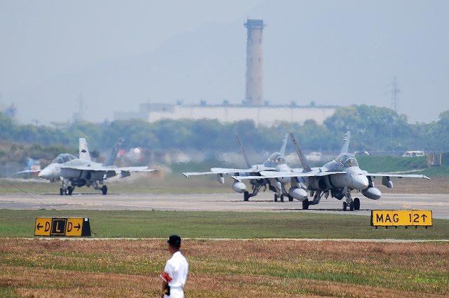 × [PR]上記の広告は3ヶ月以上新規記事投稿のないブログに表示されています。新しい記事を書く事で広告が消えます。 (左)スカイダイビング、米空軍F-16Cの機動飛行に続き、海自US-2の飛行展示が実施された。 (中・右)空自新田原基地よりF-4EJ改の飛行展示がリモートにて実施された。 (左)近接航空支援のデモの為、VFMA(AW)-121とVMFA(AW)-242から各2機のF/A-18Dが離陸。 画面手前のDT03の機首下面には、偵察カメラ用の窓が開いている。 (中)引き続き行われる空中給油デモの為米海兵隊のKC-130が離陸。 (右)高速のローパスでマッハコーン的なもの(正確には違うらしいです)が発生した。 (左)空中給油デモ。(実際には接続してない) (中)各機が順次着陸 (右)誘導路をタキシングしてゆこうとした物の、一部がブルーインパルスの駐機場所に当てられていたため通行止めにあい暫し待機。 (左)着陸するKC-130 (中)そのまま滑走路上をバックするところを披露した。 写真は「中の人」が開いた後部ランプより後方(この場合は前方?)を監視しているところ。 (右)待機していたF/A-18Dは、順次滑走路も使う等してUターンし駐機場所へ入っていった。 (左)離陸へ向けて各部をチェック中のAV-8BハリアーII(奥のほうの機体)。 空中給油用のプロープを展開している。 (中)ノズルを斜め下へ向けて短距離離陸するハリアー。 しかも、足が離れた瞬間に捻り始めてるし。 (右)先ずは機動飛行を披露 続いてホバリングなどを披露 (左)ホバリング状態から通常の飛行へと遷移中 (右)最後に短距離着陸を披露した。 つづく PR