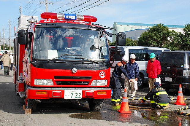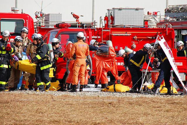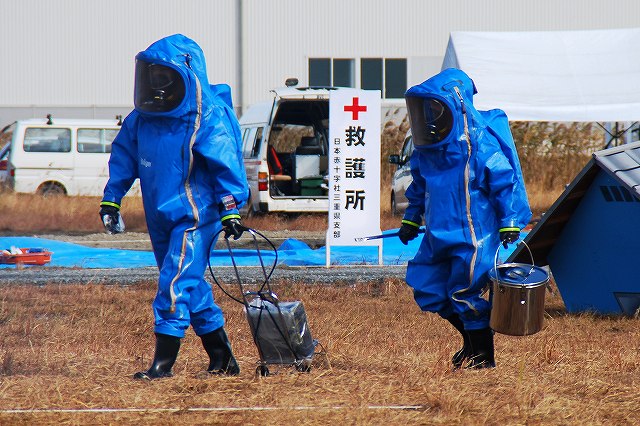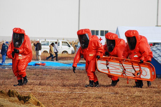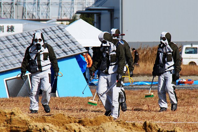 続いて、地震の混乱に乗じて何者かが化学物質の貯蔵施設に於いて化学テロを行ったと言う想定の訓練ヘ…