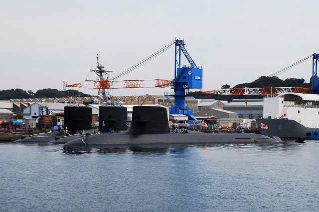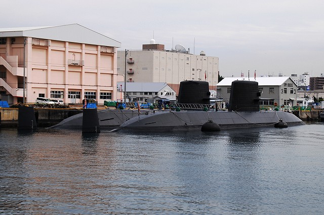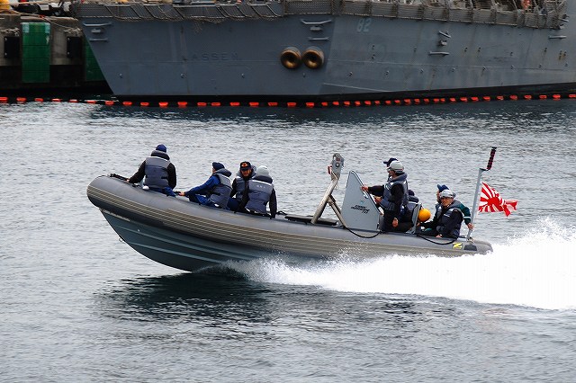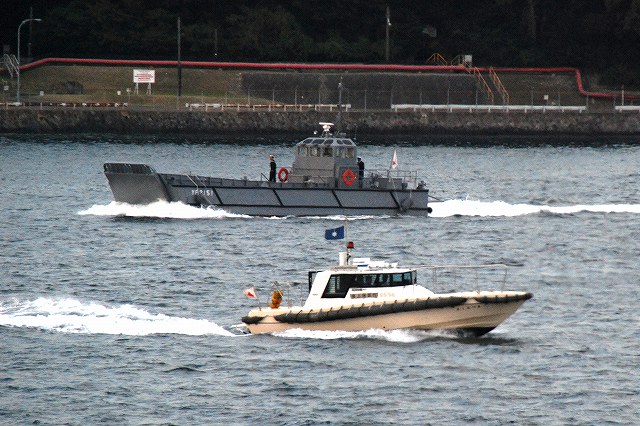(左)ヴェルニー公園より撮影した吉倉桟橋の状況。 観艦式参加の各艦が満艦飾を実施している。 (中)米軍側に居た3隻の海自潜水艦。背後には米海軍のアーレイバーク級イージス駆逐艦が見える。 一番左側は舵がX型なので、今の所1隻しか就役していない海自最新の潜水艦「そうりゅう」と判る。 なので隠す必要も無いのか、タラップには「SORYU」と記された幕がかかっているのが見える。 他の2隻は「そうりゅう」と共に観艦式に参加する「わかしお」と「なつしお」かな? (右)そうこうするうちに、本日のカメラシップ「シーフレンドV」が満員の乗客を乗せて戻ってきた。 …と言うことで、「シーフレンドV」に乗り込み軍港巡りに出発! 出港後暫くは米軍側に居た各艦艇を撮影… (左)米軍側にいた海自の「おやしお」型潜水艦。 現在の海自の潜水艦は(古い順に)、船体が涙滴型の「はるしお」型、船体が葉巻型の「おやしお」型、舵がX型の「そうりゅう」型の3タイプ。 (右)こちらは先ほどの「そうりゅう」以下3隻。画面奥の「わかしお」と「なつしお」が「はるしお」型。 DDG82「ラッセン」 アーレイバーク級イージス駆逐艦のうち、ヘリの搭載が可能となる等した最新型のフライトIIAと呼ばれるタイプで、艦後部にヘリ格納庫が有る。 (左)米海軍の警備艇 (中)海自の複合艇。 護衛艦「ひゅうが」の搭載艇のよう。つか、海自の複合艇が走っている所は始めて見たカモ? (右)左側は、DDG63「ステザム」 米軍側にいた海自のヘリコプター搭載護衛艦DDH181「ひゅうが」。 海自側の「ひゅうが」対応埠頭が完成するまでは、米軍側が定位置のよう。 この日の米軍側には「ひゅうが」以外に、空母「ジョージ・ワシントン」や揚陸指揮艦「ブルーリッジ」と言った「大物」は居なかった。 一旦「外海」に出た遊覧船は、船越地区(長浦港)へと向かう。 (左)停泊中の各艦が見えてきた。 (中)2隻の「はつゆき」型護衛艦。 左側のDD122「はつゆき」は実施海面の警戒艦。右側のDD130「まつゆき」は予備艦だった。 「はつゆき」は当日午後出港してゆく予定だったらしく満艦飾はナシ。 (右)DDG171ミサイル護衛艦「はたかぜ」とASR403潜水艦救難艦「ちはや」 (左)DD132「あさゆき」の内火艇 (中・右)「はたかぜ」と「ちはや」 (左)「はたかぜ」艦首の武装。5インチ砲とMk.13ミサイルランチャー。 (右)MSC681掃海艇「すがしま」とLCU2002輸送艇2号。 「すがしま」は警戒艦として観艦式に参加した。 輸送艇2号のみ満艦飾を実施していた。 中途半端なところで、つづく。(^。^;)