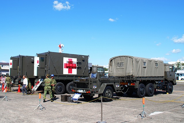 (左)ペトリオットご一行様の展示。 (中)お馴染PAC-3の模擬弾を搭載した発射機。 当然ながら発射機のみが有っても任務は遂行できず、多くの支援車両を必要とする。 (右)フェイズドアレイレーダー (左)陸自春日井駐屯地よりの展示。 野外炊具1号(手前)と野外手術システムの手術準備車と手術車。 (右)野外手術システム用の発動発電機 81式短SAMの発射装置搭載車両(手前)と射撃統制装置搭載車両発射機と射撃管制車。 陸自も装備しているがこれは空自第6航空団(小松基地)よりの展示。 (左)20mmVADS。20mmバルカン砲を基幹とした対空機関砲で、こちらも6空団よりの展示。 (中)同じく6空団より展示のSAM-2(91式携SAM) (右)空自小松基地(左側)と陸自春日井駐屯地(右側)の中型トラック。 ちなみにどちらも旧タイプだった。 救難用の各種装備。 陸海空に対応しており、空自救難団の能力の高さが窺い知れる展示だった。 (左)空自の救急車と、救護所として使用されていたエアーテント。 (中)機動衛生隊の機動衛生ユニット。 最大2台をC-130H輸送機に搭載でき、被災地から被災地外への広域搬送時に、機上にて医療監視/応急的医療処置/看護などを行う。 (右)内部はこんな感じ、最大3名の重傷患者を収容でき、各種医療機材も装備。 (左)松島基地からやって来たブルーインパルスjr. 残念ながら私の到着時には「展示飛行」は終了していた。 (右)小牧基地のC-130H jr. 「中味」は軽自動車。 つづく