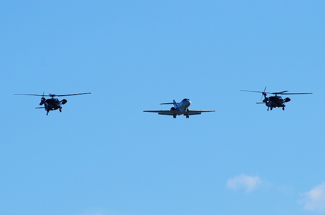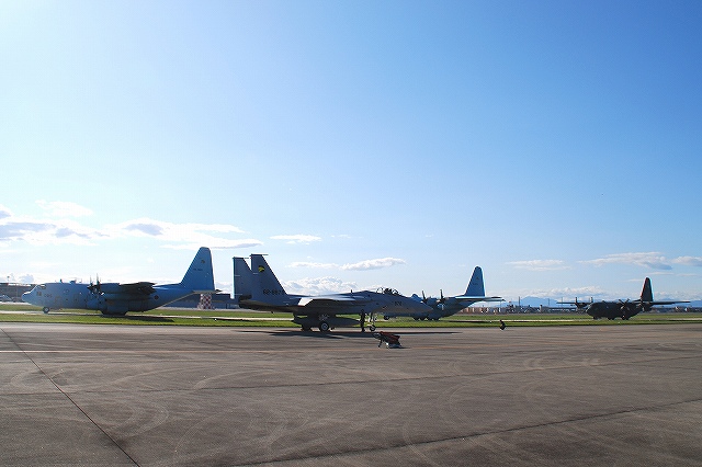 …と言う事で早速地上展示機の撮影を開始。 (左)今回の目玉の一つ、KC-767空中給油機の機内公開。 ただし、長蛇の列だったので時間も無かった事だし私は見学を見送り。実際に見学した友人の話ではコクピット後方を右舷側わら左舷側へ通り抜けるコースで、通路越しにコクピットは撮影OK゛たったものの、給油オペレーター席を含むキャビン側は撮影禁止だったとの事。 (右)機首後方左舷側のカーゴドアが開かれており、客室内に座席がセットされている様子を見る事が出来た。 小牧と言えば…なC-130H輸送機。 (左)格納庫内で機内を公開していた緑系迷彩の#074。 (右)エプロン非公開地区で、デモフライトの準備をしていた水色の#078 (左)入間より飛来のC-1輸送機 (右)三沢より飛来のE-2Cホークアイ早期警戒機。 10万時間無事故飛行を記念したスペシャルカラー機だったのだが、主翼を折りたたんだ状態で展示されていたので、カラフルに塗られていた尾翼を見る事が出来ず(^。^;) (左)小松より飛来のF-15Jイーグル。 (中)三沢より飛来のF-2A支援戦闘機 (右)入間より飛来のU-125飛行点検機。 陸海空自衛隊航空基地の保安施設の点検に用いられる。 (左)浜松基地より飛来のT-4練習機 (右)松島基地より飛来のブルーインパルス。6機+予備機1機が展開していたが、今年も展示飛行は実現せず。 (左)救難教育隊のU-125A救難捜索機 (中)同じくUH-60J救難ヘリ (右)入間より飛来のCH-47J(LR) (左)エプロンの端に駐機していたKC-767 (右)尾部の給油ブーム 従来型の空中給油機のようにオペレーター胴体後部下面にオペレーター席は無く、監視カメラの映像により機内のオペレーター席より給油作業を行う。 中エプロン付近の展示機 (左)静浜基地より飛来のT-7初等練習機 (中)海自のSH-60J@ロービジ (右)明野より飛来のAH-1Sコブラ (左)明野より飛来のUH-1J (中)明野より飛来のOH-6D (右)今回展示された唯一の民間機、セコインターナショナルのMD600N。 OH-6系統の期待の発展形で、テイルローターの無いノーター機。 つづく。