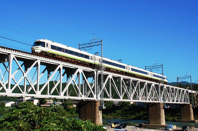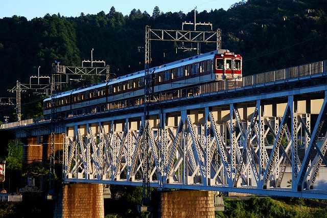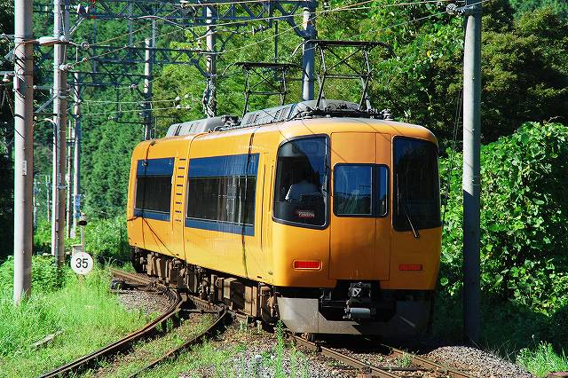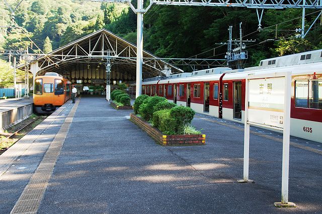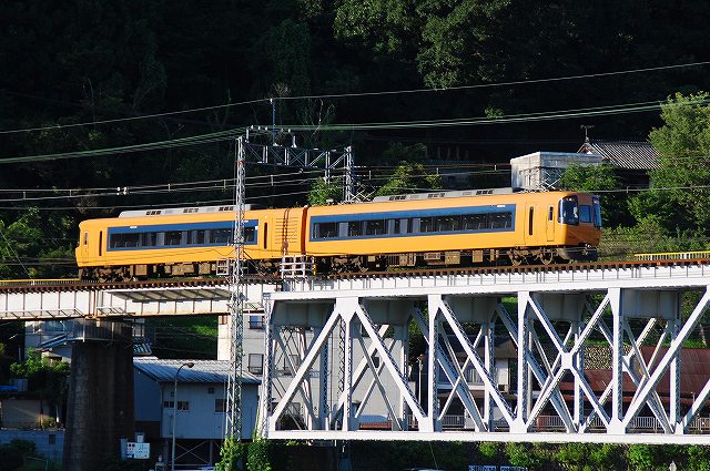 この日は家族の観光に付き合って近鉄吉野線沿線を回ってきました。 ・橿原神宮前駅 標準軌(軌間1435mm)の橿原線と狭軌(同1067mm)の南大阪/吉野線の結節点(乗換駅)である橿原神宮前駅の構内には、両軌間の線路が混在している。 (左)狭軌の南大阪線系統の電車を、定期検査などのため標準軌区間を回送して大阪線五位堂駅隣接の工場(車庫)へ送るため、 標準軌区間用の仮台車へと振り替える施設が有り、その付近では「3線区間」がある。 写真に写っているモーターカーは入替作業用かな? (右)台車振替場の中に置かれていた仮台車。動力等はついていないので、入場車両の前後を電動貨車で挟んで回送する。 (左)南大阪/吉野線ホームに停車する阿部野橋行き準急。 橿原神宮前駅を境に南大阪線と吉野線と路線名称は分かれるが、実際には一体の路線として運営されている。 (橿原線は樫原神宮前が終点) (右)橿原神宮前折り返しの古市行き普通。 南大阪線系統の車両に限らず、近鉄に於いてもVVVF(三相交流モーター)車が珍しい存在ではなくなってきたからか、VVVF通勤車の運転室後位に付いていた「VVVF」のエンブレムを省略(取り外)した車両が増えつつある。 (左)阿部野橋行き特急が到着 使用されている16000系は、2連×3本が大井川鐵道に譲渡されたものの、まだまだ「吉野特急」の主力を占めている。 (中)対向する吉野行き特急は、南大阪線系統の白眉26000系「さくらライナー」だった。 (右)16000系と26000形が並ぶ。 南大阪線は複線だが吉野線は単線なので、行き違いをする必要がある。 ・壷坂寺 (左)壷阪山駅にて下車し、バスへと乗り換え壷坂寺へ… (中)境内に有る大仏さんはインドから贈られた物だそう。 そのせいなのか、(写真では判り難いかも知れないけど)大仏さんと言えば…なパンチパーマ(違)ではなく、ドレッドヘア(違)だった。(^_^;) (右)寝釈迦像と巨大観音像もある。 壷坂寺は眼病にご利益があるお寺なのだそう。 ・吉野山 (左)終点の吉野駅は、線路は2線ながら、降車ホームと乗車ホームが分離された行き止まり式の櫛型ホームと、長さこそやや短いもののホーム全体を覆うドーム状の屋根を持つ、関西私鉄のターミナル駅らしい構造の駅。 (右)吉野ロープウェイに乗り換えて吉野山山上へ。ゴンドラの上方奥に、近鉄吉野駅が見える。 この路線は、1929(昭4)年3月開業という現存する路線では日本最古のロープウェイだそう。 現用のゴンドラは昭和41年近畿車輛製。16000系特急に似せた塗り分けだが経営は近鉄グループとは別の地元の会社。 (左)山上にある金峯山寺の山門 (右)同・蔵王堂(本堂) (左)吉野駅へと戻る。 (右)標準軌路線の汎用特急車22000系の南大阪線系統バーション16400系が阿部野橋へと出発する。 標準軌路線の12600系「スナックカー」同様、16000系も22600系「ACE」の南大阪線系統バージョンにて置き換えられたりするだろうか? ・吉野川橋梁 吉野駅から家族と別行動をとり、本格的に「撮り鉄」状況開始(^。^) 下市口駅にて下車し、吉野川(紀ノ川)にかかる鉄橋で撮影する。 川原では多くの人が川遊びに興じていた。 (左)さくらライナー (中)対岸へと渡る。 この編成のVVVFマークは、まだ外されずに残っていた。 (左)いろいろと位置を変えて撮影しているうちに日が暮れてくる。 (中)鉄道橋に並行して架かる道路橋より。 (右)16000系のうち1編成のみ4両編成のものがある。(他は2両編成) 画面中央上部右よりに写っているのは、鳥でもローパスフィルターに付着したホコリでもなく、関空にアプローチする旅客機。 吉野川上空を西進した後、大阪湾に出た(と思われる)所で右旋回して北に進路を取っていたよう。 お盆休み中だからか、ただでさえ渋滞している川沿いの道を、珍走団や珍走まがいの輩が時折徘徊しており結構五月蝿かったのだけど、この時ばかりは写真に音が写らないのが幸いだなー(~ヘ~;) 写真は阿部野橋へ向けて出発する「さくらライナー」 運転室と客室の仕切りに大型のガラスを使用しているため、前面展望が良さそうなのがわかる。 この後、この日の宿営地である奈良市内へと移動しました。