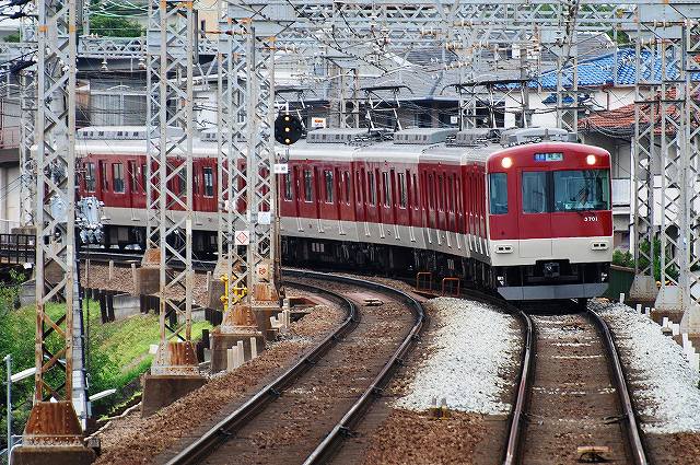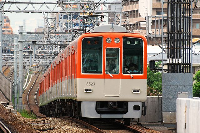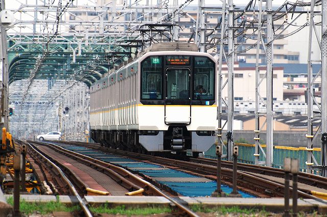 ・枚岡(ひらおか)駅 生駒山を越える連続勾配区間の途中に有る駅。 (左)お目当ては「生駒山を越える阪神電車」…と言うことで、近鉄車と擦れ違う阪神9000系。 (中)阪神との相互直通開始時のダイヤ改正により誕生した新種別、区間準急としてやってきたシリーズ21。 (右)緑色の車両は一瞬京阪電車に見えることでおなじみ(^。^;)、3220系(京都市営地下鉄乗り入れ対応のシリーズ21)のラッピング車。 (左)こちらも京都市営地下鉄乗り入れ対応車の3200系。 (右)生駒山の勾配区間を駆け下りる阪神9000系。 9000系は近鉄乗り入れ用に抜擢されるに当って、(下り)勾配区間に対応する為抑速ブレーキを追加しているそう。 阪神との直通開始に備えたシリーズ21の集中投入後も、まだまだ頑張る8000系。 (右)丸屋根の車両は、当初より冷房装置を搭載して落成したグループ。 (右)平屋根の車両は、当初は非冷房で落成し、後年冷房化改造されたグループ。 ・大阪難波駅 この日朝平城宮跡で4連を撮影したので、恐らくこの時点での全勢力10両をコンプリート…だと思う(^。^;) 阪神との相互直通運転開始後も、近鉄の有料特急の全てと一般の奈良線電車の一部は難波にて折り返している。(一部は折り返し設備のある阪神なんば線桜川駅まで回送) 近鉄-阪神のレールが繋がった事で、次なるファン的興味はこれら近鉄有料特急の阪神線内への乗り入れが有るのか否か…と言うことだが、阪神本線内の列車密度が高い事等、実現には色々とハードルが有るそう。 それはともかく、今回の「撮り鉄」は近鉄の三日間有効のフリー切符「週末フリーパス」を利用したのだけど、当然ながらこの先の阪神電車の区間では使用できないので。ここよりはフツーに乗車券を買って(正確にはICカード乗車券「ICOCA」を利用して)移動してます。 ・伝法(でんぽう)駅 淀川を渡る電車を撮影すべく、伝法駅で下車し鉄道と並行して架かる伝法大橋の歩道へと移動。 阪神電車の区間に入ったので、第一目標は「乗り入れてきた近鉄電車」に変更(^。^) (左)淀川を渡る近鉄車。 真新しいシリーズ21より、従来塗装の電車の方が「近鉄電車がやって来た」感がありますね。(^。^) (中)こちらは近鉄のシリーズ21。 (右)阪神の9000系がやって来た。 近鉄との直通開始までは都会のローカル線然としていた「阪神西大阪線」は、神戸-大阪-奈良を結ぶ大動脈の一部「阪神なんば線」として生まれ変わった。 ・大物(だいもつ)駅 この駅にて阪神本線と阪神なんば線が合流する。 (左)次の尼崎駅では阪神本線の上下線が阪神なんば線を挟むような配線になっているので、大物駅の先で阪神本線下り(神戸方面行き)線と阪神なんば線が立体交差している。 写真は阪神本線を潜る近鉄シリーズ21。 (右)山陽電鉄姫路行き直通特急@阪神8000系と阪神梅田行き直通特急@山陽5000系が擦れ違う。 (左)2000系電車による梅田行き急行。 (中)新塗装の8000系と擦れ違う。 新型車の投入と塗装変更が進んだことにより、以前よりの「阪神顔」の「赤胴車」(普通用の「青胴車」もだけどね。「赤胴車」は急行・特急用)は少なくなっている。 また、阪神電車の車両は近鉄への乗り入れ開始に伴い、乗り入れ非対応の車両を含めて近鉄車に合わせた連結器の交換及び取り付け高さの変更を行っている。 写真の両編成は既に交換済みで、連結器の高さ変更に合わせて連結器上部の車体の一部が切り欠かれている。 (右)2000系による山陽電鉄須磨浦公園行き特急。 前述のように新型車の投入が進んだため、正面の貫通扉に「特急」のヘッドマークを掲げた列車も少なくなっている。 撮影当日は甲子園で高校野球を開催していたため、「高校野球 特急」のヘッドマークを掲げている。 (左)1995年1月17日に発生した阪神大震災により阪神電鉄では多くの車両が被災した。 大量に増備され当時既に阪神電車の主力の一角を形成していた8000系もその例外ではなく、当時在籍していた123両中15両が廃車され、廃車が出た編成の残存車両を組み合わせた編成が3本存在している。 写真の編成もその1本で、梅田側の先頭車は車両の不足分を補う為震災後に製造された車両。 (右)神戸方の先頭車は、震災から生き残った8000系の初期型。 ということで、前後で「顔」が違う編成となって走っている。 ちなみに、この編成など一部の8000系は、前述の連結器交換後も車体の一部を切り取らずに使用されている。 (左)山陽5000系の姫路行き直通特急。 近鉄車と山陽車の並びも出来れば撮影したかったところだけど、タイミング等が合わず今回は実現せず。(^。^;) (右)阪神で唯一残る行き先方向幕未設置車5314を先頭にした普通列車がやって来た。 阪神線内では「乗り入れてきた近鉄車」を中心に撮影するつもりだったけど、 つづく。