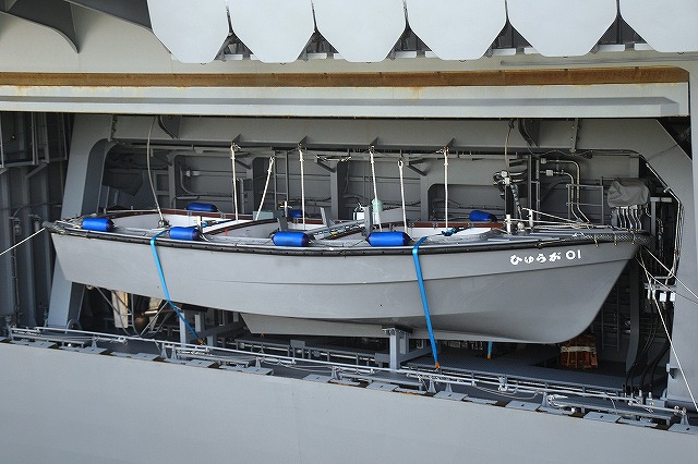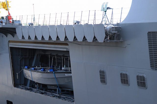 (左)…ということで朝の大桟橋。 早朝にもかかわらず、そこそこ見物人が居た。 (中)艦首の20mmCIWSと甲板に係止されていたSH-60K。 (右)この時のメインローターは折りたたまれた状態だった。(一般公開時は展開) (左)これだけ大きな艦の舷門を見下ろすってものあまり無いかも? (中)20mmCIWSと何かのアンテナドーム(ぉぃぉぃ!) (右)12.7mm重機関銃用の銃座。 公開時は(確か)カバーがかけられていた。 (左)膨張式の救命艇が収まっているコンテナの部分に付いている楯のような板はステルス性向上の為の物? (中)搭載艇が収まっている部分など、船体の開口部の多くは、ステルス性向上の為シャッター等で塞げるようになっている。 (右)勿論船体やアイラ…もとい!艦橋等上部構造物も、ステルス性向上の為ナナメのラインを基調とした、のっぺりとした形状になっている。 メインマストもステルス性に優れた形状のソリッドマストを採用している。 (左)後部甲板に置かれていたクレーン車。 (右)同じく後部甲板に置かれていた、ハンドリングトレーニング用のSH-60J「ひゅうが181」。(恐らく退役済みの機体) (左)折り畳まれた自衛艦旗を持ったWAVEさん登場。 「ひゅうが」型護衛艦は、海自の戦闘艦艇としては初めて設計当初から女性自衛官用の設備が確保されている。 (中)0800時となり、信号喇叭により君が代が吹奏される中、艦尾に自衛艦旗が掲揚される。(同時に艦首には国旗が掲揚される) (右)艦首の20mmCIWSの動作確認中。 対岸の横浜防災基地に居た海保船艇 (左)巡視船PLH31「しきしま」。 (中)巡視船(消防船)FL01「ひりゅう」など (右)設標船(浮標の敷設等を行う)LL11「ほくと」や巡視船(災害対応型)PL31「いず」など 「ひゅうが」の周辺を警備していた船艇 (左)海保監視取締艇SS67「れお」 (右)同じく神奈川県警「みうら」 この後、既に50名ほど並んでいた公開待ちの列に加わり、公開開始を待ちました。 つづく |