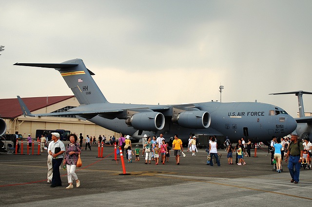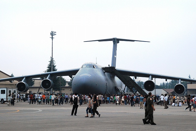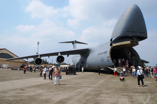 (左)嘉手納基地より飛来のE-3セントリー早期警戒管制機。 (中)E-8と同じボーイング707がベースの空中給油機KC-135ストラトタンカー。こちらも嘉手納より飛来 (右)ヒッカム空軍基地(ホノルル国際空港と共用)より飛来の、C-17グローブマスターIII輸送機。 (左)「西側最大」(※)の輸送機、C-5ギャラクシー。トラビス空軍基地より飛来。 機体の前後にランプドアが有るので、機首を跳ね上げることができる。 (中)118tの貨物または360名の兵員を搭載できる機内でも、多数の見学者によりラッシュ時並みの混雑に(^。^;) (右)公開終了の時間が近付くと、機首が通常の位置に戻されていた。 ※世界最大はロシアのAn124 (左)米空軍のC-130輸送機。 この機体は機首にFLIR、主翼には空中給油用のポッドを装備していた。特殊作戦機? (中・右)横田基地所属のC-130H輸送機。 (左)機首及び尾部には各種センサーのようなものが付いていた。 (中・右)エプロンの非公開地区に居た横田所属のC-130 (左)横田所属のC-12J (中)同じくUH-1 (右)横田基地の飛行クラブが所有するセスナT-41Aメスカレロ (左)米海兵隊岩国基地のVMFA(AW)-225バイキングス所属のF/A-18Dホーネット。 フルカラー塗装の機体がやってきていた。 (中)同機のバゲージポッドにはこんなスペシャルマークが記入されていた。 (右)同じく岩国より飛来した、FMFA(AW)-533所属のF/A-18D。 こちらはロービジの機体を展示。(フルカラーの機体は8/23開催の松島航空祭で展示されていたよう) つづく |
