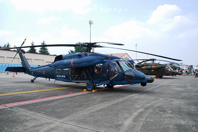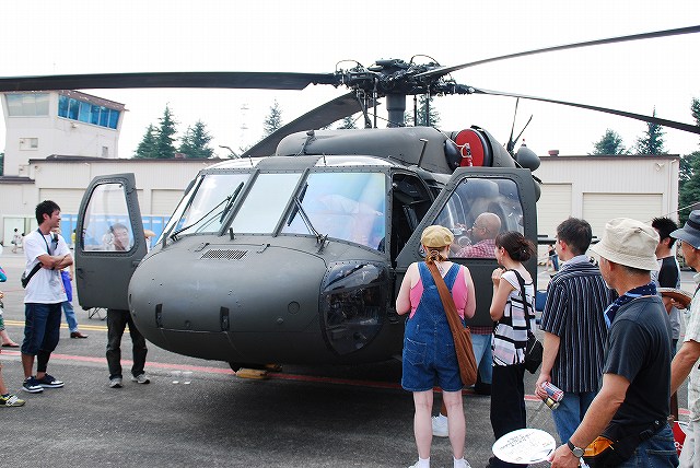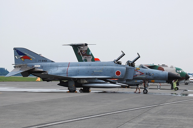 (左)空自百里基地より飛来のF-4EJ改ファントムII。 今年に入り、それまで百里に所在していたF-15飛行隊と交替で那覇基地より移動してきた302飛行隊の所属機で、尾翼に大書きされた尾白鷲のマークが萌えポイント。 (中)センターラインタンクには、小さくシャークマウスが描かれていた。 302飛行隊は戦競などのスペシャルペイントで、しばしばシャークマウスを用いている。 (右)302飛行隊は那覇基地以前には千歳基地に配置されていた。 百里基地からはもう1機ファントムが飛来していた。 こちらは501飛行隊所属の偵察機、RF-4EファントムII。 機首に偵察用のカメラを装備できる。 (左)F-2B支援戦闘機。 飛行開発実験団(岐阜)の所属機。 (中)T-4練習機。 総体司令部飛行隊(入間)の所属機。 (右)入間基地より飛来のC-1輸送機。 (左)小牧基地のC-130H輸送機。 (中)機首に貼られていた小牧基地50周年記念マーク。 (右)尾翼のマークは、この春からペガサスを象った物に変更されている。 (左)百里救難隊のU-125A救難捜索機。 機首のFLIRが下ろされた状態になっている。 (右)空自府中基地の軽装甲機動車。 空自にも重要基地の警備用に配備が始まっており、陸自のものと違いグリーン一色に塗装されている。 「空自横田基地」が実現すれば、横田にも配備される? (左)海自のLC-90 (右)海自のP-3C哨戒機 ここからは、一塊になって展示されていたH-60系等ヘリの写真を… (左)一番手前は百里救難隊のUH-60J。 洋上迷彩の機体が展示されていた。 (右)陸自のUH-60JA (左)米陸軍キャンプ座間のUH-60A (右)海自のSH-60K。艦載用の哨戒ヘリ。 (左)陸自のCH-47JAチヌーク。 第12飛行隊(相馬原)の所属機。 (中)同じくUH-1J。 (右)同OH-6D。 UH-1とOH-6は立川駐屯地の機体。 OH-6の後には、東部方面ヘリ隊所属のパジェロが停車していた。 つづく。