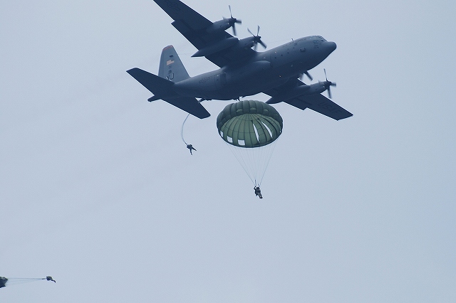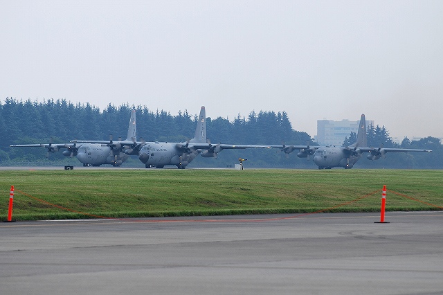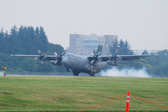 横田の飛行展示は所属する輸送機などによる比較的小規模のものが通例で、正直余り期待していなかったのですが…。 (左)飛行展地の為タキシングしてゆく横田所属のC-130H輸送機。 イベントにより誘導路が使用できないため、滑走路上を通っていった。 (中)滑走路端でUターンする。3機のC-130が飛行展示を実施した。 (右)離陸してゆくC-130 (左)離陸していったC-130が戻って来るのを待っていたら、突然C-32が着陸してくると言うサプライズが…! (中)滑走路上でUターンするC-32。 C-32はボーイングB757-200から派生した輸送機で、米国政府要人及び軍高官の輸送に使用される機体。 いわば、大統領専用機「エアフォース・ワン」として知られるVC-25(ボーイングB747改造)の弟分みたいなもの。 (右)タキシングしてゆくC-32。 エプロンの非公開地区へと入って行った。 (左)さらにC-130が戻って来るのをまっていたら、今度はU-2偵察機が飛来! U-2は軽量化のため、ランディングギアが胴体の前後2箇所しかなく、着陸時は翼端を地面にこすりつけ、停止後主翼下に補助輪を取り付けタキシングを行うと言う。 (中)ギアのアップ/ダウン等形態を微妙に変えながら3回ローパスを実施。 1955年初飛行と比較的古い設計の機体だからか、意外と騒音が大きい。 (右)最後はズームアップして去っていった。 3機中2機のC-130から3波に分けて空挺降下を実施していた。 着陸するC-130。 (左)先ほどのC-32が離陸。 誰が乗っていたんでしょうね? (右)暗くなりかけてから横田基地所属のUH-1Nが離陸。 デモフライトをするのかな? …と思いきや飛行場上空を一周しただけでそのまま着陸。 米軍チャーター便専門の航空会社、ワールド航空のMD-11が着陸してきた。 つづく。