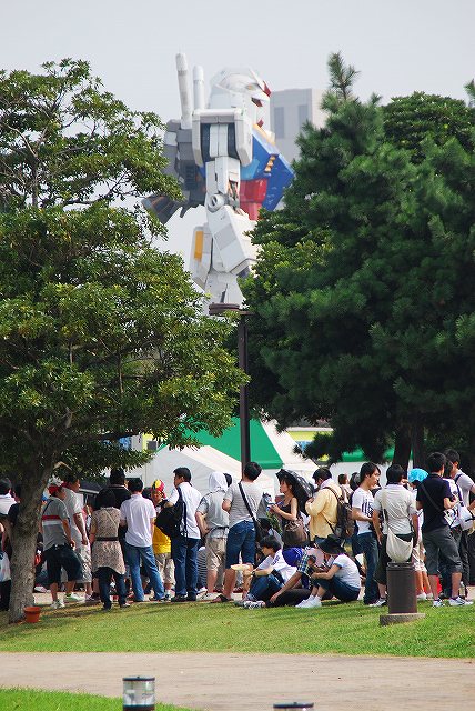 既に半世紀が過ぎた 東京湾に浮かぶ巨大な人工島には新たな都市が建設され 人々は 観光に訪れ 消費し そして帰っていった 西暦2009年7月 東京テレポート駅から最も遠い潮風公園に 突如として実物大ガンダムが建造され ガンヲタに新たな搾取を挑んできた この一ヶ月余りの戦いで 現地に訪れたガンヲタは全財産の約半分を消費せしめ 人々は自らの物欲に恐怖した 公開はその後も続き 終了期日の8月末が近付きつつあった 見せてもらおうか 連邦軍のモビルスーツの 集客力とやらを! …と言う事で、横田基地友好祭へ行く前に、お台場へ寄って見学してきました(^。^) 朝っぱらから既に暑いお台場を、東京テレポート駅から歩くこと暫し…会場である潮風公園の広場へ到着すると、全高18mと言う実物大ガンダムがその威容を表す… 連邦め なんと言うモビルスーツを 作ったのだ 両肩と頭部。 両肩には、船舶や航空機の灯火に倣って右肩=緑 左肩=赤のライトが仕込まれているよう。 右肩のEFSFは地球連邦宇宙軍(と訳せば良いのかな?)の略。 左肩には、東京オリンピック招致のロゴマークが貼られていた。 凄い オヤジ共が熱中するわけだ (左)正面から。訪問したのが朝9時台だったので、まだ「股くぐり」は実施されていなかった。 (中)やや離れた場所から。 全高18mのモビルスーツと比べると、見ろ! 人がゴミのようだ!(それは違う作品!!(^_^;)) (左)背後から。 前述のように朝の比較的早い時間帯に訪問したので、バーニヤなど各部からミストを噴出したりしている所は見ることが出来ず。 よってコイツ…動くぞ?!はナシです。(^。^;) (中)ふと足元を見ると…これはガンダムの足跡かな? 何かご利益有りそう?! (右)少し離れた場所から。 手前の行列は物販コーナーの開店待ちのよう。 えぇい! 連邦のモビルスーツの 商品価値はバケモノか?! 我々は偵察が任務だ一人だけどなー(^。^) …と言う事で、物販の列には並ばず会場を離れ暫しお台場を散策。 (左)警視庁の警備艇「たかお」 (右)海保の測量船、「拓洋」(手前)と「昭洋」 さらに歩を進めて、ホワイトベー…もとい!船の科学館付近へ。 巡視船PL107「宗谷」。 初代南極観測船として使用され、現在は船の科学館にて保存展示されている。 青函連絡船「羊蹄丸」 (中)以前は末期のJR時代の塗装だったが、近年国鉄時代の塗装に塗りなおされ、煙突には国鉄所属を示す懐かしの「JNR」マークが復活している。 (右)船尾には、レールなど鉄道車両を積みおろしする為の設備が有る。 船の科学館横に接岸していた、水産庁の漁業取締船「白龍丸」(海側)と「東光丸」(陸側)。 水上バス乗り場付近にいた海保巡視艇 (左)手前からCL136「やまぶき」・CL135「いそぎく」・CL34「ゆめかぜ」 全て同型の15メートル型汎用巡視艇。このタイプの巡視艇は (中)CL02「はやかぜ」 老朽化した巡視艇の代替として計画された15m型高速巡視艇だが、船型が小形に過ぎたため2隻のみの建造で終了している。 (右)15メートル型汎用巡視艇CL19「ゆりかぜ」 撮るべきラプたんが有る こんなに嬉しい事は無い …と言う事で(^。^;)横田友好祭へと転進する為、ゆりかもめに乗車。 最後に車窓よりガンダムを撮影してみる。 当日お世話に成った皆様有難う御座いました。 あと、冒頭の「あらすじ」等はあくまでネタですので念のため。(^。^;)