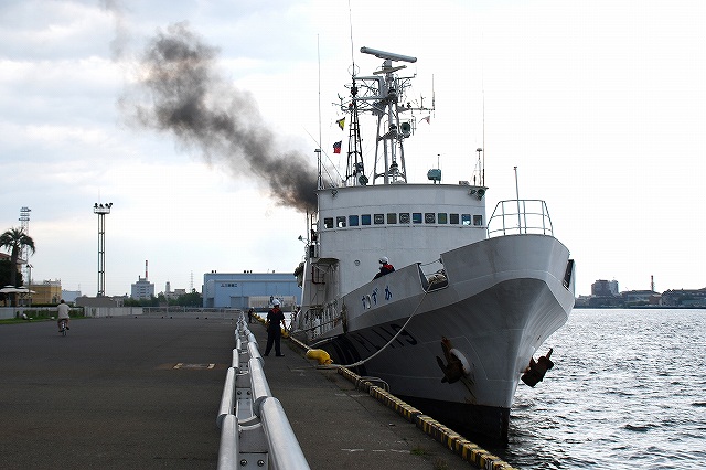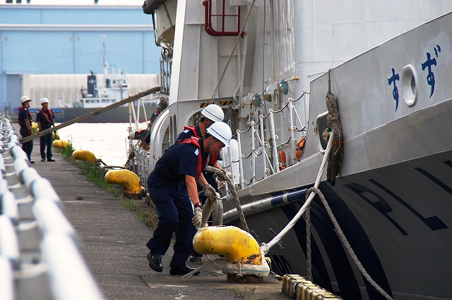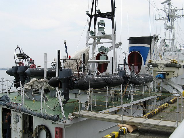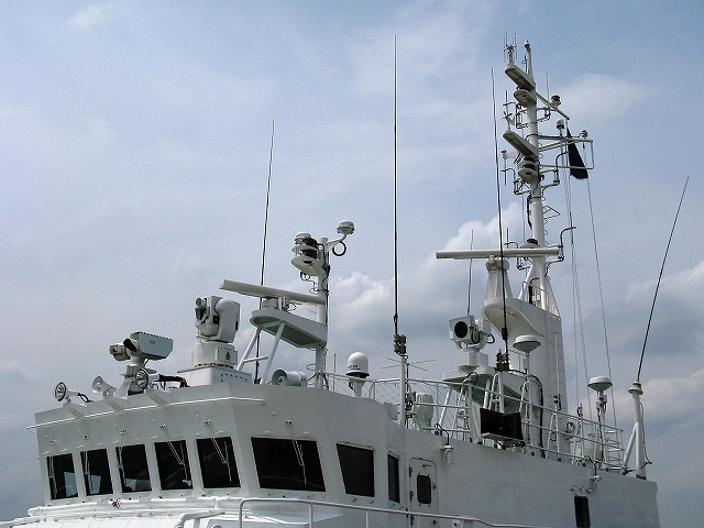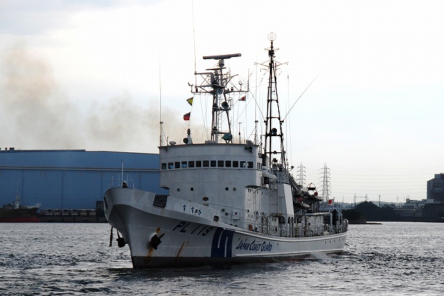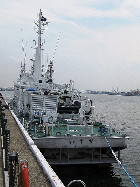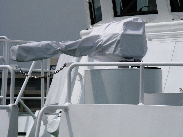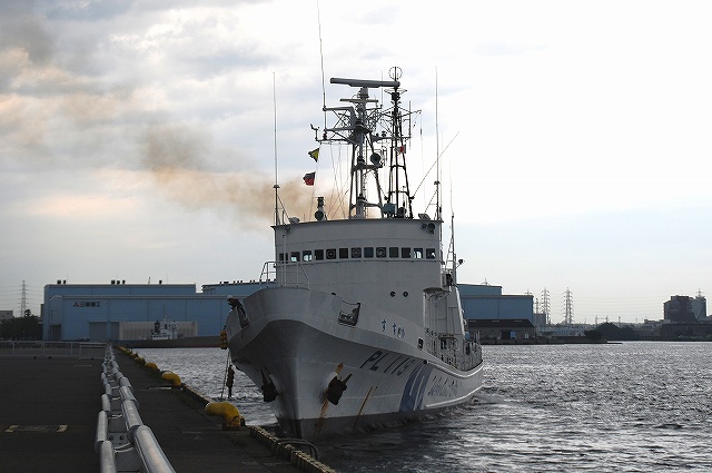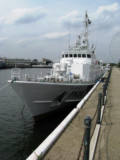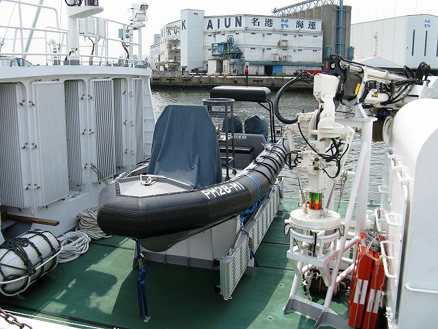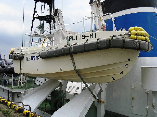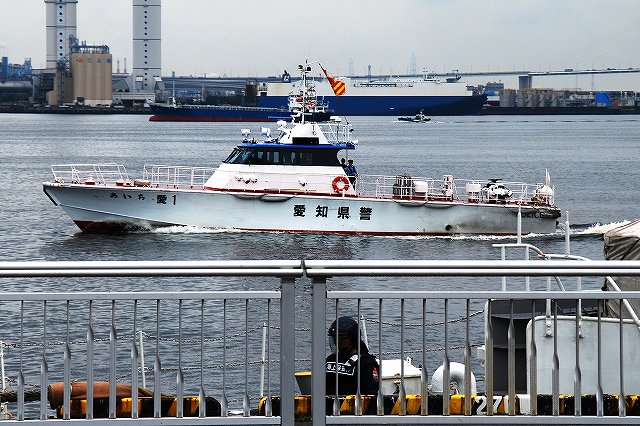 ・PL119 すずか 前日行われていた対テロ訓練時は近くで撮影できなかった為、この日改めて再出撃。 船首の「主砲」。カバーがかかっていてよく判らないけど、オープントップ式の40mm機関砲かも? しれとこ型には40mm/35mm/20mmの各タイプの機関砲を搭載したものがある。 (左)「すずか」の搭載艇 (中・右)そのほか、「すずか」は大小合わせて4隻の複合艇を搭載しているようだった。 建造後25年以上が経過し老朽化が進んでいる「しれとこ」型は、順次新造船への置き換えが進んでいる。 ・PM28 いすず 鳥羽海上保安部に配備されているが、この日は名古屋港水族館裏手の埠頭に接岸していた。 (左)船首には遠隔操作型の20mmバルカン砲を装備している。 (右)船橋直前には、遠隔操作式の放水銃を装備。 (左)船橋上部及びマストの状況。 船橋上部には暗視装置なども装備されている。 (右)電光表示板。 多くの海保船艇が装備しているが、近くでよく見るとシート状のものなのね。 (左)搭載されている複合艇。 画面右手の揚収装置により、航行中も発進/回収できるそう。 画面左手には「いすず」が搭載している大出力デーィーゼル機関のための吸気口が見える。 (右)後方から。 3基のウォータージェットにより30ノット以上の速力を発揮することが出来る。 ・「すずか」の出港 先が見えつつある「しれとこ」型なので、撮れる時に撮っておこう…と翌朝の出港の様子も撮影してきました。 (左)到着した時には、既に出港に向けた作業が進んでいた。 (中)海保監視取締艇「さあぺんす」が通過して行った (右)主機関始動 後進をかけて離岸する 出港してゆく「すずか」。 最後になりましたが、情報提供戴いたり現地にてお世話になったりした皆さん、有難う御座いました。