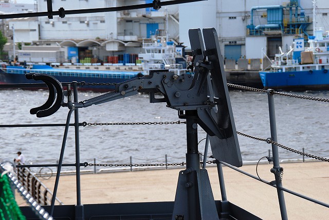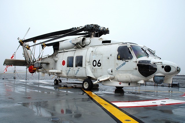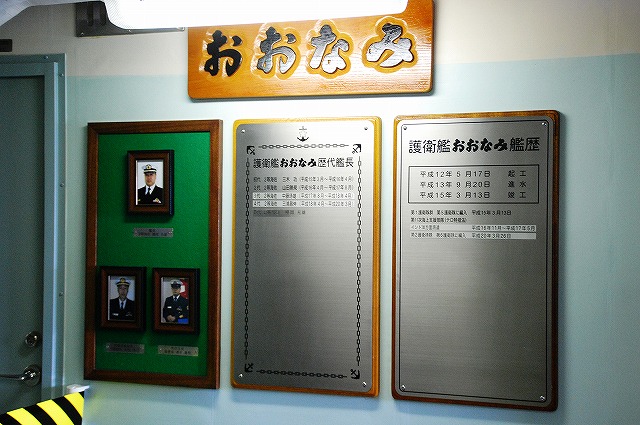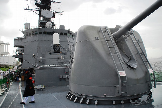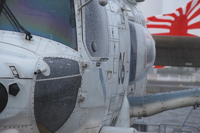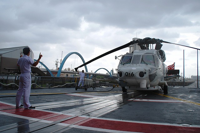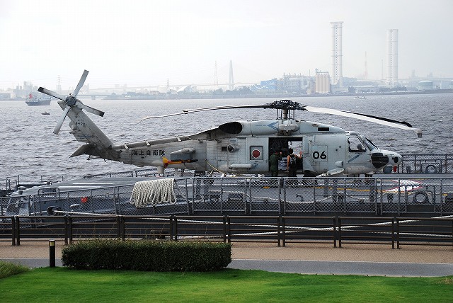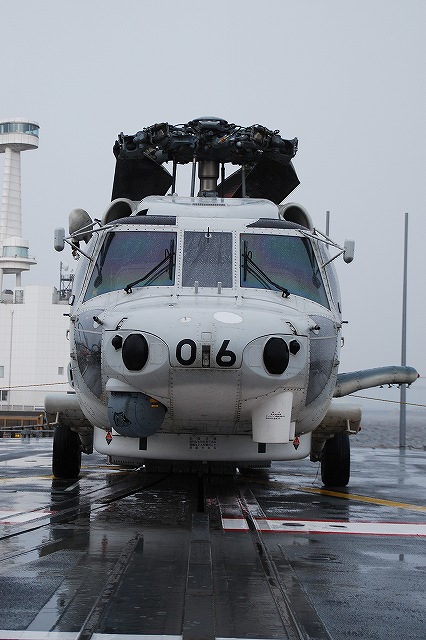 (左)今回は何時ものポートビル前の埠頭ではなく、名古屋港水族館南側の埠頭にて公開を実施しており、埠頭にあるイベントステージでは陸自音楽隊の演奏も披露されていた。 (中)早速艦内を見学。第一煙突後方の構造物上には複合艇が搭載されていた。 (右)艦橋付近にある12.7mm重機関銃の銃座。 機関銃は装着されていなかったが、肩当は付いた状態だった。 (左・中)今回も艦橋まで公開。 (右)艦橋の入り口に有った各種プレート等 (左)艦尾の飛行甲板ではSH-60Kが公開されていた。 SH-60Kのメインローターは翼端がバドル状になっている。 (中)下艦し「おおなみ」の外観を撮影。接岸位置の関係で、前方よりの写真は撮影できず。 (右)この頃から雨が降り始めており、飛行甲板等から見物客が退き始める…って事は今なら艦載ヘリをクリアに撮影出来ますやん! (左)…と言う訳で再び艦内に舞い戻る。 飛行甲板だけではなく、前甲板からも見学客が居なくなっていた。 (右)飛行甲板へ行くと、丁度ヘリのローターを畳んでいる所だった。 見学客が写り込まない状態でSH-60Kを撮影 (右)ん?止んできたかな? 「おおなみ」の飛行甲板より撮影した各種船舶 (左)赤色灯を点滅させつつ物凄い勢いでスッ飛んでいった愛知県警の警備艇「あおい」。 後の報道等によると、ちょうどの辺りの時間帯に弥富沖にて水難事故が発生しており、或いはそのための出動だったのかも? (中・右)客船「にっぽん丸」が入港してきた。 この辺りで雨が完全にやんだので、撮影も切り上げて帰還しました。 最後になりましたが、当日お世話になった皆様有難う御座いました。