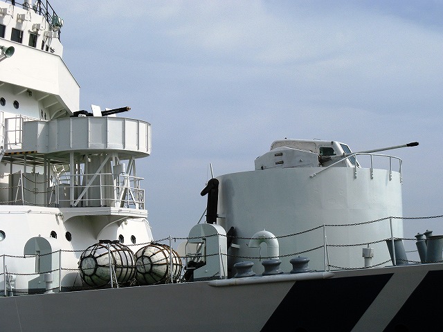 エントリーしている日本人選手は2名で、ブイグテレコムの新城幸也選手とスキル・シマノの別府史之選手が出走します。 本日モナコで行われる第1ステージは、15.5kmの個人タイムトライアルで、コースの一部はカジノ前~トンネル~プール…とF1モナコGPにも使用される区間を走るそう。 今年もJ SPORTSにて全ステージが生中継されます。 オマケの国営放送の回し者情報(^。^) ・「プラネテス」 BS2で7/5から再放送 毎週日曜日 午後11:54より。 ・7/27-31「ガンダム宇宙世紀大全」5夜連続放送 「ガンダム」から「Vガンダム」までを取り上げるよう。 携行していたカメラはコンデジのみなので、何時も以上にお見苦しい写真なのはご勘弁(^_^;) 「みずほ」の船首付近 「みずほ」の主な武装は、20mm多銃身機関砲(バルカン砲・中写真)と35mm単装機関砲(右写真)。 どちらも人力で操作するタイプ。 (左)タラップ (中)搭載艇など (右)搭載艇と煙突のコンパスマーク 「みずほ」はフィリピン沿岸警備隊との海賊対処訓練と、インドネシア海運総局及びフィリピン沿岸警備隊との合同油除去訓練を実施する為、この日より7/24までの予定で東南アジア方面へ派遣されており、当日夕方には海上保安長官も出席し出港式が行われている。 (左)船橋などを後方より (右)マストには海上保安旗が翻っている。 放水銃が装備されているのが巡視船らしい所。 「みずほ」を後方より。 「みずほ」はヘリコプター(ベル212)を2機搭載可能だが、残念ながら撮影時の飛行甲板上にヘリの姿は無かった。 後からやってきていたマルタイが先に居なくなっており、前から居るレールバスはそのまま残っていた。 ヘリコプター2機搭載型 常備排水量:5317t 全長×全幅×深さ:130m×15.5m×8.8m 機関:ディーゼル2基 2軸 18,200hp 速力:23kt 乗員:130名 武装:20mm多銃身機関砲/35mm単装機関砲各1 搭載機:ベル212×2機 |