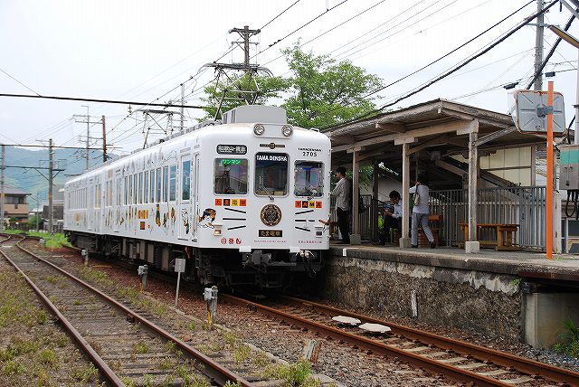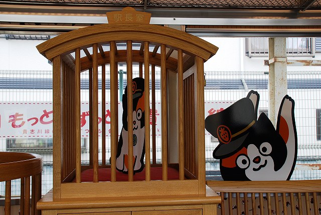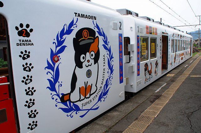 × [PR]上記の広告は3ヶ月以上新規記事投稿のないブログに表示されています。新しい記事を書く事で広告が消えます。 2006年の貴志川線経営移譲(南海→和歌山電鐵)時に、全車が無償譲渡されている。 …と言う訳で、一日フリー切符利用で回った和歌山電鐵の撮影レポートです。 いちご電車![]() 和歌山電鐵名物リニューアル編成の第一弾であるいちご電車に乗って貴志駅へと向う。 (左)始発である和歌山駅に停車中のいちご電車。 何故いちごかと言うと、終点貴志駅周辺の名産がいちごだからだそう。 (中)和歌山駅のホームには七夕飾りが用意してあった。 (右)車内には、いちご電車を始めとする和歌山電鐵の様々なローカル線再生への取り組みを評価して贈られた、「第5回日本鉄道賞表彰選考委員会特別賞」の記念プレートが飾られていた。 たま電車![]() リニューアル編成第三弾として今年春に登場。モチーフは勿論貴志駅のスーパー駅長たま卿。 (左)貴志駅に停車中のたま電車。 (中)前面にはヘッドマークが付く。ネコのヒゲをイメージしたデザインが楽しい。 (右)101匹のたま卿が縦横無尽に歩き回る「たまげた」デザイン(^。^) 車内に「たま文庫」を設置したため窓を塞いだ所には、巨大なたま卿のエンブレムが描かれている。 車内はこんな感じ。 (左)先に誕生した「いちご電車」や「おもちゃ電車」同様、内装には木材を多用。 (中)貴志方の先頭部は赤を基調としたデザイン。壁紙にもたま卿のイラストがちりばめられている。 (右)窓枠には招き猫型の照明がついている。 窓からたま卿が車内を覗いている。 (左)車内には「駅長室」も作られている。 (中)座席の一部はネコのシルエット。 (左)つり革の握り部分も木製。色も三毛猫をイメージして3色に。 (中)ドアに貼られたステッカー。 (右)和歌山方の先頭部分はイエローを基調としたデザイン。 つづく。 PR レポート第一回目は、貴志駅のスーパー駅長、たま卿の写真などです。 …と言う訳で、和歌山電鐵貴志川線の終点貴志駅。 (左)シンメトリーな木造駅舎の向って左側の売店にて飼われていた三毛猫「たま」が、「たまたま」「駅長」に就任した所、人気爆発でローカル線の貴志川線は乗客が10%増。 その貢献が認められ、たまは「スーパー駅長」へと昇進すると共に、和歌山県より「和歌山でナイト」の称号も貰っている。 (右)改札口の横にある、かつての出札窓口を改装して作られた「駅長室」がたま卿の仕事場。 (左)早速駅長室を覗いて見ると、案の定たま駅長とちび助役が爆睡中(^。^;) (中)チョットだけ顔を上げてくれた。 (右)駅長室に置かれていた駅長帽 (左・中)暫くして戻ってくると、ちび助役が台の上に上がっていた。 (右)たま駅長は相変わらず爆睡中(^。^) 次回からは例によって電車の写真です(^_^;) たま卿との接見時に於ける注意事項![]() 常識的なことばかりだと思いますが、以下が理解でき守れる人のみ行って欲しいと思います。 撮影時はストロボ厳禁ストレスになったり網膜を傷めたりするので、動物の撮影時はストロボはよくないです。 つか、ここの場合ガラス越しの撮影なので、ストロボを焚くとガラスに反射してメチャクチャな写真になります。 犬連れの見学厳禁犬は苦手だそうです。 駅長室のガラスを叩いたりしないその他、ストレスになるようなことはやめましょう。エサをあげたりもしないようにしましょう。 たま駅長は日曜日がお休みですその他、体調等によりお休みのときが有るそう。 訪問時は必ず和歌山電鐵利用で貴志川線存続のためのたま駅長ですので…一日フリーきっぷが便利です。 車で和歌山まできた人は和歌山駅前の駐車場や、伊太祈曽(いたきそ)駅のパーク・アンド・ライド駐車場を利用のこと。 ちなみに、グッズ類は伊太祈曽駅の出札窓口及び貴志駅の売店の他、ネット通販も有ります。