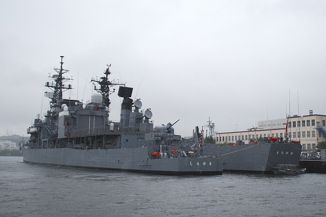 (左)先ず最初に見えてきたのが、MST463掃海母艦「うらが」。 (右)艦尾には掃海ヘリが使用する掃海具を収納するウェルドックの扉がある。 MH-53E掃海ヘリに対応した広い飛行甲板を有している。 (左)護衛艦隊司令部前の埠頭には、DD123護衛艦「しらゆき」とDDG170ミサイル護衛艦「さわかぜ」がメザシで接岸していた。 「しらゆき」は海保観閲式に海自代表として参加予定だった艦。「さわかぜ」は現在の護衛艦隊の旗艦。 (右)「しらゆき」の向こうに、除籍されて現在は標的艦とされている先代の護衛艦隊旗艦「たちかぜ」が見えた。 (左)海保の船溜まり。 画面右奥には原子力船寄港時の放射能測定に使用される、放射調査艇MS01「きぬがさ」らしき船も見える。 (右)海自の試験艦ASE6101「くりはま」。 (左)遊覧船は、除籍されたミサイル護衛艦「たちかぜ」の側へ…。 艦尾のMk.13ランチャーや艦首のアスロックランチャーはそのまま残っているようだが、5インチ砲の砲身や20mmCIWS等と一部装備は取り外されているよう。 (右)標的艦とされているため、船体には測定用のタテジマが1m間隔で入れられており、所々に目盛りのような書き込みも見られる。 更によく見ると艦番号「168」を消した跡も見られる。 除籍後この姿なって既に2年が経過しているが、遊覧船のガイドさんのお話によると5月(つまり今月)に、遂にと言うかとうとうと言うか、標的艦としての「その時」が来るそうです。 (左)LCU2002輸送艇2号 離島や沿岸への輸送を目的とした船。船首にランプドアを装備。 (中)AS405潜水艦救難母艦「ちよだ」。 (右)船体中央部に置かれているPTC(水中エレベーター)。DSRV(深海救難艇)は艦内の格納庫に収まっているようだった。 (左)「さわかぜ」と「しらゆき」を前方から…というか、遠慮気味に遠巻きにしていた米軍の艦の時とは違い、自衛隊の艦にはガンガン接近してゆきます(^。^;) (右)帝国海軍が掘削した新井掘割を抜けて吉倉地区へ戻る。その先には先代の「しらせ」が… (左)ASY91特務艇「はしだて」とYDT03水中処分母船3号。 「はしだて」は迎賓艇としての機能の他災害派遣にも対応できる。 水中処分母船はその名のとうり水中処分隊の母船として使用される船。 (右)AGS5103海洋観測艦「すま」。 (左)除籍された先代の砕氷艦「しらせ」。 艦名は艦番号は消されずにそのまま残っていた。 (中)除籍された艦の常で喫水が上がっているため、幾多の氷との闘いを経てきた艦首付近を見ることが出来た。 (右)手前から、DD101護衛艦「むらさめ」、DD111護衛艦「おおなみ」。 (左)左から、DD110護衛艦「たかなみ」、DDG171ミサイル護衛艦「はたかぜ」、DD107護衛艦「いかづち」。 (右)最後にAOE425補給艦「ましゅう」。 …と言う事で、見ることのできる艦艇の頭数で割ると恐らく日本一コストパフォーマンスに優れた(トン数で割るともっと大変なことに)遊覧船の航海はこれにて終了。 惜しむらくは、DD102「はるさめ」が居なかったので、春雨に煙る「はるさめ」と言う写真が撮れなかった事?!(^。^;)(春雨と言うには些か強い降りでしたけどね)。 この後は一旦東京まで戻り、微妙に残っていた帰りの新幹線までの時間を潰した後帰還しました。 最後になりましたが、当日お世話に成った皆様ありがとう御座いました。 |