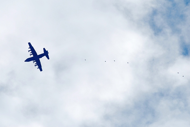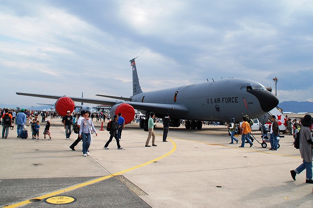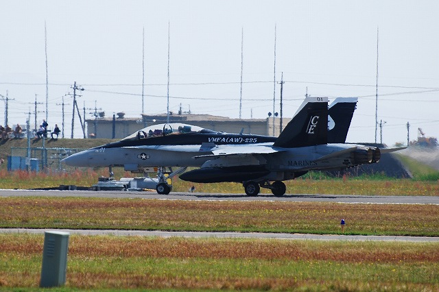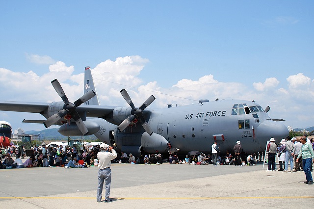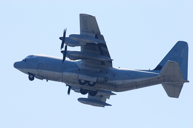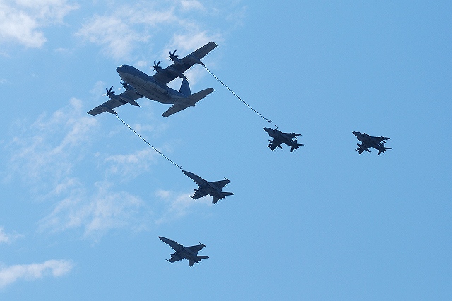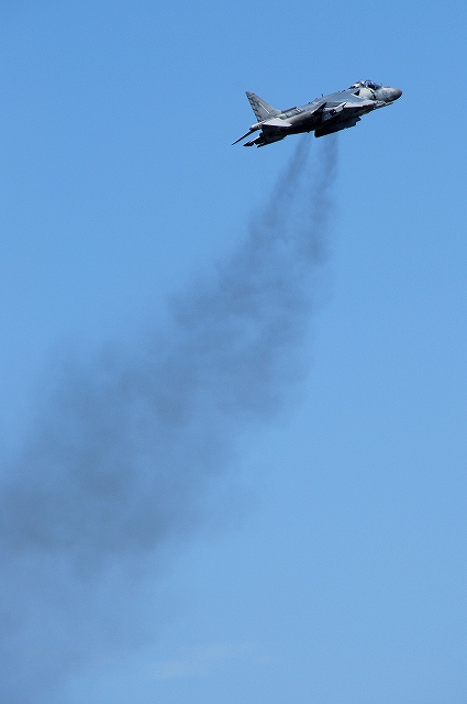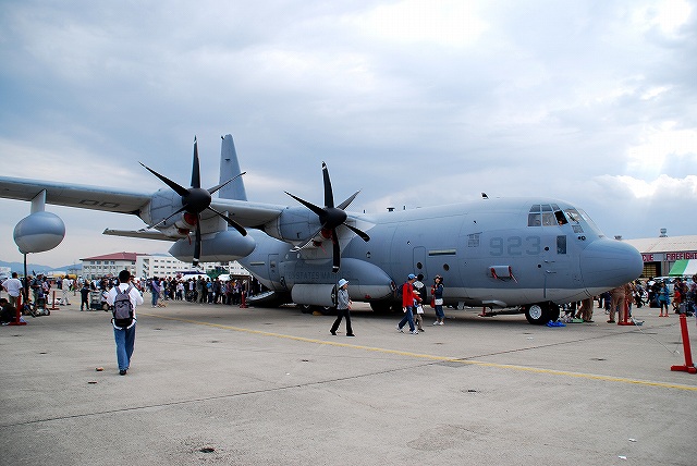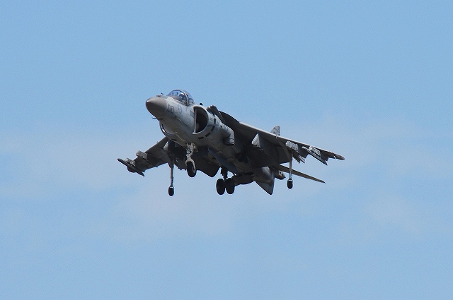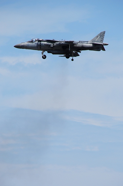 レポート第一回目は飛行展示編です。 (左)先ず最初に、6名の海兵隊員によるパラシュート降下が披露された。 (中)うち2名は日米の国旗を吊り下げて降下。 (右)パラシューターのプラットフォーム役を務めていたのは、米空軍の特殊作戦機MC-130Hコンバットタロンだった。 (左)つづいて海兵隊機による飛行展示、KC-130Jによる短距離離陸。 J型は6枚プロペラを装備するなどしたC-130の改良型。 (中・右)ハイスピードローパスを実施するVMFA(AW)-225のF/A-18Dホーネット。 主翼の後方にショックコーン(とは違うらしいけど)が出来かかっている(というか消えかかっている)。 (左)各機による空中給油デモ。(実際には接続していないよう) (右)燃料をダンプしつつ旋回するAV-8Bハリアー (左)着陸したVMFA(AW)-225「バイキングス」のF/A-18Dホーネット。 黒を基調としたフルカラー塗装の機体が飛行していた。 (右)着陸の為編隊を解くVMFA(AW)-242「バッツ」のF/A-18Dホーネット。 (左)新田原基地より飛来し、フライバイを実施した空自のF-4EJ改ファントムII。 (右)岩国より離陸しフライバイを実施した海自のUS-2参号機。 量産型初号機でもある同機は、ダークブルーと白の洋上迷彩を纏っている。 AV-8Bハリアーによる、垂直離着陸やホバリングを主体とした「レベルIIIデモ」が実施された。 築城基地より飛来した空自F-15Jイーグルによるフライバイ。 展示飛行のラストは各デモチームによる曲技飛行。 (左)太平洋空軍デモチームによる展示飛行。 使用機材は三沢基地のF-16C。 (中)エアロックの展示飛行。使用機材はピッツS2。 (右)お馴染ブルーインパルスも登場。 それまでは青空が広がっていた岩国基地上空ですが、飛行展時終了直後から雲行きが怪しくなり、程なく雷雨に見舞われ最後まで残っていた観客は大粒の雨の中の撤退を強いられました。(勿論ワタシも(^。^;)) つづく。