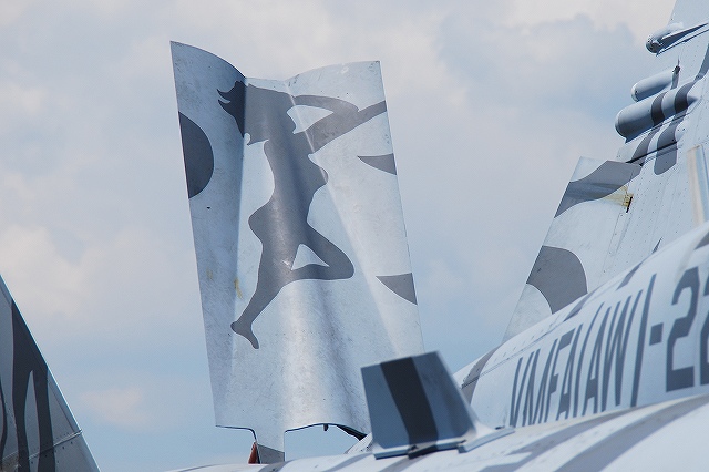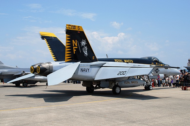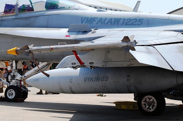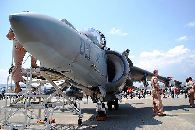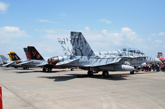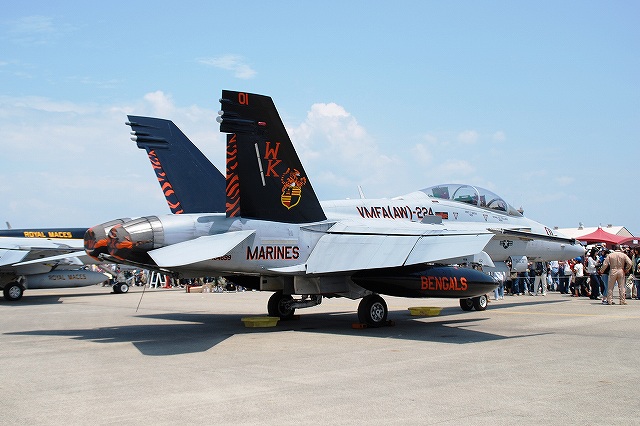 × [PR]上記の広告は3ヶ月以上新規記事投稿のないブログに表示されています。新しい記事を書く事で広告が消えます。 地元の海兵隊機を始め、陸海空軍の各種機体が展示されていました。 VMFA(AW)-224「ベンガルズ」のF/A-18Dホーネット。 部隊名に「(AW)」すなわち「全天候」を冠している飛行隊は複座タイプのホーネットであるD型を装備している。(と言うか今回単座タイプであるC型は見かけなかった) (左)#00はロービジ塗装ながら機体全体にトラ縞を配した派手な塗装。 この機体は機首にATARS(新型戦術機上偵察システム)を搭載している。(他にも搭載している機体が幾つか見られた) (中)わざわざエアブレーキを立てていたので、何かあるなー、と良く見てみたらこんな絵が描かれてました(^。^;) (右)ベンガルズの#01はフルカラーの塗装を施していた。 (左)VMFA(AW)-242「バッツ」の#01。 尾翼に大描されたコウモリのマークの他、各種レタリングのフォントも独特のものだった。 (中)VMFA(AW)-225「バイキングス」の#07。 ノーマルなロービジ塗装を施した機体。 (右)左翼端には新型のサイドワインダー(赤外線誘導の空対空ミサイル)、AIM-9X(の模擬弾)と思われるものを装備していた。 (左)地上展示機エリアから少しはなれた場所では、人海に埋もれるように2機の「バッツ」所属機が展示されていた。 (中)当該機体には各種弾薬が吊るされていた。 写真は高抵抗爆弾(の模擬弾)。 投下後に尾部が傘状に開き大きな空気抵抗を受け急減速しつつ落下する事で、低空攻撃に於ける爆弾炸裂時に自機へ被害が及ぶのを防ぐ爆弾。 (右)JSOW(シェイソウ)。 GPS誘導のクラスター爆弾で、投下後に翼を展開し滑空する。 この機体は黒を基調としたフルカラー塗装を施されていて飛行展示にも参加しており、他の飛行展示参加機同じく、エプロン地区の滑走路よりに駐機されていた。 VMA-211「Wake Island Avengers」のAV-8BハリアーII 「ウェーク アイランド アヴェンジャーズ」は、強襲揚陸艦「エセックス」に搭載されているハリアー飛行隊。部隊名は「ウェーク島の復讐者」の意。 (左)地上展示機エリアに居た#03はコクピットの公開をしていたので、「形式写真」的な写真を撮るのは困難だった。 (中)エプロン地区の滑走路よりに、ブルーインパルスを背景に駐機していた#04。この機体は「レベルIIIデモ」の予備機だった模様。 先の#03とこの#04は機首にAPG-65レーダーを取り付けた改良型で、「B+」と呼ばれる。 (右)こちらはレーダーを搭載していない原型のB型。 B+型と比べ機首が短いのがわかる。 午前中の空中給油デモなどに参加した機体のようで、エプロン地区の滑走路よりに居た。 海兵隊のKC-130J空中給油機 (左)C-130Jはエンジンの換装や6翅プロペラの装備などが行われたC-130の改良型で、KC-130Jはその空中給油機タイプ。 (右)主翼下に装備された給油ポッドと、そこから伸びる先端に漏斗状の給油口のついたホース(ドローグ)。 プローブアンドドローグ方式は構造が簡易なため海軍機に多く見られる給油方式で、ドローグに給油を受ける側の機体に装備されたパイプ(プロープ)を差し込んで給油を行う。 米海軍からの参加機。 (左)VFA-27「ロイヤルメイス」のF/A-18Eスーパーホーネット。 (右)HSL-51ウォーローズのSH-60Bシーホーク…かな? 一般公開エリアから少し離れた所に居た。機首にはFLIRを装備しているよう。 米空軍のF-16Cファイティングファルコン (左)地上展示機エリアには、在韓米軍群山基地より飛来の機体が展示されていた。 テイルレターの「WP」及び狼のイラストは、部隊の愛称「ウルフパック(狼の群れ)」に因んでいる。 (中)そのうち1機にはスナイパーポッド(?)が搭載されていた。 (右)エプロン地区の滑走路よりには、三沢基地のF-16Cが駐機していた。 太平洋空軍のデモ機とその予備機だったよう。 (左)米空軍嘉手納基地より飛来のKC-135空中給油機。 (中)米空軍横田基地より飛来のC-130H輸送機。 主翼の陰には日差しを避けるために観客が密集している。 (右)米空軍横田基地のUH-1N。 つづく。 PR