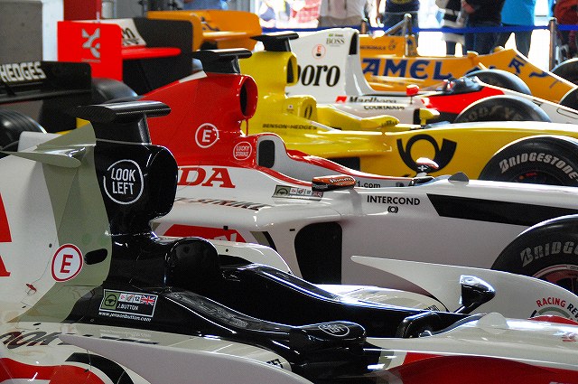 「第一回日本グランプリ再現パレード」参加車両の展示。 (左)当時のポスター (右)ポルシェ356A (左)フェラーリ250 SWB(手前) ポルシェ356B 2000GS(中央) (右)ジャガーEタイプ (左)ロータス23。第一回日本グランプリの優勝車両(の同型車?) (右)デモ走行後は、当時のレーシングスーツも展示されていた。 (左)もう一台ロータス23。 (右)当時の様々なグッズが展示されていた。 (左)ロータスセブンS2 (中・右)ロータス11 こちらは歴代ホンダF1マシンのコーナー (左)ホンダRA06。(手前) 説明のプレートによると、2006年のハンガリーGPにてジェンソン・バトンが自身初、ホンダ・ワークスとしては39年ぶりの優勝を果たし、F-1の表彰台で初めて君が代を流した時の車両だそう。 (中)BARホンダ005。2003年のジェンソン・バトン車。 (右)ジョーダン・ホンダEJ12。2002年のマシン。 (左)マクラーレン・ホンダMP4/6。1991年のアイルトン・セナ車。 (中・右)ロータス・ホンダ99T。1987年の中島悟車。 1987年は、中島悟が日本人初のF1フル参戦を果たし、鈴鹿でのF1日本GPが開始され、TVによるF1全戦の中継放送が開始されたという、日本のF1史では記念すべき年でもある。 つづく。 オマケのイベント情報 ・4/25-26 掃海艇公開@名古屋港 入港艦艇:すがしま・のとじま・つのしま その他詳細はリンク先をご確認ください。 ※情報提供頂いた方有り難うございました 写真は遊園地内のミニカーショップ前に展示されていたホンダF-1。 BAR001のボディに、RA108(2008年仕様)のペイントを施した展示用の車両。 (左)GPスクエアには、4/18-19に開催される「鈴鹿2&4レース」関連で、JSB-1000とスーパーGTの展示が有った。 (中)スズキGSX-R 1000 (右)ホンダCBR1000RR (左)ヤマハYZR-1000 (右)カワサキZX-10R (左)ニッサンGT-R (中)ホンダNSX…の写真をちゃんと撮ってなかった!(爆) (右)レクサスSC430 ここからはピットに展示されていた車両。 (左)前出のレクサスと同じペトロナスカラーだけど、こちらはスーパー耐久仕様のBMW Z4 Mクーペ。 (中)デモ走行のため整備中のホンダRA272 (右)同じくウイリアムズ・ホンダFW11 今年からのフォーミュラーニッポンのマシンFN09。 (中)シャシーはワンメイクだがエンジン(3400cc V8)はホンダとトヨタの2社が供給。 このチームルマンのマシンはトヨタエンジンを搭載している。 (左)デモ走行のため待機中のホンダCBR1000RR (右)当日開催されたワンメイクレースに参加のシビック。 パドックの中央に新設された「センターハウス」内に展示されていた車両。 (左)NSXのマーシャルカー (中)8耐用のマーシャルバイク (右)マクラーレン・ホンダNP4/5B つづく。 |