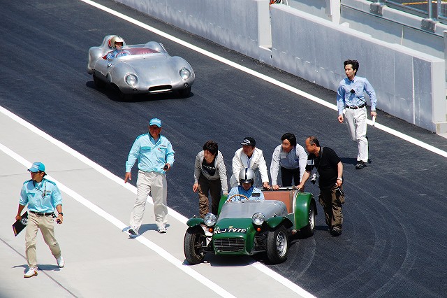 マーシャルカー(左)とセーフティーカー(右)。どちらも従来からのものかな? 第一回日本グランプリ再現パレード (左)ロータス23。ドライバーは第一回日本GPの優勝ドライバーで後のロータスF-1チームの監督であるピーター・ウォー氏。 (右)もう一台ロータス23。 (左)ロータスセブンS2はトラブルにより残念ながら走行キャンセル。 (右)ロータス11 (左)ロータス23を先頭にデモ走行 (中)ポルシェ356B 2000GS (右)ジャガーEタイプ 当日はシビックのワンメイクレースの公式戦も行われた。 午前中に行われた予選に向けてピットアウトして行く各車。 (中)#8を駆るのは、今回特別参加の鈴木亜久里「選手」。 つづく。