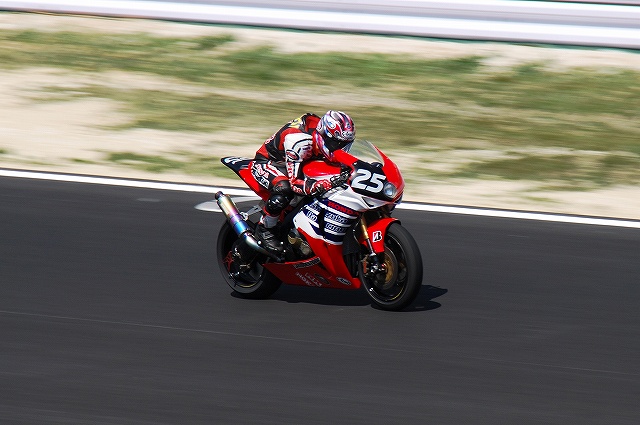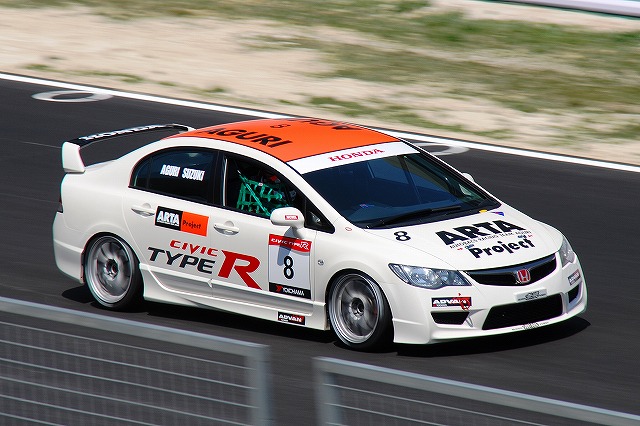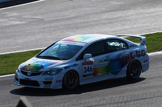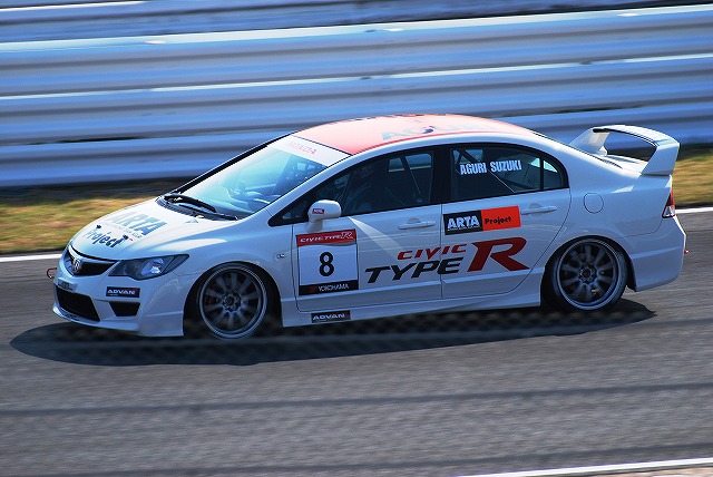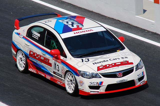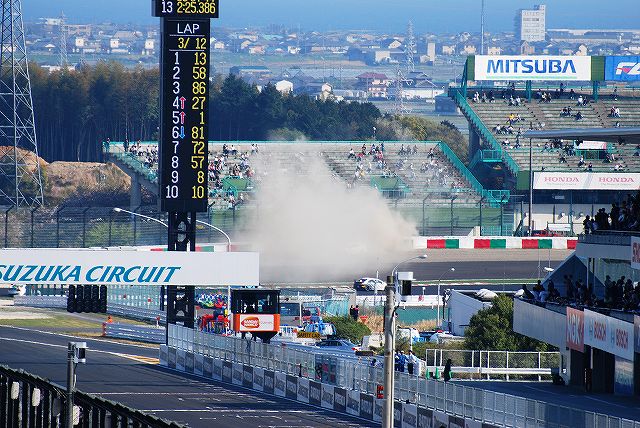 地元の2輪チームによるデモ走行も実施された。 ピットアウトしてゆく各車。 数周のデモ走行だったので、撮影のカンが戻る前に終わってしまった…(^。^;) 鈴鹿サーキットのレーシングスクール「SR-F」卒業生によるエキシビションレース。 お待ちかね、往年のF1マシンによるデモ走行。 (左)1965年のメキシコGPでホンダ…と言うか日本車でF-1初優勝を飾ったホンダRA272。ドライバーは中島悟氏。 (右)ウイリアムズ ホンダ FW11 1986年のマシン。ドライバーは鈴木亜久里氏。 (右)デモ走行を終えグランドスタンド前に停車。 シビックインターシリーズ 第2戦/西日本シリーズ 第2戦(シビックのワンメイクレース)の決勝は最終コーナーのスタンドへ移動し撮影。 (右)1コーナーでコースアウトするマシンも… (左)鈴木亜久里「選手」は予選10位でスタートし、8位で完走。お疲れ様でした。 (右)レースを終えてピットに戻ってきた鈴木亜久里選手。 ヘルメットを外し窓も開けてすっかりリラックス。 最後になりましたが、当日現地にてお世話になった皆さん有り難うございました。