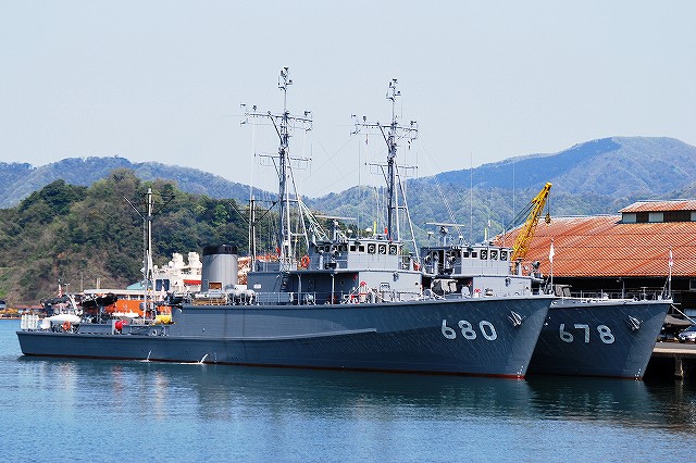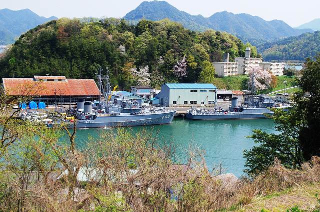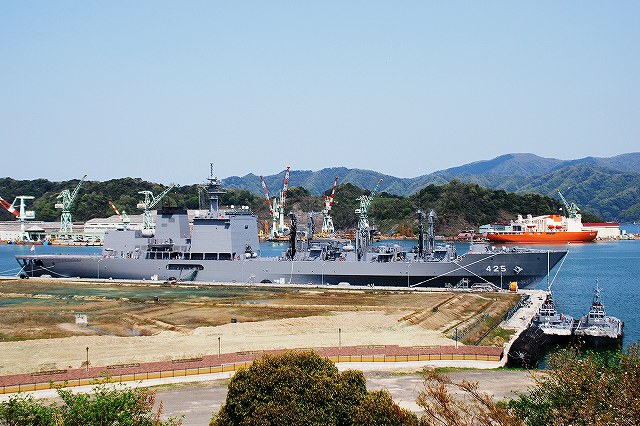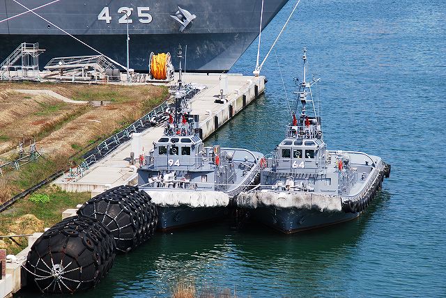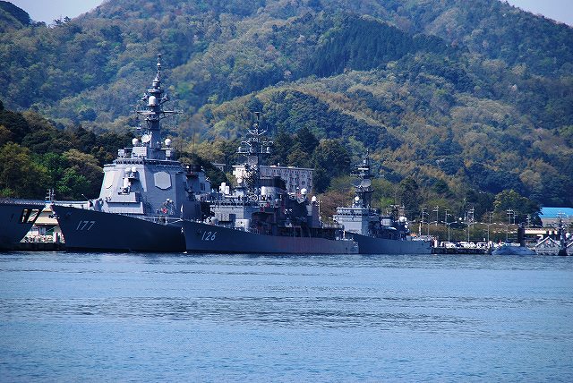 レポート第一回目は基地周辺から撮影した写真です。 先ずは前島埠頭より海自舞鶴基地等が有る舞鶴東港の様子を撮影。 (左)休日は釣り人で賑う埠頭の直ぐ沖のブイに、今年3月に除籍された護衛艦「はるな」が繋がれている。 (中・右)艦名や艦番号は塗りつぶされ、マスト上のアンテナ類や主砲の砲身等一部の装備品は既に取り外されている。 また、国旗及び自衛艦旗も掲揚されない。 (左)引退した「はるな」の向こう側に、就役を目前にした「しらせ」が居る。 (右)ユニバーサル造船側の埠頭にて、5月の引渡しを前に建造の最終段階に有ると思われる「しらせ」。 北吸桟橋の海自艦艇群 (左)先頭に居るのは補給艦AOE425「ましゅう」 (右)その後方にはDDG177「あたご」等の護衛艦の他…潜水艦も居る見たいやなー 舞鶴市役所裏手の船溜まりでは海自掃海艇を見ることができる。 (右)MSC680「ながしま」とMSC678「とびしま」 (左)その前方には除籍された掃海艇「あわしま」が居た (右)「はるな」同様艦名と艦番号が消され、艦首の20mmバルカン砲など一部装備品が取り外されていた 基地隣接の文庫山山頂付近より撮影。 (左)北吸桟橋に接岸していた護衛艦「あたご」 (中)同じく補給艦「ましゅう」と「しらせ」 (右)さらにタグボート (左・中)沖止めされている「はるな」 (右)掃海艇の様子も見られる。 つづく。