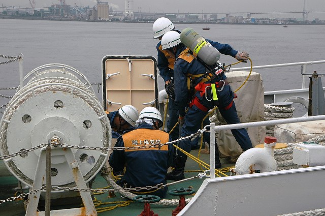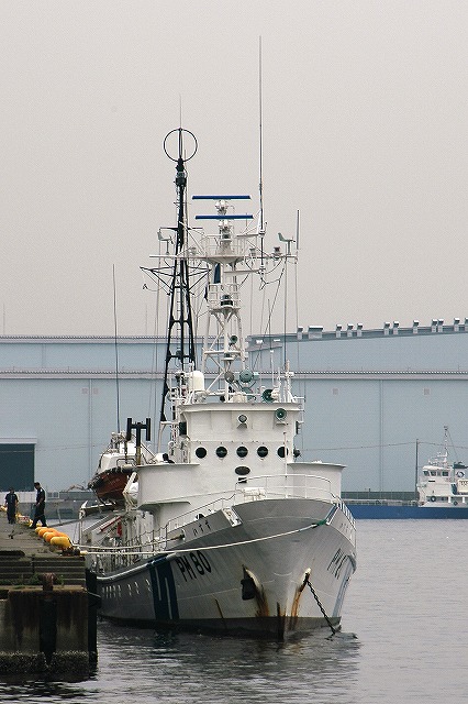 (大半の写真が再掲だと思われますので悪しからず…) 鳥羽港に接岸中の「いすず」。 伊勢湾フェリー船上より05/02/28撮影。 ここからは、名古屋港にて06/07/03に撮影した「いすず」の展示訓練の様子を。 「いすず」は救難強化巡視船に指定されていた。 (左)船橋を障害物に見立ててロープ降下。 船橋が汚れないように、緑色のシートが設置されている。 (中)船内に進入し要救助者を救出。 (右)ストレッチャに固定した要救助者を引き上げている。 (左)訓練が終了し、シートが取り払われた所でもう一度撮影。 (中)船首の銃座。 12.7mm重機関銃を装備する事ができた。 (右)後方より。 遊覧船より撮影。 PM80いすず 総トン数:503t(旧) 全長:63.4m 主機/出力:ディーゼル2基2軸/3000ps 速力:18kt 武装:12.7mm機関銃1基 最大搭載人員:34名 350t型(びほろ型)巡視船の8番船として1976(昭51)年に就役。 解役されるまでに約50万kmを航行し、海難救助に720回出動、366名を救助したそう。 本投稿及び添付した写真は私ちゃりんこジョニーの著作物であり、他のサイト・掲示板及びブログ等への無断転載を禁じる。 特に、かつては「中華人民共和国萬歳」現在は「異常な愛情」と言う名のパクりブログを運営している、支那人窃盗常習犯sunbinsiftに対しては強く抗議する。