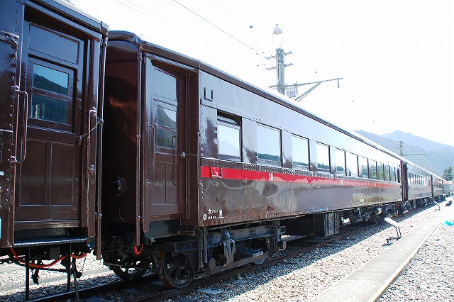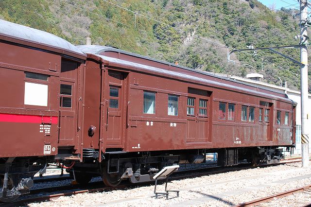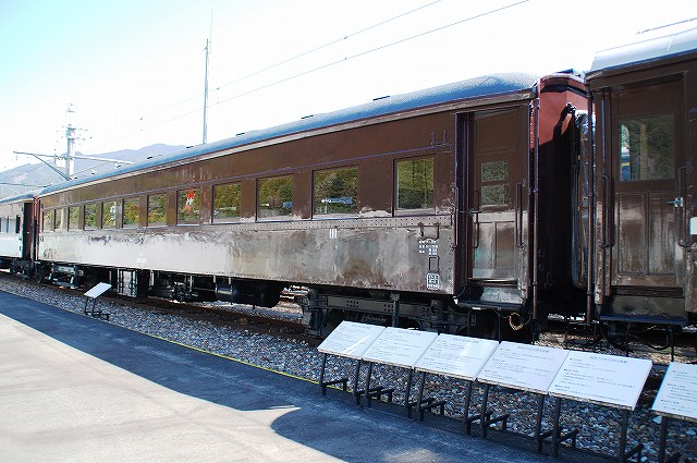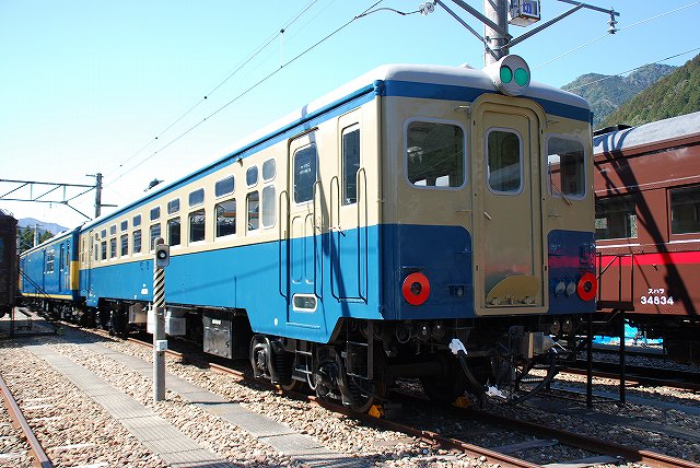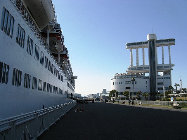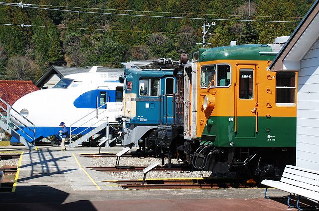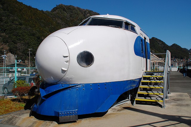 …んが、ガーデン埠頭の西側先端ギリギリに接岸していたので、携行していたコンデジでは入りきらず。 ならば…と、船尾の方へ回るも、最後部は立入り禁止区域にはみ出しており、全体像の撮影はかなわず。(^。^;) ちなみに飛鳥IIは全長:241m 総トン数:50142t 客室数:400室/乗客数:800名 乗組員数:約470名 対岸の埠頭より撮影。 結局の所今回は、タイトルが言いたかっただけです(^_^;) イベント情報 ・4/5 日米親善よこすかスプリングフェスタ 佐久間レールパークは、飯田線中部天竜駅に併設されたJR東海の博物館。 1991年に中部天竜機関区の跡地を利用して開設されたが、金城ふ頭に2011年に開設予定のJR東海博物館(仮)へ展示車両の大半を移転させるため、今年11/1の公開日を最後に閉園されることが決まっている。 …と言うことで、この日は久しぶりに(前回来たのは10年以上前かも?)佐久間レールパークへと行って来ました。 東海道本線と飯田線を乗り継いで現地へと向う。 (左)豊橋まで乗ってきた117系8連の区間快速。豊橋駅で7分ほど停車したのち浜松へと向う。 (右)飯田線ホームにて。 長年119系(右側)が主力で活躍していたが、313系(左側)の投入も始まっている。 117系119系ともに、新型車の増備にともない平成22年度より淘汰が始まるそう。 佐久間レールパークに到着。 目玉は保存されている車両たち。 屋外展示にもかかわらず定期的に手入れが為されているらしく、各車とも良好な状態で保存されているように見受けられた。 0系新幹線の前頭部 (右)車内…と言うか運転台は公開されていた。 ED62形直流電気機関車 昭和33年から34年にかけて製造されたED61形電気機関車を飯田線用に改造した形式。 (中)本形式の萌えポイントは、ローカル線規格の飯田線にて運用するため、軸重(車輪1つごとにかかる重さ)軽減を目的として増設された中間台車。 (左)オロネ10形2等寝台車。 昭和30年より製造され、車体軽量化技術の基礎を築いた10系客車の2等寝台車。 今日の寝台車のベースになった車両でもある。 (中)マイネ40形1等寝台車。 昭和23年に新造された寝台車。冷房装置の他、2人用個室寝台も用意されていた。 (右)1等車を示すクリーム色の帯に描かれた「J.G.R.」は「Japanese Government Railways」の略で、進駐軍専用車に対し日本の運輸省所属の車両である事を示すもの。 (左)オハ35形3等客車 (中)オハフ33形3等緩急車 どちらも昭和14年より製造された代表的な3等客車(普通車)。 オハフ33形のほうは車掌室が付いている。 3等車には戦前は赤帯が巻かれていたが、戦後赤帯は廃止されている。オハフ33は戦前の、オハ35は戦後の状態を再現している。 (右)スニ30形荷物車。 昭和2年から7年にかけて製造された31系客車の荷物車。 古めかしい二重屋根構造が特徴的。 昭和12年、京都大阪間の電化に際して、急行電車用に登場した電車。当時世界的に流行した流線型を取り入れたデザインで、「流電」と呼ばれていた。 晩年は飯田線で使用されており、レールパーク開設時は晩年の姿で保存されていたが、近年塗装の変更/スカートの取り付け等が実施され登場時の姿に近付けられている。ただし、乗務員室扉や通風器など現役時代に改造されたまま残って居る箇所も見受けられる。 「急電」用に製造されたモハ52形は優れた高速性能を持ち、後に登場する特急型電車の礎になった車両といえるので、新幹線へと至る「鉄道の高速化」がテーマと言うJR東海博物館において、結構重要なポジションを占める車両と思われるのだが。JR東海博物館への移設に際し、現役中「改造」された箇所と近年「復元」された箇所の整合性が、どう処理されたりされなかったりするのかチョット興味深い所。 (左)連結面の塗り分けはこんな感じ。 クリーム/茶の「関西急電色」は、京阪神間の新快速用として国鉄末期に登場し、後に名古屋地区にも投入された117系電車にも引き継がれた。(…が、現在はその多くが塗り替えられている) (中)ヘッドライトも埋め込み形に「復元」されている。 前面ガラスには「急行」の種別表記が見られる。 「急電」は今日の新快速にあたる種別で、京都-大阪間を36分で走破したそう。 (右)連結器には自連用のアダプターが付いていた。 国鉄~JRの車両のうちも電車は密着連結器、それ以外(機関車/客車/貨車/気動車)は自動連結器と連結器の種類が異なるため、電車を機関車で牽引して回送する時など種類の異なる連結器同士を繋ぐ場合は、このようなアダプターを介する必要がある。 (左)「流電」とスニ30の間にはキハ181-1が居る筈だったが、整備中なのかこの日は見られなかった。(説明の看板のみ置いてあった) (中)キハ48000形3等ディーゼル動車。 昭和28年より製造された10系気動車の両運転台バージョン。後に形式名が改称されキハ11形となる。 本車は国鉄から茨城交通に譲渡され、同鉄道で廃車後レールパーク入りしている。 (右)キハ48036(左側)とクヤ165-1(右側)の連結部分。 自動連結器-アダプター-密着連結器…とアダプターを介して異なる種類の連結