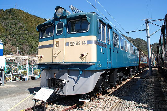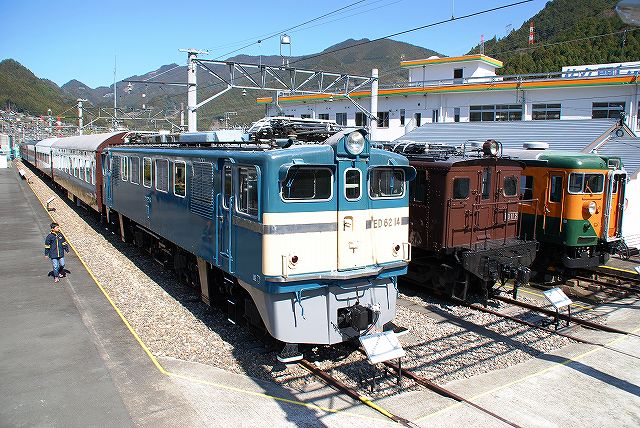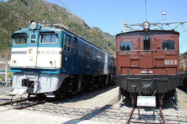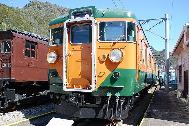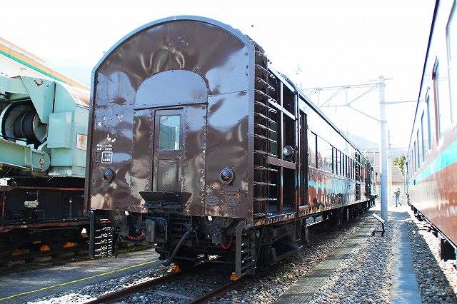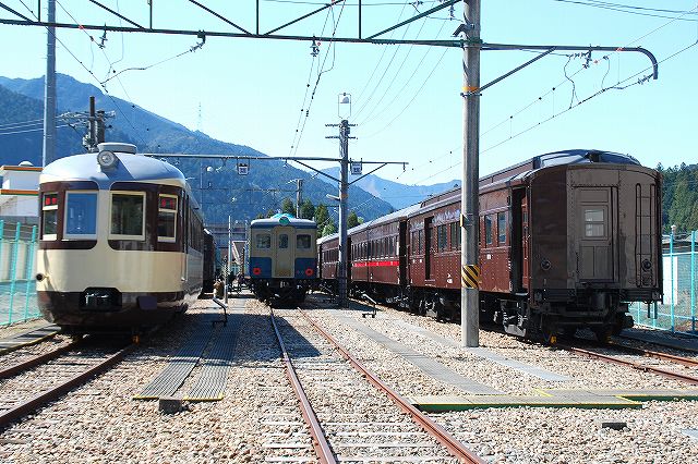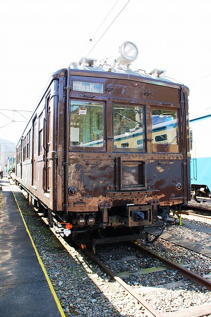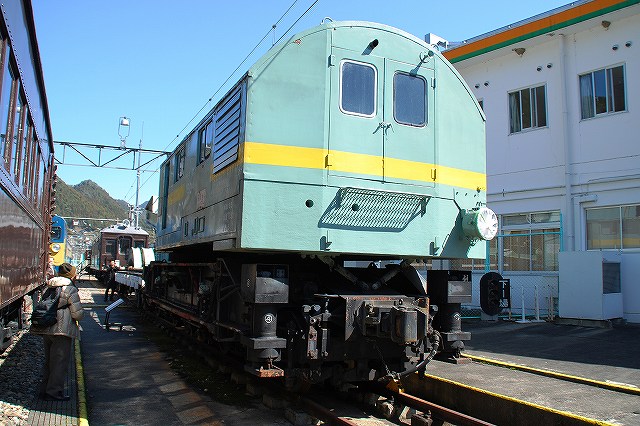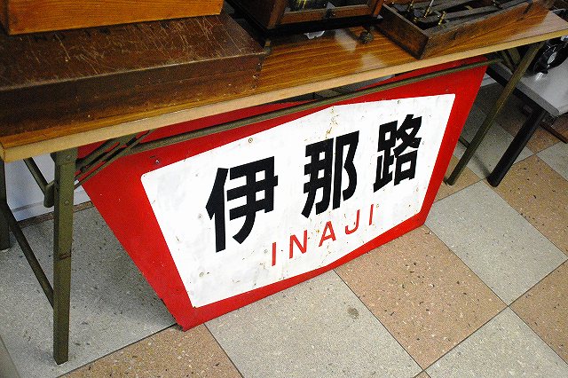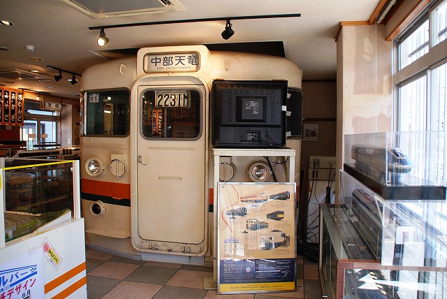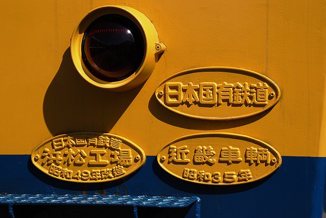 165系急行電車の食堂車サハシ165形を改造し、運転士教育用の教習車とした車両。 (右)経歴をしめす銘板。 オヤ31建築限界測定車 新線建設等の際に周囲の建築物が車両と干渉しないか確認するための車両。 (中)旧式化した客車を改造している。 (右)使用時は車体の周囲に配置された測定用腕木を転張する。その様子からついた愛称が「オイラン車」 ED11形直流電気機関車 東海道本線電化に際し、サンプルとして大正12年に輸入された電気機関車。晩年の本機は国鉄浜松工場の入れ替え機として使用されていた。 (中)「田」の字型の側面窓が萌えポイントの一つ(^。^) (右)側面に取り付けられた銘板。1922年10月米国ゼネラル・エレクトリック製とある。 昭和37年から大量に増備され全国の直流電化区間で使用された(と言うかまだ使用されている)111/113系電車の「初号機」。 ソ80形操重車 事故復旧等のために使用するクレーン車。クレーンには65tの吊り上げ能力がある。 自走は出来ないが、動力としてディーゼルエンジンを搭載している。 (右)クレーンを支える控車として、チキ6132を連結している。 クモハ12形直流制御電動車 首都圏の電車運転区間拡大に伴い、昭和6年に製造された車両。 両運転台構造だが… (左)片方のエンドは貫通路つき (中)反対側のエンドは非貫通構造になっている。 (右)車内も公開されていた。床や壁は木。 (左)入り口のドアに、何気にマニアックなステッカーが貼ってあるし…(^_^;) (中)中部天竜駅で使われていた、ポイントなどを操作する装置。 (右)急行伊奈路のヘッドマーク (左)113系(115系かも?)の運転台を利用したシュミレーター。 ちなみに113/115系にJR東海色のものは実在していない…と思う。 (中)鉄道模型レイアウトもある。 (右)タブレット閉塞機など (左)特急ひだのヘッドマーク。 文字だけの古いタイプ。 (中)南紀とひだのヘッドマーク。 こちらは絵入りタイプ。 (右)屋外にも懐かしいヘッドマークが展示されていた。