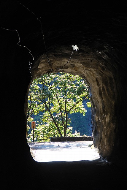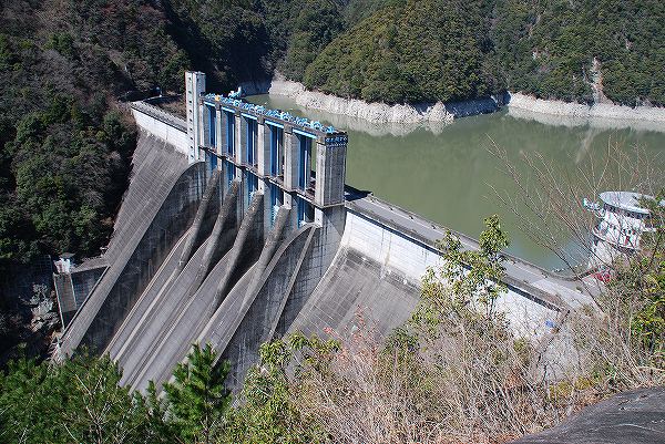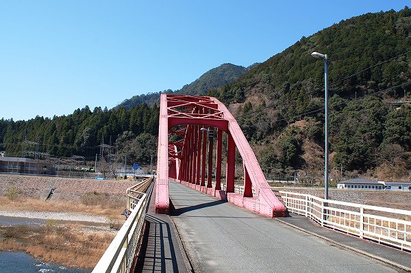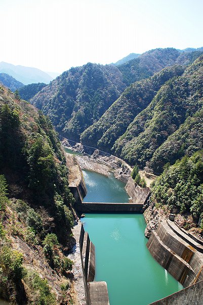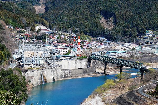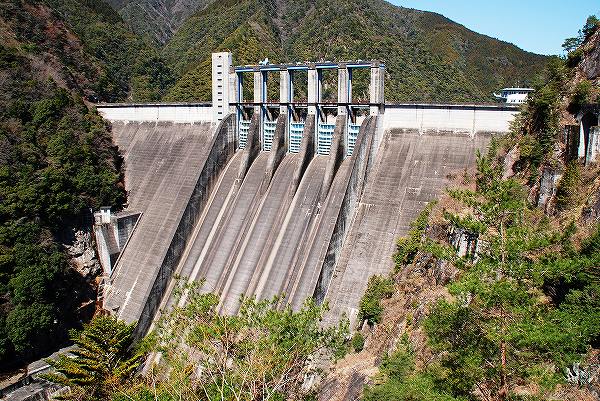 (地図を参照しながらお読みいただくとわかりやいすカモ?) (左)スタート地点は佐久間レールパークに併設された(逆だ逆!)中部天竜駅。 (右)駅前からはバスも発着しているのだが、ダムへは行かないので(イベント時等はダム行きのバスも有るらしい)徒歩にて出発! C= C= C= C=┌(^ .^)┘ (左)中部大橋にて天竜川を渡る。 (右)渡った先が中部交差点。「中部」と書いて「なかへ」と読むらしい。 ちなみに駅名は「ちゅうぶてんりゅう」と読む。「中部大橋」が「なかへ」か「ちゅうぶ」かは調べていないので不明(^_^;) (左)中部交差点付近にはこんな施設がが有る。 日本の商業用電力の周波数は、概ね天竜川を境として西側が60KHz東側が50KHzに分かれており、この境界を越えて電力を融通する際に周波数を変換するために作られたのがこの佐久間周波数変換所。この種の施設が他に2箇所有るそう。 (右)中部交差点から山へ登る県道へと少し入ったところより、施設の様子を見ることが出来る。60KHzと50KHz、2組の送電線(三相交流なので各3本ずつある)が引き込まれているのがわかる。 (左)更に道を進むとこんな看板が有った。 この先県道はオメガ(Ω)カーブにて山を登っているのだが、この「近道」を使えば当該区間を直線的にショートカットする事ができる。…ただし僅かだけど急な階段を上る必要が有るけどナー(^_^;) (中)佐久間レールパクや中部大橋を見下ろすポイントまで登ってきた。 (右)天竜川にかかる鉄橋に119系電車が差し掛かっている。 画面左手に見えるのは佐久間ダムよりの導水により発電している佐久間水力発電所。 東京/名古屋両方面に送電できるよう、その発電機は50KHz/60KHz両用機となっているそう。 (左)歩いているのは県道1号線。ダム建設のために整備された道路のよう。 (中・右)コース後半はトンネルが主体。 素掘りの状態にコンクリート(?)が吹き付けられた感じの壁面がなかなかワイルド。 ルート上には全般的に歩道は無いのだが、トンネル内はダム建設工事の際に設置されたベルトコンベヤの台座跡(?)が歩道の替わりになっている。(幅は4~50cm程かな?) (左)暫く歩くと、「←展望台」と言う表示がある。 (右)トンネルの横坑を抜けるとこんな絶景が広がる。 丁度お昼時で、この展望台には他に人もいなかったので、絶景を独り占めしつつ持参したコンビニのオニギリ等にて、贅沢なんだか質素なんだかわからない昼食をとる。 佐久間ダムの堤高は155.5m 堤頂長は293.5m。高度成長期を向え逼迫する電力需要に対応すべく、1953年から56年まで僅か3年の工期で建設された。 県道に戻ってダム本体の上を走る道路(天端)へ向う。…が高所恐怖症のワタシにとっては道の真ん中に立っていても怖い場所なので(先ほどの展望台は何故か平気だった)、撮る物をとったらソソクサと引き上げる。(^_^;) (左)見下ろすアングルも怖いけど、見上げるアングルでの撮影も結構怖い(^_^;) (右)ダムの天端より下流を望む。スミマセン、もう限界です(^_^;) (左・中)佐久間発電所への取水口。円筒状の建物が2棟あった。 (右)ダム本体を見下ろす位置にある佐久間電力館の展望台より撮影。 (左)もと来た道を下り、中部大橋の隣にかかっているつり橋(中部橋)にて中部天竜駅方面へと戻る。 (中)トンビ(?)を相手に対空射撃訓練(^。^) (右)佐久間ダムがあしらわれたマンホールのふた。 ・ご参考:佐久間ダムへの道 中部天竜駅から佐久間ダムまでは約3km程のようです。 本文にあるとうり歩道が有ったり無かったりのルートなので、徒歩移動の際は(歩行者は居ないと決め付けて走っている)自動車に充分ご注意を。また、写真の看板に有るとうり落石にもご注意の程を(具体的にどうしたら良いのかは知らないけどナー(^_^;)) トンネル内は一部照明が消えていて暗い所も有るので、反射材を用いた衣服等を着用していった方が良いかも? ルート上には両端の中部天竜駅及び佐久間電力間を除き、トイレや自販機等存在しないので、事前の「準備」は怠り無きように…。 また中部天竜駅前には売店や食堂はあるもののコンビには有りません。