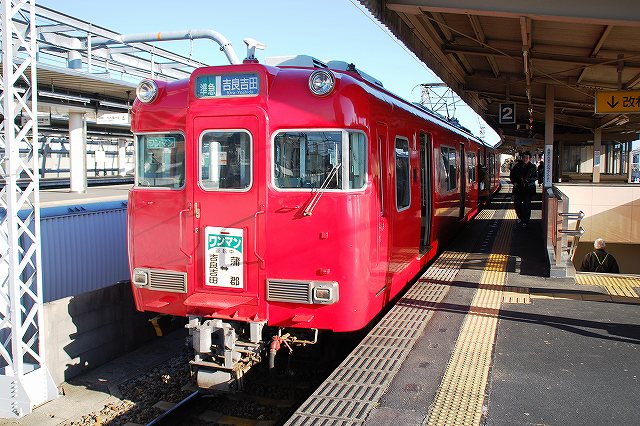 (左)新安城より名鉄西尾線に乗り換えて… (右)上横須賀駅にて下車。 以後は徒歩にていくつかのポイントを回ってみる。 ・華蔵寺 境内には吉良家の墓所が有り、御影堂では吉良上野介義央の木像(県指定文化財)を見る事が出来る。 ・花岳寺 (中)入り口の横にあった吉良義央の銅像。 全国的には忠臣蔵の悪役として知られる吉良上野介義央だが、地元では名君と言い伝えられており、農耕用の赤馬に乗り領地を見回る様子を象った銅像が各所に見られた。 (右)花岳寺の本堂は1684年の建築で、貴重な17世紀末の典型的臨済宗寺院の本堂として国の登録有形文化財に指定されている。 ・岡山陣屋跡 吉良家の館が有った場所。 (右)上空をB-747LCLが飛んでいった。 ・白瀬矗中尉のお墓 日本人で始めて南極に立ち、砕氷艦「しらせ」の間接的な名前の由来である白瀬矗中尉のお墓は、夫人が晩年をこの地で過ごした縁により、吉良町瀬戸の西林寺境内にある。 (左)お墓の周囲には南極大陸の地図等が作られてあった。 (右)由来を記した石碑の傍らにはペンギンの銅像が建てられてあった。 (左)現地の各ポイントは徒歩にて移動しましたが。通常の時期はレンタサイクルがあるそうです。(当日はお正月休みだった) 以前訪れた赤穂は、観光地観光地してい (右)と言う事で、上横須賀駅より再び名鉄電車に乗る。 次の目的地(?)は、路線の存続が取り沙汰されている名鉄蒲郡線。 (左)碧南-吉良吉田間の三河線「海線」は2004年に廃止されている。写真は吉良吉田駅の蒲郡線ホーム(以前は三河線用だった)から見た碧南方向の状況。 (右)吉良吉田駅よりの蒲郡線はワンマン仕様の6000系が使用されている。 (左)6000系@ワンマン仕様の車内。 運転席後部の一部座席が撤去され、料金箱が設置されていた。 (右)運転席にもワンマン運転用の機器が追加されている。 (左)三河湾の車窓風景を眺めつつ蒲郡へと向かう。 路線の存続問題が取り沙汰されつつある区間なので、残念ながら乗客の数はそれなりな感じだった…。 (右)蒲郡駅に到着。 方向幕の切り替え中でたまたま「準急」が出てるのは気にしない方向で…(^_^;) (左)蒲郡駅前には、アメリカスカップに参戦したヨット「ニッポン・チャレンジ」(1号艇らしいです)が展示されていた。 蒲郡市内には、竹島桟橋付近とラグーナ蒲郡に各一隻(2号艇と3号艇)ずつ「ニッポン・チャレンジ」が保存されているそう。 (中・右)蒲郡よりの帰路はJRを利用。 名古屋まで行くならば名鉄よりもJRの方が安くて速くて料金も安いのが、名鉄蒲郡線存亡の危機の原因の一つ。 117系使用の普通列車が来たので、快速より時間がかかるのを承知で乗車しマッタリと帰還しました。