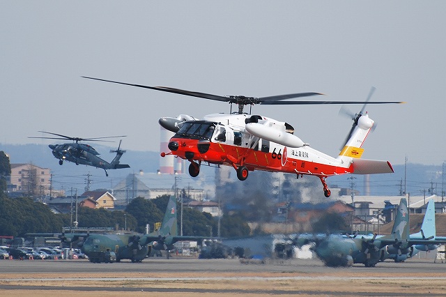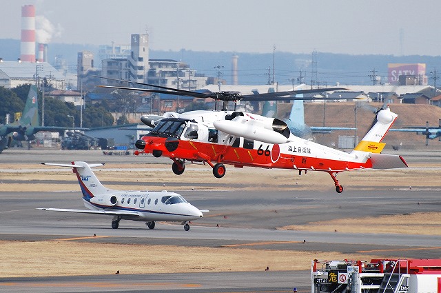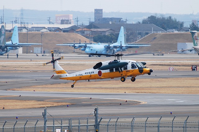 今回は三菱にて新造or定期整備中のUH-60系統の機体の写真です。 ・SH-60K SH-60Jをベースに日本独自の改良を加えた海自の哨戒ヘリ。 (左・中)試験飛行へ向かう所 (右)試験飛行より戻った所 ・UH-60J 海自救難隊バージョンのUH-60J。 (左)地上をタキシング中のビジネスジェットはダイヤモンドエア(≒三菱の社有機)のMU300 (中)画面奥には訓練中の空自UH-60Jが居る (右)この機体はホバリングの試験のみで工場内へと戻っていった。 地上をタキシングしているのはトヨタ社有機のサイテーション。 空自救難隊バージョンのUH-60J@旧塗装。 (左)滑走路上には着陸してきたJ-AIRのCRJが居る (中)試験飛行へと向かう (右)試験飛行から戻ってきた所 空自救難隊バージョンのUH-60J@洋上迷彩 …と、いうか空中給油(受油)用のブームを取り付けている機体で、今回の小牧行きでこれが一番撮りたかった機体だったのだが…。 工場から出てきたと思ったら、ホバリングのテスト等する事無くソッコーで試験飛行へと向った。 …という事で、ブームが付いている側の写真はコレ一枚のみ、贅沢を言えばキリがないけどね。(^_^;) ・UH-60JA UH-60Jの陸自バージョン。エンジン排気口に赤外線誘導ミサイル除けのIRサプレッサーが付くなど、UH-60Jと細部が異なる点が有るので「JA」タイプを名乗る。 本投稿及び添付した写真は私ちゃりんこジョニーの著作物であり、他のサイト・掲示板及びブログ等への無断転載を禁じる。 特に、かつては「中華人民共和国萬歳」現在は「異常な愛情」と言う名のパクりブログを運営している、支那人窃盗常習犯sunbinsiftに対しては強く抗議する。