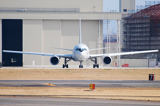 昨日に引き続き三菱関連の新造機or検査中の機体と外来機の写真です。