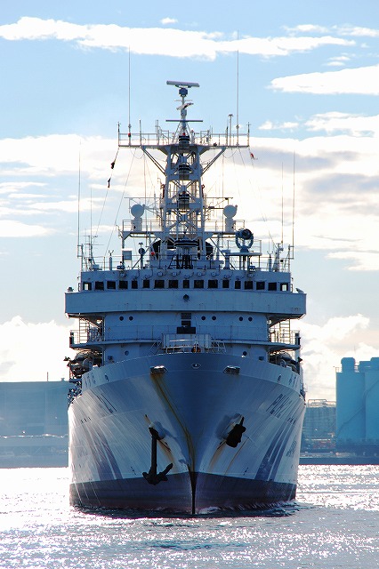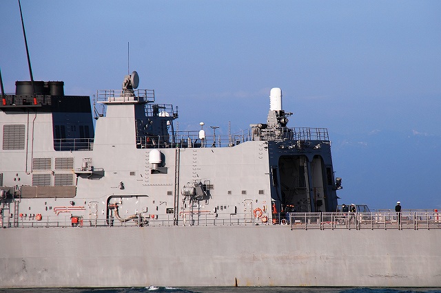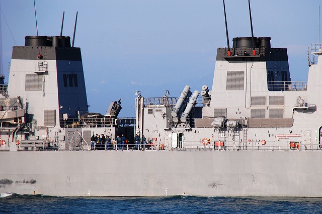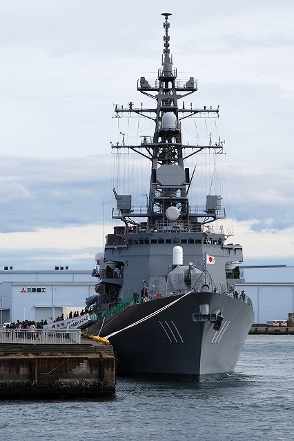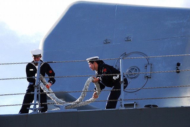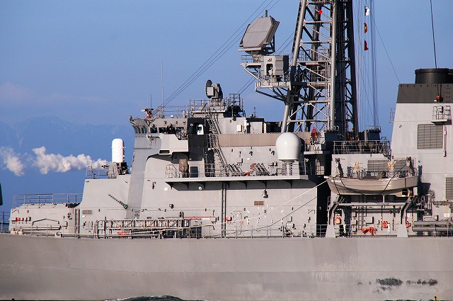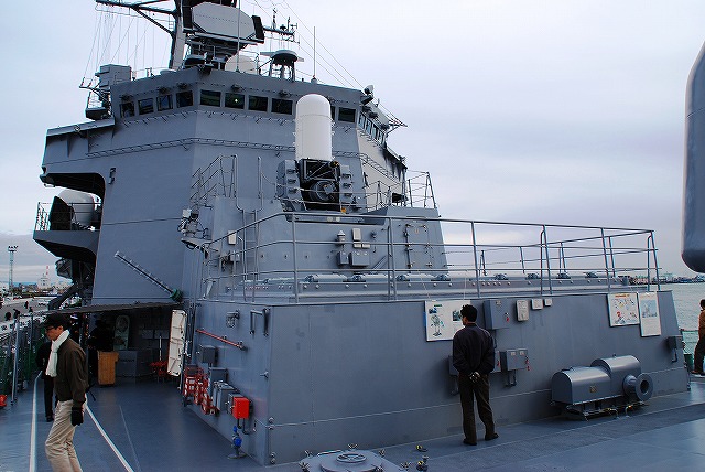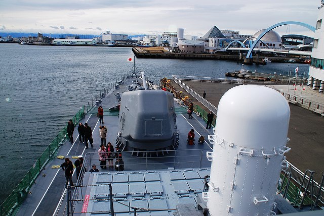 (左)見事に朝寝坊して、何時もの名古屋港ガーデン埠頭へ到着した時には既に接岸していた …最近こんなんばっかしil||li _| ̄|○ il||li (中・右)接岸に関連する作業は撮ることができた (左)付近の海上を警備していた愛知県警の「あおい」 (右)毎度おなじみ地本のパジェロ。 今回は「一般公開」されず、そのうち何処かへ行ってしまいました。 海保巡視船PLH21「みずほ」が出港して行くところが撮れた。 (左)搭載していたSH-60K哨戒ヘリを、一般公開のため飛行甲板へ引き出している。 (右)引き出されたSH-60Kを公園の一段高い場所より。 ・一般公開を撮影 時間をつぶした後、午後に実施された一般公開へ行って見る。 (左)「対岸」である名古屋港水族館側の埠頭より正面気味に撮影… 既に一般公開が始まっており埠頭へと列が伸びている。 (中)今回は艦橋も公開されてした。 写真は艦橋へ向かう途上で撮影した「おおなみ」の時鐘。(時鐘のある旗甲板付近は非公開だった) (右)艦橋内部はこんな感じ。 (左)艦橋より艦首方向を撮影。 (右)艦橋後部にあった戦闘体勢示盤 (左・中)舵輪付近はこんな感じ (右)艦橋の下部にあった「おおなみ」の艦歴など。 「おおなみ」は平成15年3月13日に竣工し、平成16年11月から17年5月にかけてインド洋へ派遣されている。 艦首の武装を撮影 (左)主砲である127mm砲。引きが取れず前方からは上手く撮影できなかったので、後方よりの写真を…(^_^;) (中)手前の一段高い場所には32セルのVLSが収まっていて、シースパロー(対空ミサイル)とアスロック(ロケットブースターつきの魚雷)を装備しているよう。 (右)艦橋直前に装備された20mmCIWS。 砲身部分に補強(?)があるが、光学サイトは付いていないタイプが装備されていた。 (左)艦中央部に装備されている小型のクレーン。 タラップを吊り下げかけた状態(?)で停まっていた。 (右)艦中央部に装備されているSSM(対艦ミサイル)発射筒。 左右両舷に3本ずつ、計6本が装備されていた。(最大で8本搭載可能) …つづく 本投稿及び添付した写真は私ちゃりんこジョニーの著作物であり、他のサイト・掲示板及びブログ等への無断転載を禁じる。 特に、かつては「中華人民共和国萬歳」現在は「異常な愛情」と言う名のパクりブログを運営している、支那人窃盗常習犯sunbinsiftに対しては強く抗議する。 |