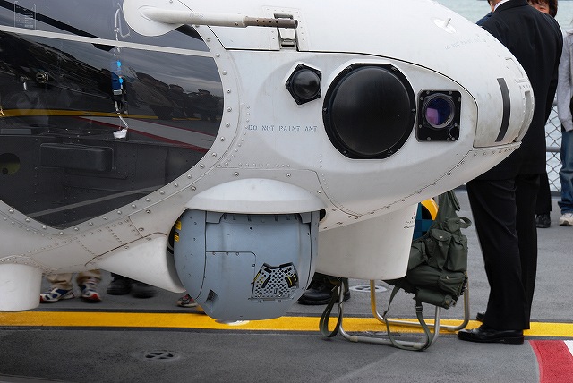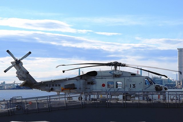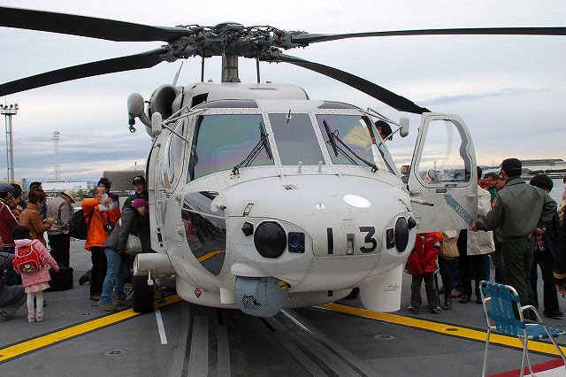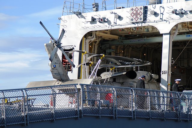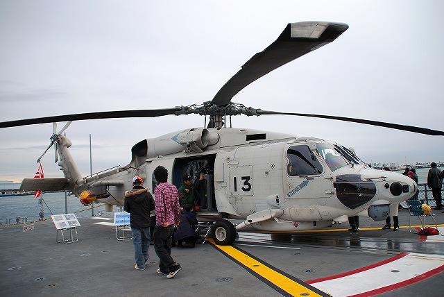 ・飛行甲板の哨戒ヘリ等を撮影 展示されていたのはSH-60シリーズに日本独自の改良を加えたSH-60Kの13号機。 (中)メインロータ先端は、気流の渦の発生を防ぐ独特の形状をしている。 キャビン及びコクピットも公開されていたが、撮影はダメっぽかったので写真はナシ(^。^;)。 ここからは各部の (左)機首のセンサー類。 グレーの球状のものはFLIR(赤外線探知暗視装置)で、ヘルファイヤミサイルの誘導にも使えるそう。 (中)後部右側に装備されたMAD(磁気探査装置) (右)後部側のチャフ/フレアディスペンサ(箱状の物)とフライトレコーダ(円筒状の物)。 これらは陸自や空自のUH-60の一部にも装備されている。 (左)ベアトラップ。 ヘリの着艦拘束の他、移動にも使用する。 なお、SH-60Kは艦へ自動的にアプローチできる着艦誘導支援装置(SLAS)を搭載している。 (右)ベアトラップなどの操作をするところ もともとガラス張りなのだが、今回の公開ではガラス戸が開けられていたので、コンソールなどをクリアに撮影する事ができた。 オマケ (左)午後の一般公開時は、愛知県警の「にっこう」が周辺を警戒していた。 愛知県なのになんで「にっこう」?と思われる方もいるでしょうが、「日光川」と言う川が愛知県にあるんですわ。 (右)名古屋港にて保存展示中の砕氷艦「ふじ」。再塗装されるらしくこの日はネット等の設置が行われていた。 なお、解体が決定的な初代「しらせ」に関して、気象情報会社ウェザーニューズが「気象や環境問題の情報発信や議論の場として活用したい」と買取りを提案しているそう。 ・出港して行くところを撮影 寝坊して入港を撮りそびれたので、替わり出港している所を撮ろうと、2/2の朝に高潮防波堤(名古屋港海釣り公園)まで行って来ました。 (左)待つこと暫し、伊勢湾岸自動車道の名港中央大橋を潜り「おおなみ」が姿を現した。 (右)高潮防波堤付近まで「露払い」を勤めていた愛知県警の「にっこう」。 (左)東航路を進む「おおなみ」 以前の「練習艦隊まさかの西航路通過事案」も有るので、この位置に来るまでは内心ドキドキもの…(^_^;) (右)真横に来たところで一枚。 (左)艦首付近 (右)艦橋付近 (左)艦中央部付近 (右)格納庫付近。格納庫の屋上にはもう1基のCIWSが載っている。 (左)ここまでエスコートして来た「にっこう」(艦の向こう側に居る)に対し「帽振レ」中。 (右)遠ざかって行く「おおなみ」 最後になりましたが、当日現地にてお世話になった皆様有難う御座いました。 本投稿及び添付した写真は私ちゃりんこジョニーの著作物であり、他のサイト・掲示板及びブログ等への無断転載を禁じる。 特に、かつては「中華人民共和国萬歳」現在は「異常な愛情」と言う名のパクりブログを運営している、支那人窃盗常習犯sunbinsiftに対しては強く抗議する。