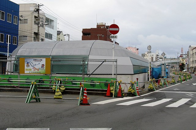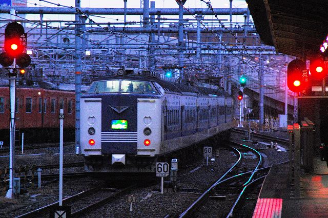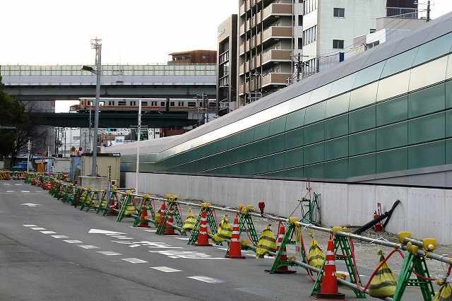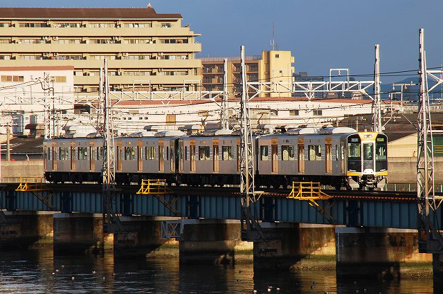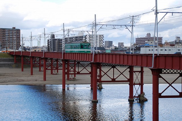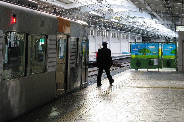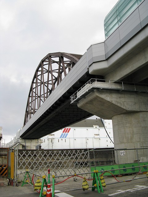 2日目の朝は、コネタ集的な撮影をして来ました。 ・早朝の大阪駅に到着する夜行列車を撮影 折角「お泊り」したのだから、そうしないと撮れない物を…と言う事で、まずは表題とは裏腹に「大都会の大ターミナル駅」であるJR大阪駅へ向かい、早朝に到着する夜行列車を撮影する。 いまや貴重な夜行列車にして客車列車で、年末年始やお盆時期などに運転される臨時列車。 …なのだけども、この列車の存在をすっかり失念していて、到着後にホームを移動して撮影したぞんざいな写真のみなのはご勘弁(^。^;) こちらか本命の急行「きたぐに」 寝台/座席両方に使える特急電車として本州及び九州の電化区間において昼夜を分かたず活躍していた581/583系の最後の定期運用列車がこの急行「きたぐに」。 つか、今や夜行列車や急行列車自体が数少ないんだよなー (中・右)大阪駅到着後、車両基地へと引き上げて行く。 ・阪神西大阪線 写真は西九条駅に停車中の阪神1000系。 現在は4両編成の電車がのんびりと(?)行き来する西大阪線だが、3/20の近鉄との直通運転開始後には6~10両編成の列車が行き来するようになり(※)、「都会のローカル線」から幹線ルートへと脱却する。 また、路線名も難波までの延伸区間と合わせて阪神なんば線と改称される。 ※種別は当面普通から快速急行まで。 伝法駅で下車し、淀川を渡る電車を撮影。 (左)伝法駅のホームより撮影。 (中・右)並行してかかる道路橋(伝法大橋)より撮影。 このときは1000系の増結用2両編成×2本を繋げた4両編成のみが運用されていた。 朝早い時間帯だったので、光線状態はイマイチだったカモ? 西九条駅へ戻る。 (左)ここまで運転してきた運転士さんが降りる。 (中)柵の向こうではホームの延長及び路線延伸工事が行われていた。 阪神なんば線内では最大10両編成が運転されるが、阪神本線内は最大6両編成までしか入線できないので、尼崎駅にて増解結を行う。 (右)駅の外へ出てみる。 左右方向の低い位置に有る高架はJR大阪環状線。 右手手前方向が難波までの延伸区間で、新たな駅舎及び改札口の建設工事が行われていた。 そのまま阪神なんば線の高架に沿って歩いてみると、間もなく安治川河底トンネルに突き当たる。 (左)トンネル内の状況。警備員さんが巡回している。 (中)安治川を渡った側の建物。トンネルまではエレベータ及び階段を使って行き来する。 この位置にはかつて渡し舟があったが、桜島地区への工員及び物資輸送の必要性から、河底トンネルの建設が計画され(※)、昭和10年に着工され、圧気潜函工法にて昭和19年に完成している。戦時下に有っても建設されたという辺りにこのルートの重要性が見て取れる。 かつては自動車用のトンネル及びエレベータも有ったが、自動車の増大及び大型化とともに、付近に道路用の橋が架けられた事もあり現在は歩行者用のトンネル及びエレベータのみが使用されている。建物右側には自動車用エレベータの跡。 ※安治川を行き来する船舶の航行を妨げないため、架橋する場合は有る程度背の高い物を作らなければならなかったが、当時の技術では不可能だったそう。 (右)安治川河底トンネルの横を阪神なんば線が通過している。 (左)大阪環状線及び航行する船舶をクリアするため高々架にて安治川を渡った阪神なんば線は、この先で別の川の川底をくぐる必要もあることから急勾配にて地下へと潜ってゆく。 「都会のローカル線」は、いわば「都会の山岳路線」へと変貌するわけである。 (中)画面奥の高架を行くのは、地下鉄中央線へ乗り入れてきた近鉄7000系。 つまりこの場所は他社線へと乗り入れた来た近鉄車同士が顔を合わせる場所なのだけれども、阪神なんば線建設に当たって長年にわたり反対運動が行われている同地に対する配慮からか、阪神なんば線のほうは高い防音壁に囲まれている。 写真は乗り入れてきた近鉄7000系。 近鉄東大阪線~地下鉄中央線のルートは、生駒山を越える山岳トンネル、大阪都心部の地下鉄、南港へと至る海底トンネル…等を通過するユニークな路線でもある。 ・南海汐見橋線 「大都会のローカル線」その2は、阪神西大阪線とは逆に幹線ルートから外れてしまった経緯を持つ南海汐見橋線。 高野山へと至る南海高野線の正式な起点は汐見橋駅だが、1929(昭4)年に高野山方面への全列車が難波駅を発着するようになって以降、幹線ルートから外れた汐見橋-岸ノ里間は盲腸線と化し、「汐見橋線」との通称で呼ばれている。 (左)地下鉄千日前線桜川駅から少し歩いて南海汐見橋駅へ。 隣では阪神桜川駅の建設工事が行われていた。 (中)自動改札こそ設置されているものの、駅舎の内部はレトロな感じ。 (右)極めつけは改札口上部に掲げられた昭和30年代当時の「南海沿線観光案内図」。 残念ながら一部が破損してしまってますが、いい味出してます。 現在汐見橋線で使用されているのは、南海本線系の各支線でも使用されている2200系(含2230系)。 汐見橋線はほぼ全線が複線だが、30分間隔