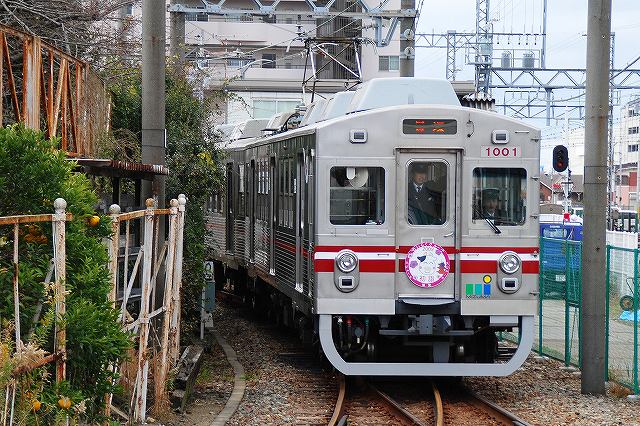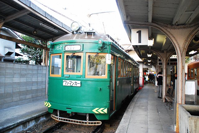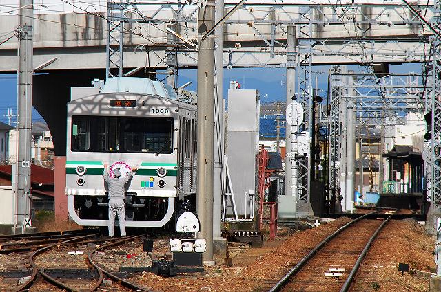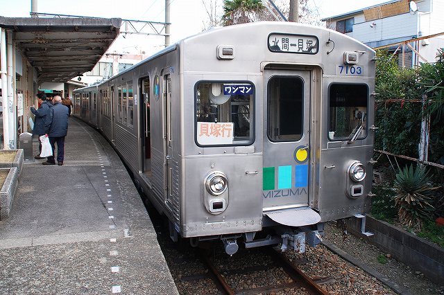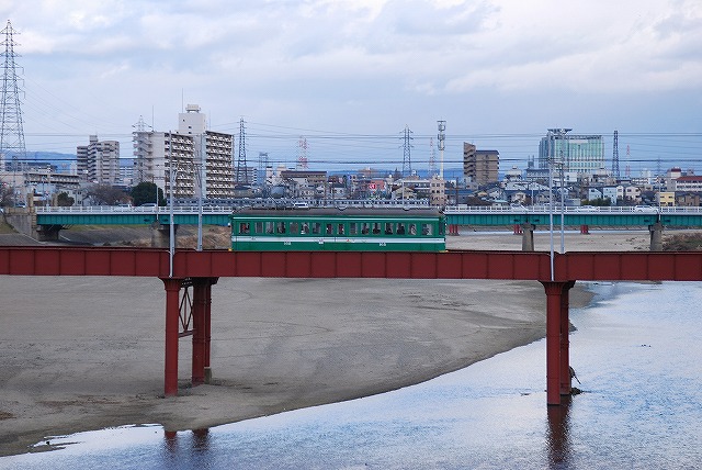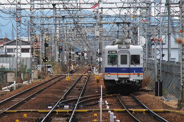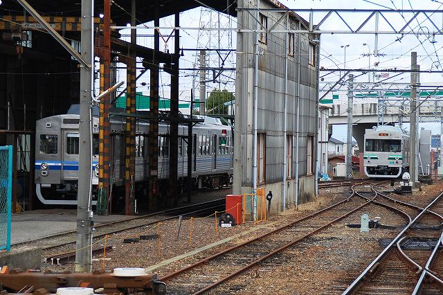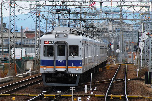 …んがその前に(^。^;)、1963(昭38年)の登場以来長年南海本線の主力として活躍してきたものの、新車の投入により淘汰が始まっている7000系及び7100系狙いで、移動しつつ撮影。 7000系の改良型である7100系。 (左)岸里玉出駅の汐見橋線ホームより (右)堺駅にて 岸和田駅まで移動。 (左)「ラピート」同士のすれ違い (右)1000系のラッピング広告車 そんなこんなで、水間鉄道(以下「水鉄」)との乗換駅である貝塚へ到着。 (左)水鉄の乗り場には更新改造(後述)を実施される事なく運用を外れた7000系(元東急7000系)が留置されており、待合室代わりに利用されていた。 (中)急カーブを曲がって貝塚駅に進入する水鉄1000形。 水鉄では、2006年度より保有していた7000系の更新改造を実施しており、現役の4編成8両全てが改造済みで1000形を名乗っている。 車体構造そのものにはてが加えられていないものの、スカートが取り付けられたのと前面窓がやや小型化した事により若干印象が変わった。 (右)お正月のヘッドマークが取り付けられていた。 丑年だけに(?)乳製品メーカーがスポンサーのよう、水間寺の三重塔もあしらわれている。 1926(大15)年の開業以来使用されている寺院風の駅舎は、1998年に国の登録有形文化財に登録されている。 水間寺(水間観音)への参拝鉄道として開業した水鉄だが、不動産事業の不振等のため2005年3月に大阪地裁へ会社更生法の適用を申請し事実上破産。 その後、外食チェーンのグルメ杵屋の支援のもと2006年6月に会社更生計画が終結している。 前日は元旦に京都へ行っていたにもかかわらず、沿線の有名社寺は悉くスルーしていた(^_^;)こともあり、水間駅から徒歩10分程の所にある水間寺へと初詣に行ってみる事に。 水鉄は関西在住時代に何度か訪れた事があるものの、水間寺に行くのは今回が初めて(^。^) (ついでに言えば、新生後の水鉄を訪れるのも今回が初めて) …とは言え、初詣客に押し流されるままに見学したので、実際の所は何が何だか(^。^;) 機会が有れば、普通の時期に再訪するですね。 写真は水間駅構内に保存されている501形553号。 1990年の7000系(現1000形)投入以前に水鉄で使用されていた電車で、南海1201形。 ワタシが水鉄を「関西在住時代に何度か訪れた」のはこの電車がお目当て。(^。^) 現在は詰め所として利用されているよう。 水間駅に隣接している水間車庫の様子をホームより撮影。 (左)青帯を巻いた1003-1004の編成(左側)と緑帯を巻いた1005-1006の編成(右側)が休んでいた。 (中)1006にヘッドマークを取り付け中。 この車両は東急からの移籍に際し、中間車に運転台を取り付けて先頭車化改造したタイプ。 画面右奥には隣の三ヶ山口駅が見えいてる。 (右)赤帯を巻いた1001-1002の編成がやってきた。 以上が水鉄の現役車両(2両編成×4本)すべて。 再び7000/7100系を狙いつつ、南海電車にて次の目的地へ移動。 (左)10000系と組んで特急「サザン」に使用されていた7100系。 (右)ようやく7000系が撮れた。7000系はいまや数少ない片開き扉車。 以上2点は貝塚駅にて。 羽衣駅へ移動。 (左)7100系同士の並び (中)特急「サザン」@7100系が通過する。 (右)羽衣から高師浜線が分岐している。 使用されている車両は、汐見橋線などの支線と同様、元通勤ズームカーの2200/2230系で、写真の車両は2200系。 築100年を越え国の登録有形文化財に登録されている駅舎は、高架化工事の後も新駅正面に移築されエントランス等として活用されるよう。