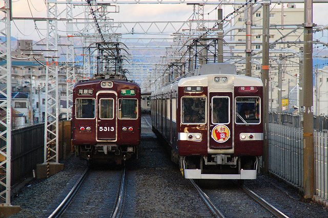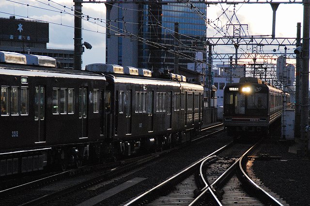 ・入港を撮影…のつもりが(^。^;) 1/22撮影 名古屋港の入出港情報に寄れば1400入港(接岸)とのことなので、入港作業を撮るにはその約30分前に到着すればよいかなー?と、所用のついでに寄ってみると、既に入港した後でした。(^。^;) (左・中)一般公開に備えてか、消火ホースを用いて船体の清掃作業中だった。 寒い中ご苦労様です。 (右)名古屋港水族館側の埠頭より撮影。 ・一般公開を撮影 1/24撮影 (左)埠頭より「こじま」の武装を撮影。 「こじま」には20mm多砲身機関砲と35mm単装機関砲が装備されている。 (中)乗船して見学開始。写真は船橋前部に取り付けられていた銘板。 「こじま」は日立造船舞鶴工場で建造された。 (右)35mm砲塔基部に置かれてあった予備の錨。 (左)35mm砲付近より、入港時にはカバーがかけられていた20mmバルカン砲を撮影。 (右)船橋の前面ガラス (左)船橋のウイング部分より20mmバルカン砲と35mm機関砲を撮影 20mmバルカン砲(左)と35mm機関砲(右)。どちらも手動で照準するタイプ。 (左)船橋内部を見学。 軍艦というよりは民間船舶のそれに近い雰囲気の船橋は、練習船だからか比較的ゆったりと作られているように感じたが、いかんせん人大杉(^。^;) (中)舵輪 (右)速力等はここでコントロールできるよう。 (左)船橋後部には比較的大きな海図台があった。 (中)海図台の上には時鐘「展示」してあった。 (右)時鐘。 「こじま」の竣工は1993(平5)年だそうなので、刻まれている1992年は進水の年かな? …つづく。 本投稿及び添付した写真は私ちゃりんこジョニーの著作物であり、他のサイト・掲示板及びブログ等への無断転載を禁じる。 特に、かつては「中華人民共和国萬歳」現在は「異常な愛情」と言う名のパクりブログを運営している、支那人窃盗常習犯sunbinsiftに対しては強く抗議する。 暗くなっていっそう映える伝統のマルーン塗装をお楽しみください。 夕闇迫る高槻市駅に到着する9300系の特急。 地下鉄堺筋線へ乗り入れる運用に使用されていた8300系初期型。 この編成はエコロジーをテーマに先頭部分がラッピングされていた・ (左)高槻市で折り返す運用に入っていた5300系。 (右)特急と準急が接続。 淡路駅へ移動。この駅では京都線と千里線がクロスしている。 (左)7300系の更新車。随分と雰囲気が変わった。 (中)8300系の初期型は額縁のついた顔が特徴。 (右)6300系の特急と、大阪市営地下鉄の66系が並ぶ。 地下鉄堺筋線との相互乗り入れは高槻市及び北千里間で実施されている。 十三(じゅうそう)駅へ移動。この駅では京都線と並び半球の路線網の骨格を成す宝塚線及び神戸線が合流している。 …と言う事で、オナカ一杯撮影した京都線は一先ず置いといて(^。^)、宝塚線と神戸線の電車を見ることが出来るホームにて撮影。 (左)5000系の更新車@神戸線普通 (中)8000系初期型@宝塚線普通 (右)5000系更新車@神戸線普通。 同じ5000系更新車ながら、左写真の車両と右写真の車両では前面の車番記入位置が異なる。 (左)宝塚行きの急行。6000系の更新車かな? (中)8000系後期型@神戸線特急。 (右)宝塚線の急行(手前)と京都線の特急(奥)が同時発車で終点梅田を目指す。 梅田-十三間は神戸/宝塚/京都の3複線区間。 (左)9000系@宝塚線急行 (右)6000系@宝塚線普通 梅田駅へ到着。 (左)阪急梅田駅は、神戸/宝塚/京都各線が3線ずつ計9線分の頭端式ホームをもつ堂々のターミナル駅。 (右)パンタを降ろしてすっかり寝る体制の7000系。 これにてワタシも宿へ向かう事にする。(^。^) その「いぶき」とちゃう! 一発ネタでスマン(^。^;)シカモワカリニクイシ! ●コネタ ・ホンダ 8耐からも撤退? 昨年末のホンダF-1撤退発表に続き、カワサキがモトGPより、スバルとスズキがWRCよりの撤退をそれぞれ発表している。 ●イベント情報 ・1/25 ミニ四駆GP2009ニューイヤーミーティング 時間:9:30~16:00 展示内容:軽装甲機動車 偵察用オートバイ 等 ・2/11 護衛艦しらね公開@清水港 時間:09:00~16:00 ※11:00~13:00の間は上甲板のみの公開 ●アルバムを2点UPしました ・2009 愛知県警察視閲式 ・2009 名古屋市消防出初式 写真は四条大橋から撮影した鴨川の風景…と言うか、今回電車関係以外の京都の写真はこのワンカットのみ…(^_^;) …と言う事で桂駅へ移動。 (左)5300系の準急。 後期に方向幕化改造された車両のようで、大型の方向幕を装備している。 (右)3300系の特急。一部列車にはお正月のヘッドマークが付いていた。 京阪特急と同様JRの新快速の攻勢に押され、かつては大阪-京都間をノンストップで結んでいた特急が、現在は「客を拾う」ため中間駅に停まるようになっている。そのため従来特急用に使用されていた2扉転換クロスシート車の運用が、乗降に時間がかかる等の理由で減らされているそう。 京都線特急用に増備された2扉転換クロスシート車だが、前述のように特急の運行形態が変化してしまった為、一部車両は4両編成に短縮の上嵐山線の折り返し運用に転用されるとのこと。 また、この6330以下の編成は6300系のうち一番最後に増備された編成で、6300系で唯一