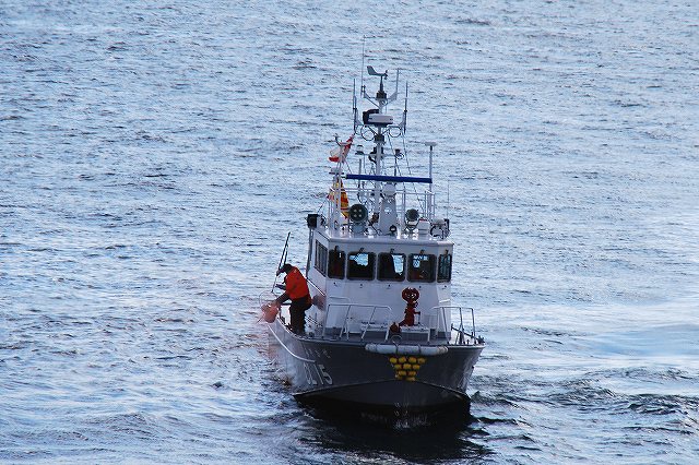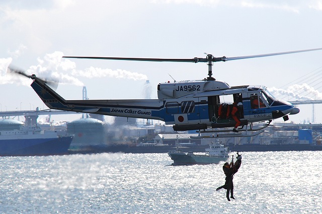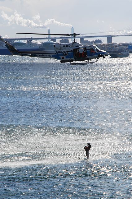 公開訓練は「こじま」船上より撮影しました。 (左)公開訓練の支援のため登場した海保巡視艇CL15「みやかぜ」が「こじま」のすぐ横を通過してゆく。 (中)放水展示のため海保消防艇FM04「しらいと」も登場。「みやかぜ」ともども名古屋海上保安部に所属している。 「みやかぜ」との間を通過しているのは水先人用のボート。 (右)「みやかぜ」の向こう側を通過しているのは名古屋港の遊覧船「MILOS」。 セラヴィが運行して居た名古屋港遊覧船及びブルーボネット行きの航路は、神戸リゾートラインが引き継いで運行している。(ただしブルーボネット行きは同園が冬期休業中の為運休中) (左)「しらいと」の放水より公開訓練開始。 (右)続いて、「みおかぜ」より遭難者役の隊員さんが海へ飛び込む。 (左)セントレアに所在する中部空港海上保安航空基地より飛来したベル212「かみたか1号」。 海面へ向けてマーカー(発炎筒)を投下している。 (右)一旦離脱 (左)ダイバーをホイスト降下させながら接近。 (中・右)吊り上げ中 公開訓練終了後にハイスピードで「こじま」のそばをローパス。 こじまの横を通過してゆく「みやかぜ」。 (右)乗員の皆さんが手を振っていた。 (左)こんどはゆっくりとローパスしてゆく「かみたか1号」。 サイドドアを開け放ちクルーの皆さんが手を振っている。 (右)最後に「しらいと」が「こじま」の横を通過。 こちらも乗員の皆さんが手を振っている。 (左)訓練に使用したマーカーを回収する「みやかぜ」 (右)マーカーより赤い煙が出てます (左)「こじま」の飛行甲板。 着船は可能だが、「こじま」は格納庫を持たないので航空機の運用能力は無い。 ちなみに飛行甲板の前方には教室が有った。 マストより前後方向へイルミネーション用の電灯がついたロープが渡されていた。 (右)飛行甲板で記念撮影に応じていた「うーみん」と「うみまる」。 最後になりましたが、当日現地にてお世話になった皆さん有り難うございました。 本投稿及び添付した写真は私ちゃりんこジョニーの著作物であり、他のサイト・掲示板及びブログ等への無断転載を禁じる。 特に、かつては「中華人民共和国萬歳」現在は「異常な愛情」と言う名のパクりブログを運営している、支那人窃盗常習犯sunbinsiftに対しては強く抗議する。