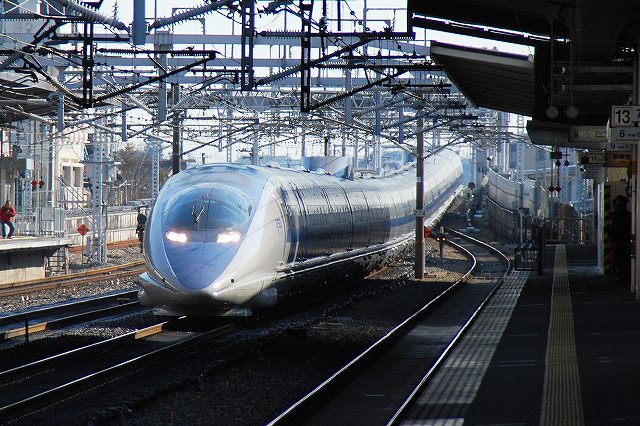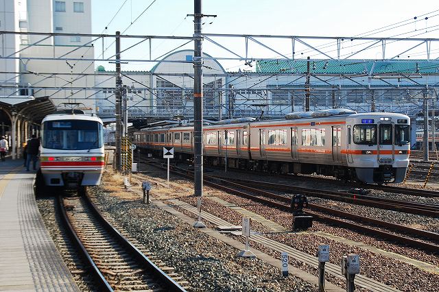 +500円で新幹線自由席も利用できる豊橋往復切符を利用して豊橋駅へ。 (左)通過してゆくN700系 (中・右)500系一発目。下り博多行きのぞみ9号。(デジカメの記録によると0853頃) 一旦改札外に出て豊橋の路面電車を撮影し(その辺はまた後日 (^。^))、頃合を見て入場券にて再び新幹線ホームへ。 (左)通過してゆく700系 (右)300系の「こだま」が停車する 500系二発目。上り東京行きのぞみ6号。(同1101頃) この日は山陽新幹線区間の残雪により、この列車は10分程度遅れて豊橋を通過していた模様。 一旦改札外に出て豊橋鉄道渥美線を撮影し(その辺はまた後日 (^。^;))、頃合を見て入場券にて三度新幹線ホームへ。 (左) 豊橋駅新幹線ホームの出発案内は、液晶やLED式に置き換えられ近年数が減りつつあるソラリー(通称パタパタ/トラベルチャンス…等)だった。 表示が「こだま」と「ひかり」のなので余計に昭和な感じ(^_^;) (中・右)500系三発目。下り博多行きのぞみ29号。(同1353頃) ホーム上屋の影が落ちてイマイチな感じカモ?(^_^;) 在来線ホームへ移動する。 (左)豊橋駅隣接の車庫へ引き上げてゆく119系電車。 119系は国鉄時代に飯田線用として製造された電車だが、今後313系により置き換えられる予定だそう。 (右)豊橋駅へ入線する313系電車。 飯田線の一部列車は既に313系化されていた。 (左)停車中のパノラマスーパーの横を313系快速が出発してゆく。 JRと名鉄は豊橋-名古屋-岐阜間で競合関係にあり、今回利用した割安の往復切符もそうした中で生まれた施策の一つ。 (右)名鉄3700系とJR119系の擦れ違い。下地信号所-豊橋間ではJR飯田線と名鉄が線路を共用している。 (左)313系と119系の並び。 (中)飯田線の特急「伊奈路」が到着。使用車種は373系。 (右)米原行き快速の313系と並ぶ。 117系電車。国鉄末期に東海道本線の快速用として投入されたが、収容力や乗降時間に難が有る2扉転換クロスシート車なので、現在では同線のラッシュ時の助っ人的運用が主。 JR東海に残る数少ない国鉄型電車だが、119系共々313系による置き換えが予定されている。 (中)4+4連の連結部分。 当初6連で投入され、後に編成を分割して4連化したため、編成のどちらかの先頭車両は後から増備された200番台車が付いている。 写真で手前に写っている先頭車両が後から増備された200番台車で、一段降下窓やボルスタレス台車を装備している。(奥の0番台車の窓2段式) PR